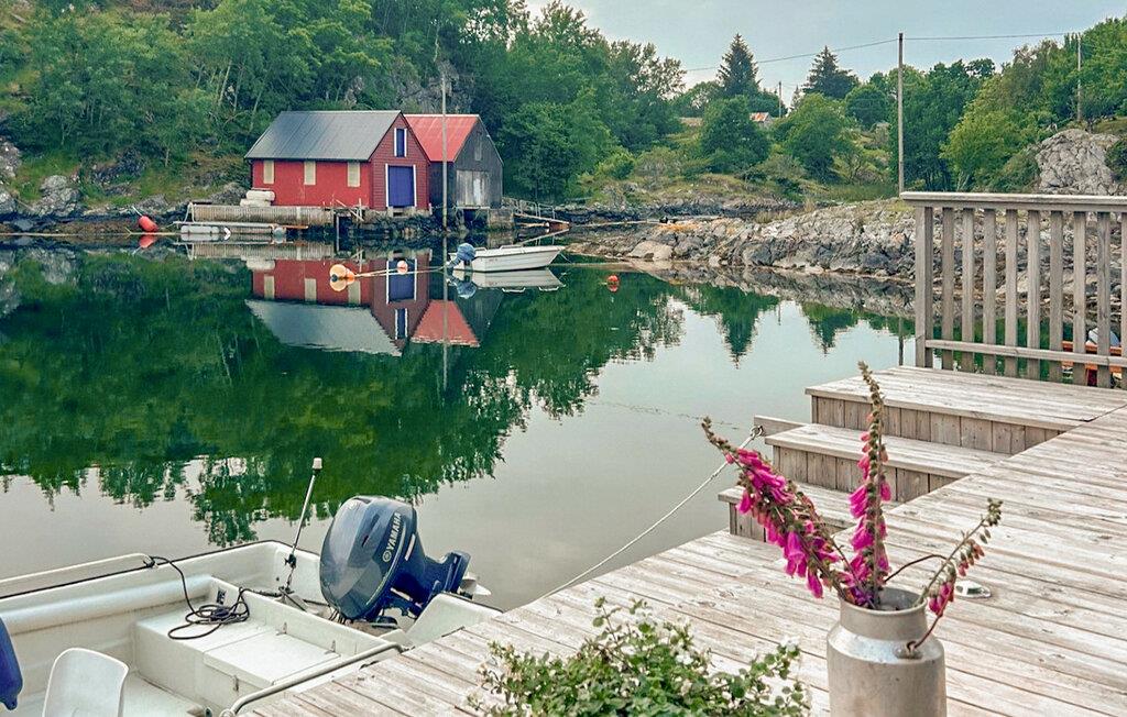 Dette hyggelige feriehus i Austevoll byder på en fantastisk beliggenhed med egen kaj og direkte adgang til havet. Den indbydende indretning skaber en varm atmosfære, mens de store vinduer giver udsigt til vandet. Brug den fælles flydedok til en lejet eller medbragt båd og nyd nærheden til førsteklasses fiskepladser. I kan tilbringe afslappende timer på terrassen og nyde den friske kystluft.