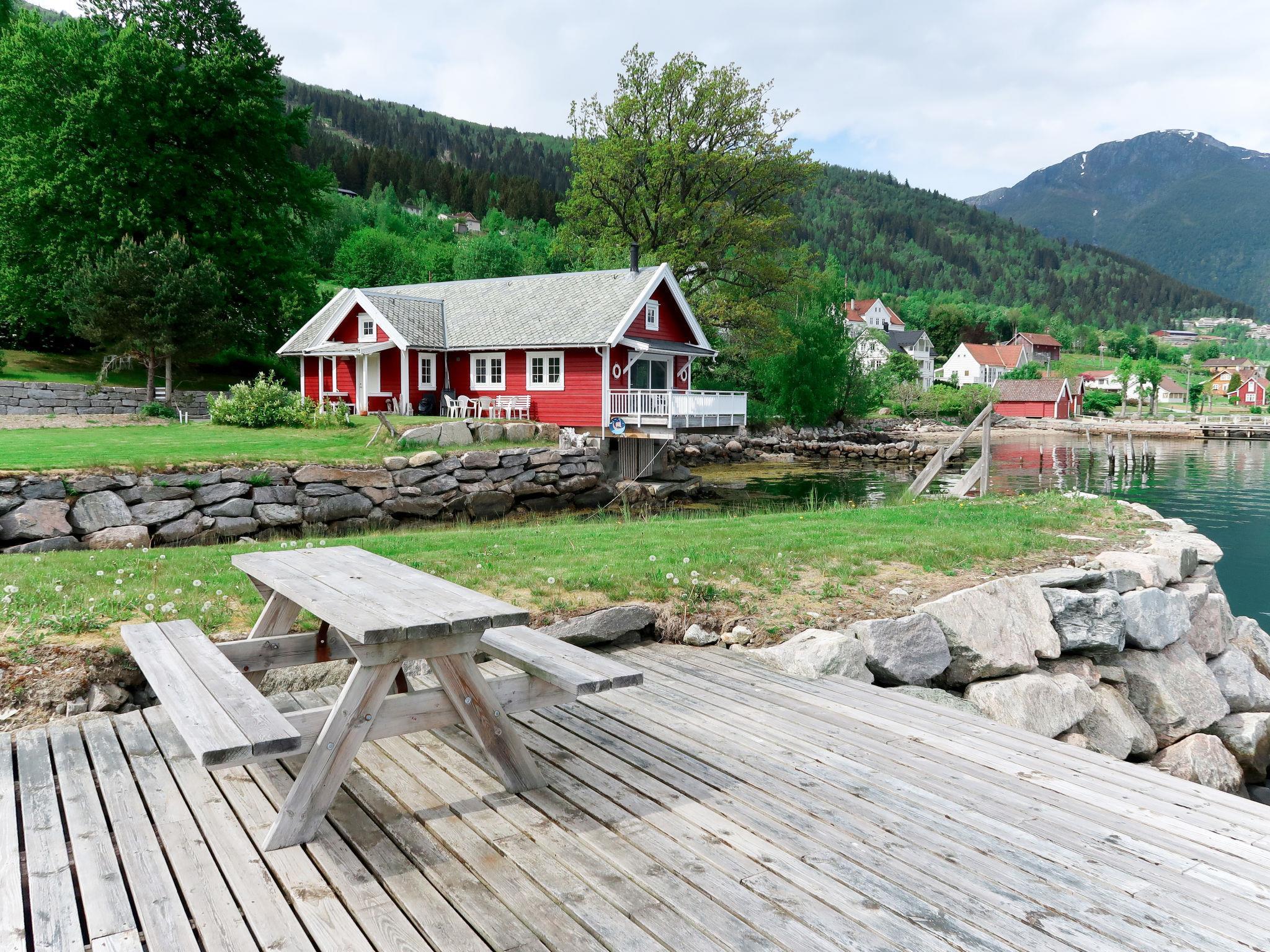 Timber house "Naustet". 2 km from the centre of Balestrand, 45 km from the centre of Høyanger, 48 km from the centre of Sogndal, residential area (villas), 1 m at the seaside, direct access to the beach. Bathing jetty bathing place, fish-processing table. Private: property with meadow. Motor boat (on order), parking on the premises. Supermarket 2 km, bus stop "Villavegen 89" 350 m, railway station "Flåm" 120 km, ferry "Bergen" 209 km, sandy beach "Balestrand" 2 km, grass beach 30 m, indoor swimming pool 45 km. Fishing possibilities 2 m.