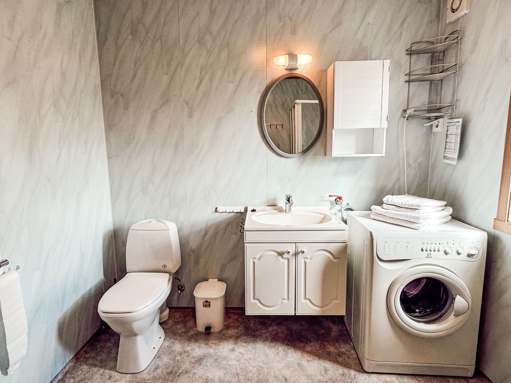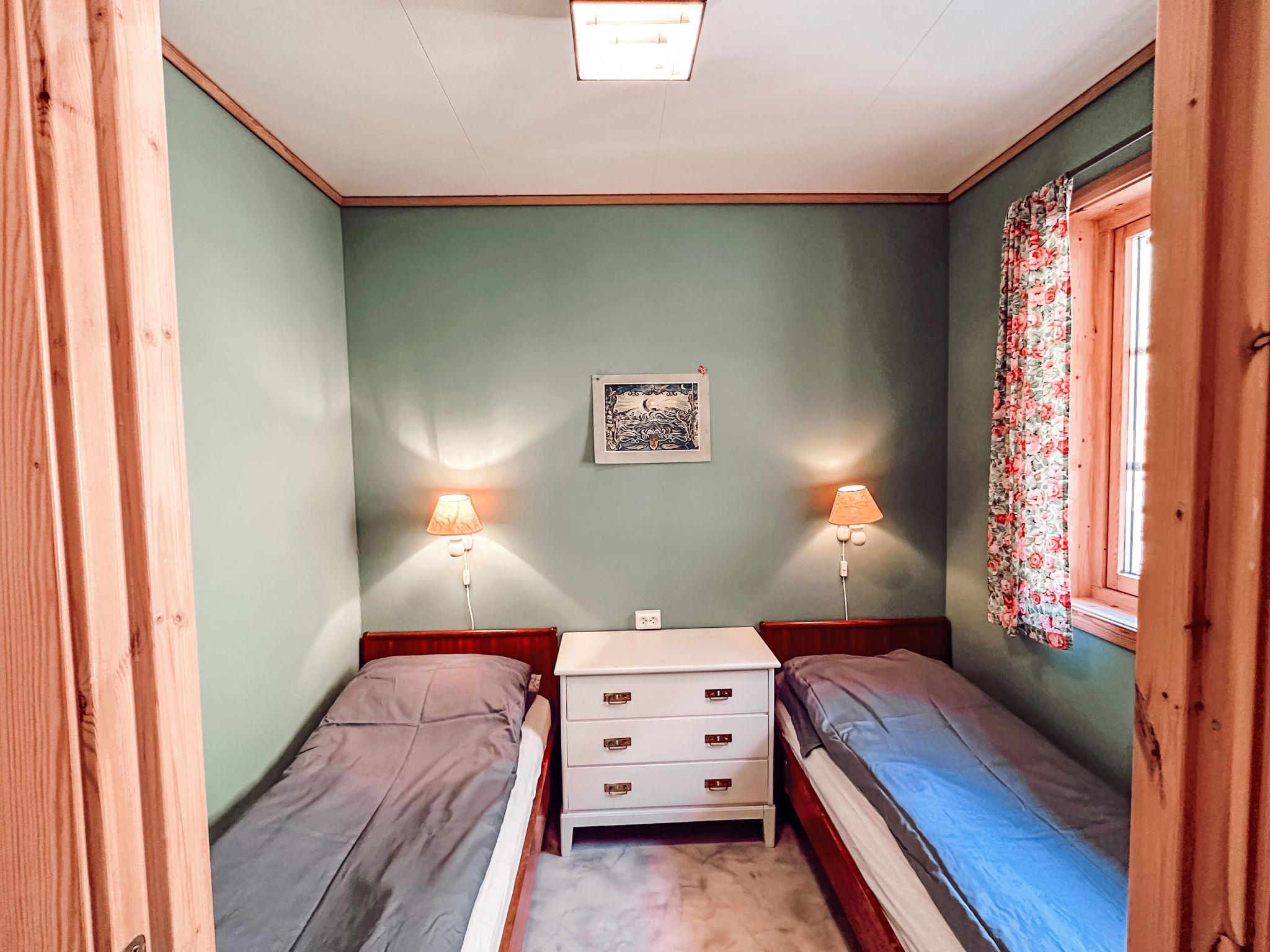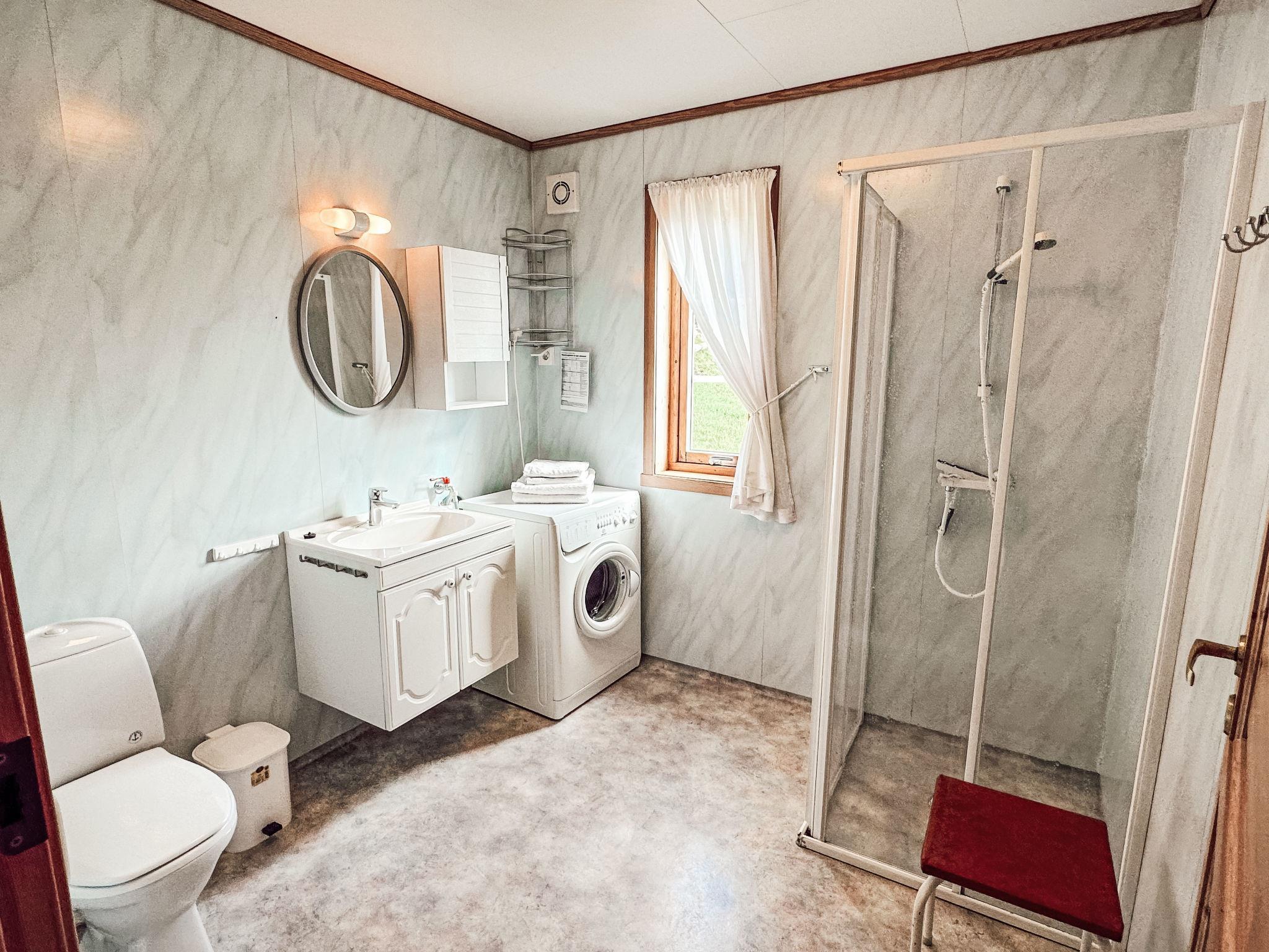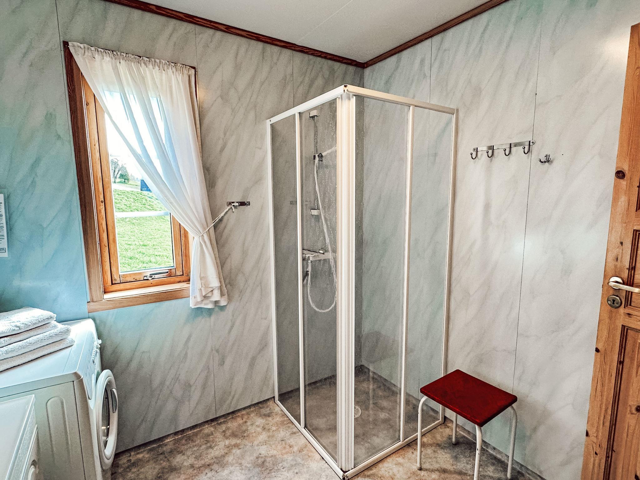 "Pærehagen", 3-room cottage 69 m2. Cosy and wooden furniture furnishings: living/dining room with Scandinavian wood stove, dining table and TV. Exit to the terrace. 1 room with 1 double bed (150 cm, length 200 cm). 1 room with 2 beds (75 cm, length 190 cm). Kitchen (4 hot plates, oven, toaster, kettle, microwave, freezer, electric coffee machine) with dining table. Shower/WC. Electric heating, underfloor heating. Terrace. Terrace furniture, barbecue (portable), box-room. Very beautiful view of the sea, the mountains, the countryside and fjord. Facilities: washing machine. Internet (WiFi, free). Please note: non-smoking house. Freezer approx. 300 l. TV via casting. 924531169