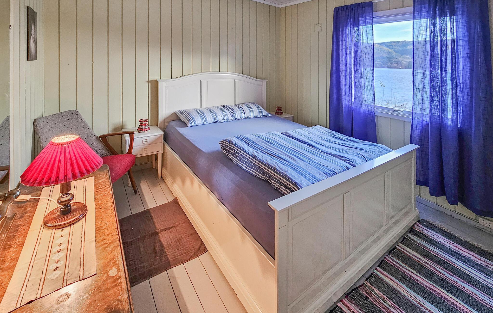 Dette hyggelige feriehus med en fantastisk beliggenhed ved Tyrifjordens bred lægger op til afslappende dage omgivet af natur. Nyd de varme solstråler på terrassen, mens I skuer ud over den funklende fjord. Indenfor finder I et charmerende interiør, der er noget særligt med hjemlig komfort og en hyggelig atmosfære. Efter en begivenhedsrig dag kan I slappe af i den komfortable stue eller lave mad sammen i det veludstyrede køkken. Stranden lige under huset gør feriehuset til et ideelt tilflugtssted for familier og vandsport elskere.