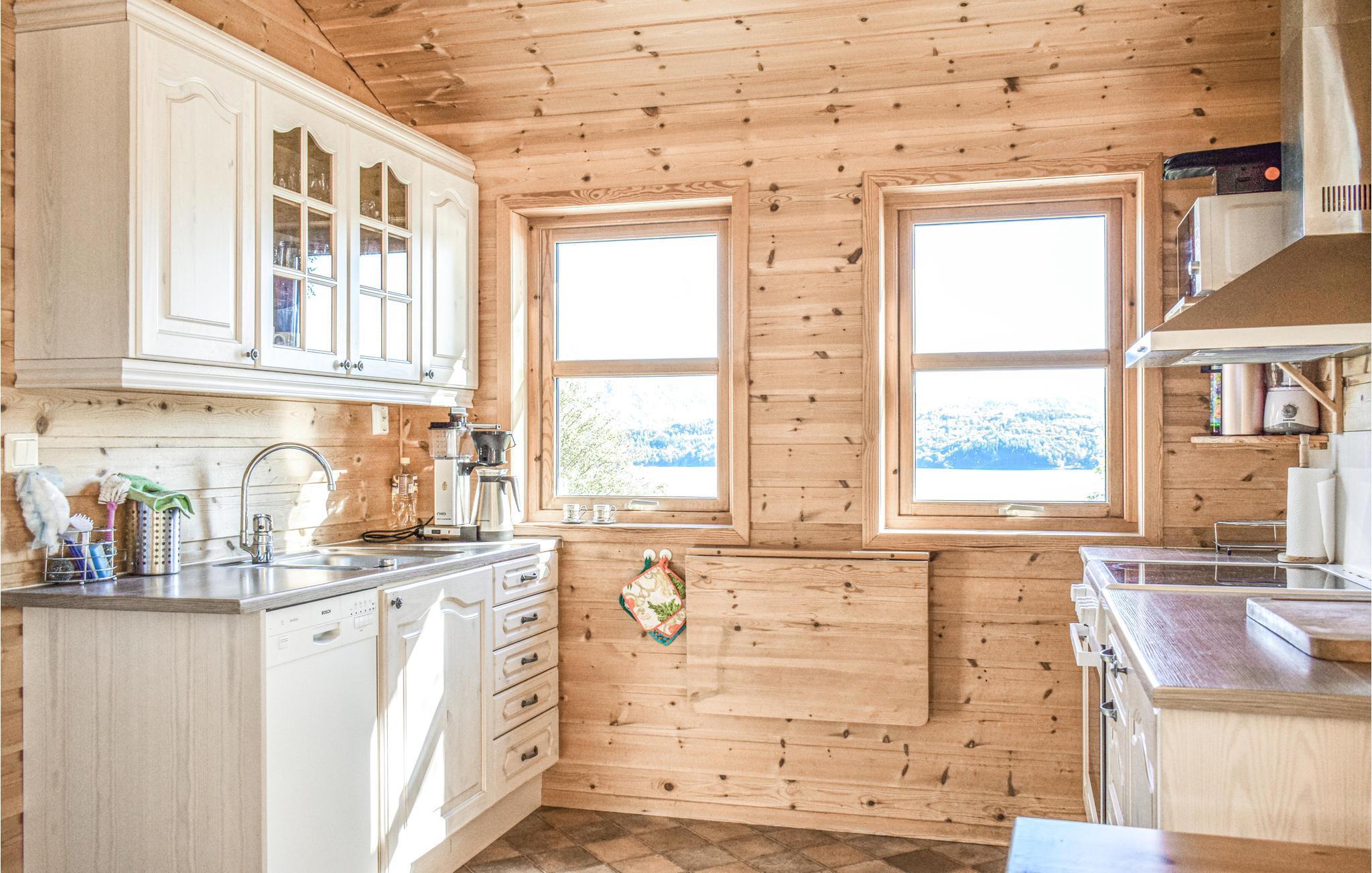 Dette skønne feriehus ligger sydøst for Bergen nær Björnafjorden. Det lyse, komfortable interiør er præget af de mange træelementer, der skaber en indbydende og varm atmosfære. Tilbring afslappende timer i den hyggelige stue og varm jer om aftenen foran brændeovnen efter en dag i den friske luft. Træterrassen indbyder til stemningsfulde aftener med spektakulære solnedgange. Der er også et grillhus ved vandet til milde sommeraftener.