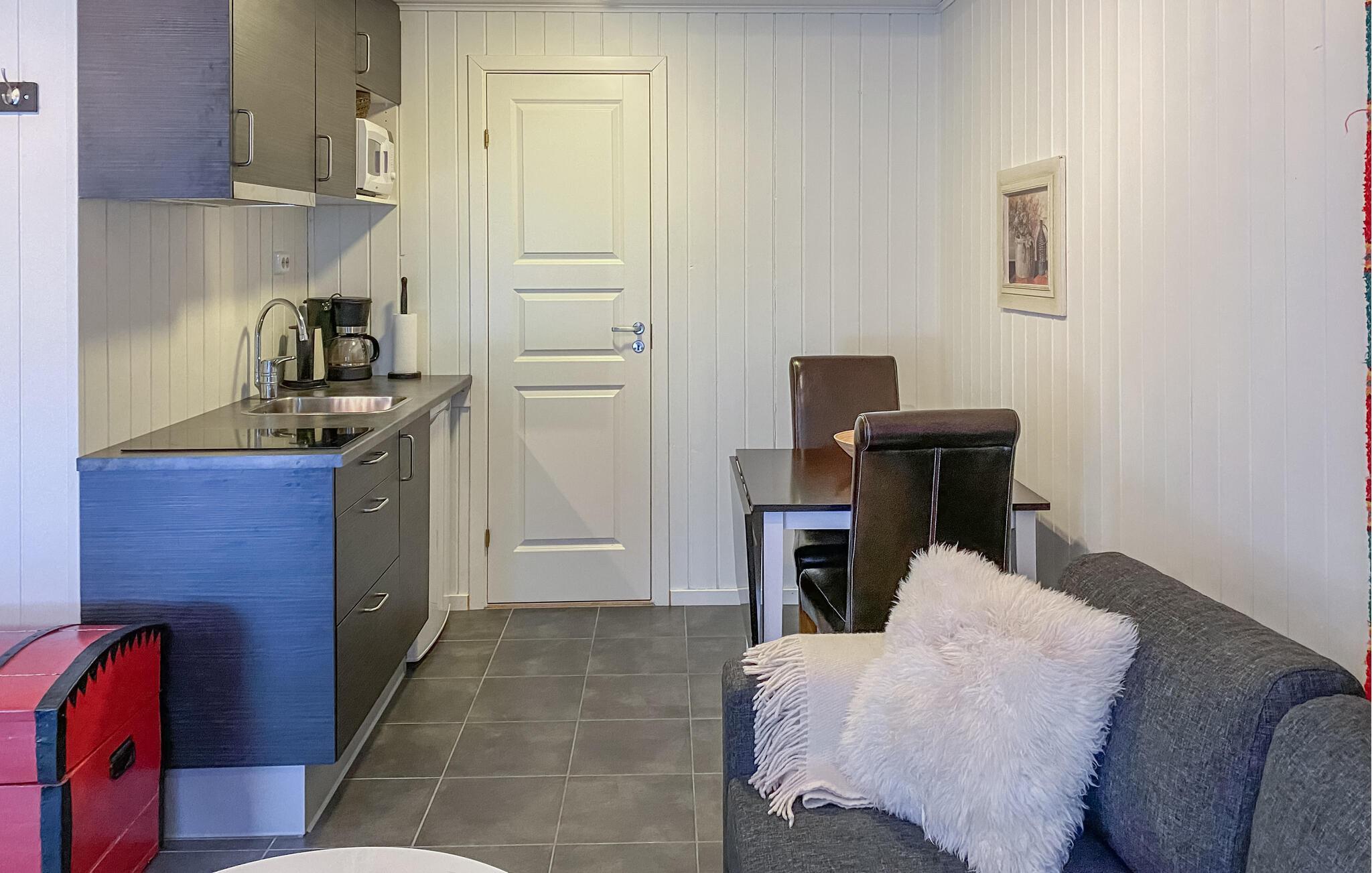 Lejligheden fremtræder stilrent og komfortabelt og ligger i den charmerende landsby Bjorli. Med sine varmeskalaer og gode indretning får I her det perfekte udgangspunkt for en ferie med det helt rette mix af oplevelser og afslapning. Tænd op i pejsen på de kølige dage og spil kort, brætspil eller læs en god bog, mens I lægger planer for de kommende dage.