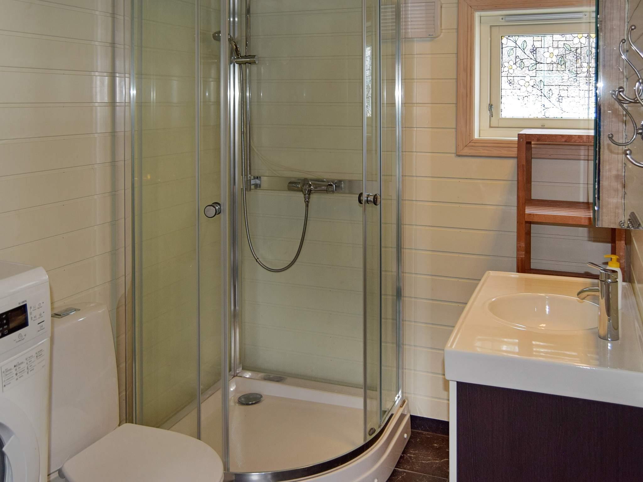 Når du entrer hytta, vil du finne stue med TV og salong inn til høyre. Kjøkkenet har alt nødvendig utstyr til selvhusholdning. Fra stuen går vi ut i gangen, hvor vi finner bad nr. 1 med dusj og badstue. Bad nr. 2 har dusj og vaskemaskin. Opp trappen til andre etg. er det en romslig tv-stue med utgang til liten terrasse. Hytta er bygd slik at 2 bad befinner seg mellom oppholdsrom og soverom.