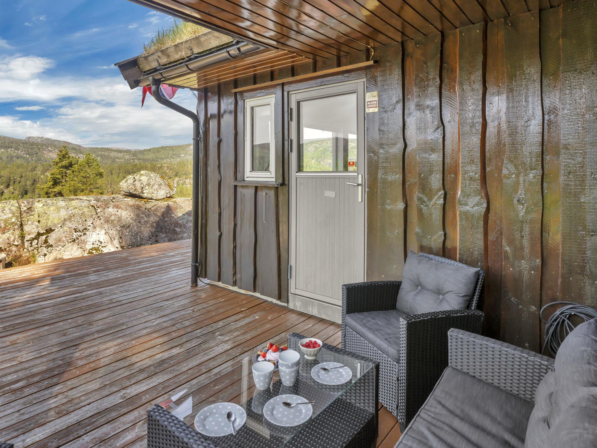 Holiday development "Utsikten", 576 m a.s.l.. 1.5 km from the centre of Bortelid, 46 km from the centre of Evje, 100 km from the centre of Kristiansand, 350 m from the lake. Private: natural state property 800 m2. Terrace (44 m2), garden furniture, barbecue, parking on the premises. Shop 1.5 km, supermarket 29 km, bus stop "Dåsnes" 42 km, railway station "Audnedal" 72 km, ferry "Kristiansand" 100 km.
