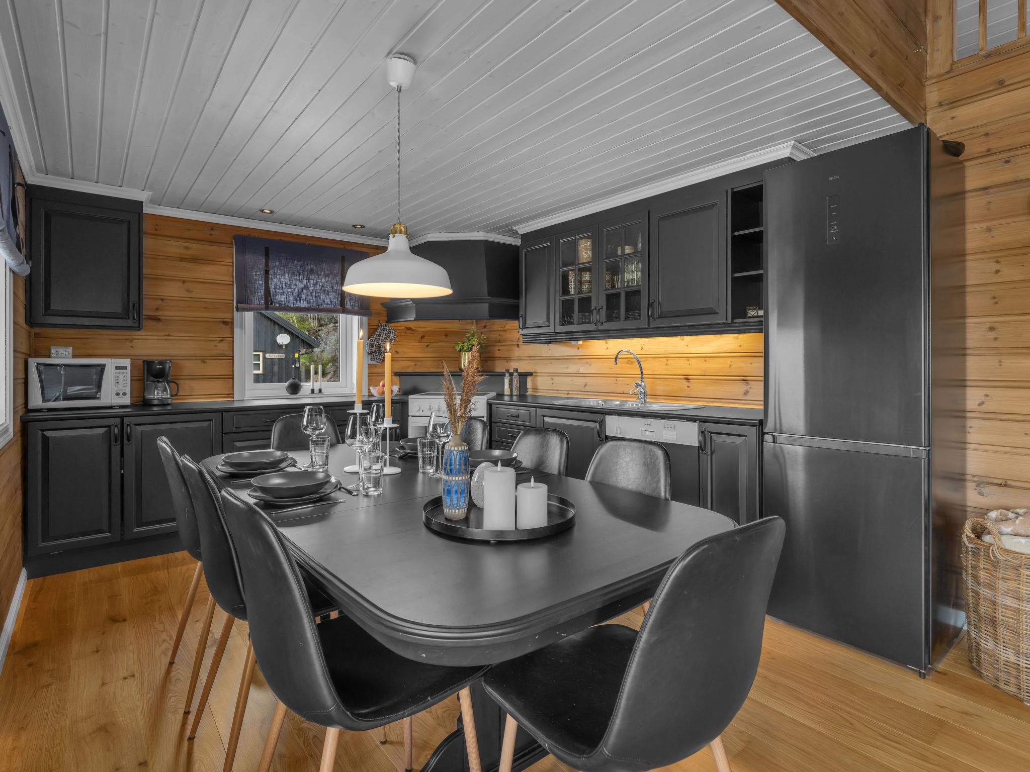 "Utsikten", 6-room house 130 m2 on 2 levels. Object suitable for 8 adults + 2 children. Renovated in 2017, cosy furnishings: living room with Scandinavian wood stove and TV. Exit to the terrace. 1 room with 1 double bed (180 cm, length 200 cm). 1 room with 3 sleeping facilities. 1 room with 1 x 2 bunk beds (90 cm, length 200 cm). Open kitchen (oven, dishwasher, 4 ceramic glass hob hotplates, toaster, kettle, microwave, freezer, electric coffee machine) with dining table. Shower/WC. Electric heating. Upper floor: living room with sloping ceilings, ceiling height 60 - 200 cm with TV. 1 room, ceiling height 60 - 200 cm with 2 double beds (150 cm, length 200 cm). Sep. WC. Electric heating. Wooden floors. Box-room. Panoramic view. Facilities: washing machine, dryer, children's high chair. Internet (WiFi, free). Please note: non-smoking house. TV via casting. Bed layout is flexible. There are more sleeping options available than the maximum number of people allowed which may, however, not be exceeded. 924531169