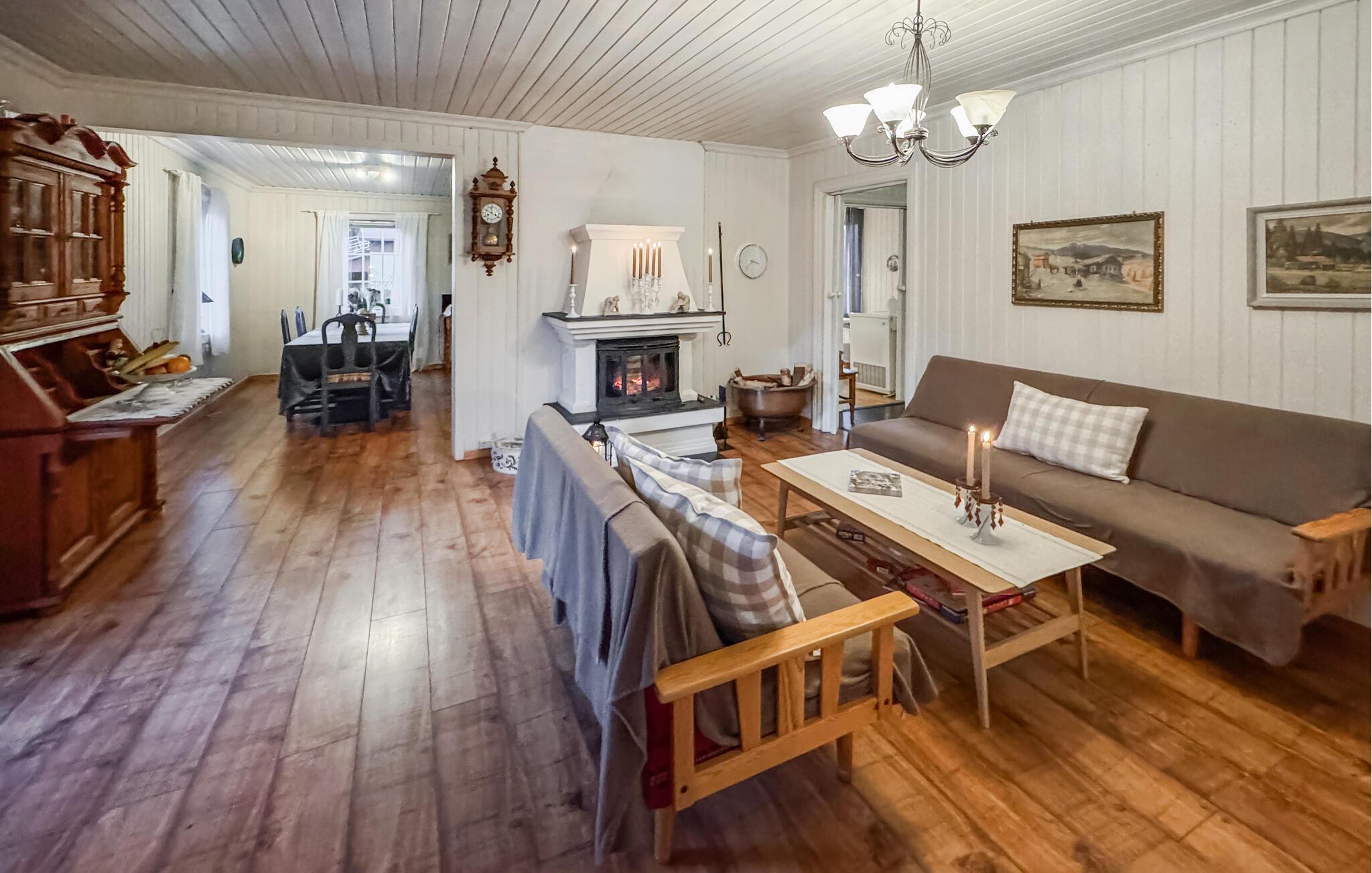 Nyd en dejlig ferie i dette feriehus midt i naturen. Huset byder jer velkommen med en varm og usædvanlig hyggelig atmosfære – charmen fra svundne tider blander sig problemfrit med smukt møblerede værelser og blødt stearinlys. Slap af i den komfortable stue ved pejsen, hyg jer sammen med en god bog, eller nyd blot freden og roen. Om aftenen er det store spisebord perfekt til at dele måltider og afslutte dagen i hyggeligt selskab. På varme dage kan I nyde en afslappet morgenmad udenfor i den rummelige have, mens I kigger ud over markerne. Børnene vil have masser af muligheder for at lege og boltre sig på trampolinen, gyngerne eller i sandkassen. Og når aftenen falder på, kan I nyde naturens fredelige ro med et glas vin under træerne. Om sommeren kan I tage på idylliske udflugter ud i landskabet og udforske bredden af den mægtige Glomma-flod. Prøv lykken med at fiske, eller tag en cykeltur gennem skoven. Om vinteren er landskabet ofte dækket af sne, hvilket inviterer jer til vintervandreture eller langrend gennem sneklædte marker. I nærheden ligger Vålerbanen skiområde, hvor I blandt andet kan træne på is og sne. Bemærk: Dette feriehus kan bookes sammen med hus N30290 (2 sovepladser) og hus N30291 (4 sovepladser).