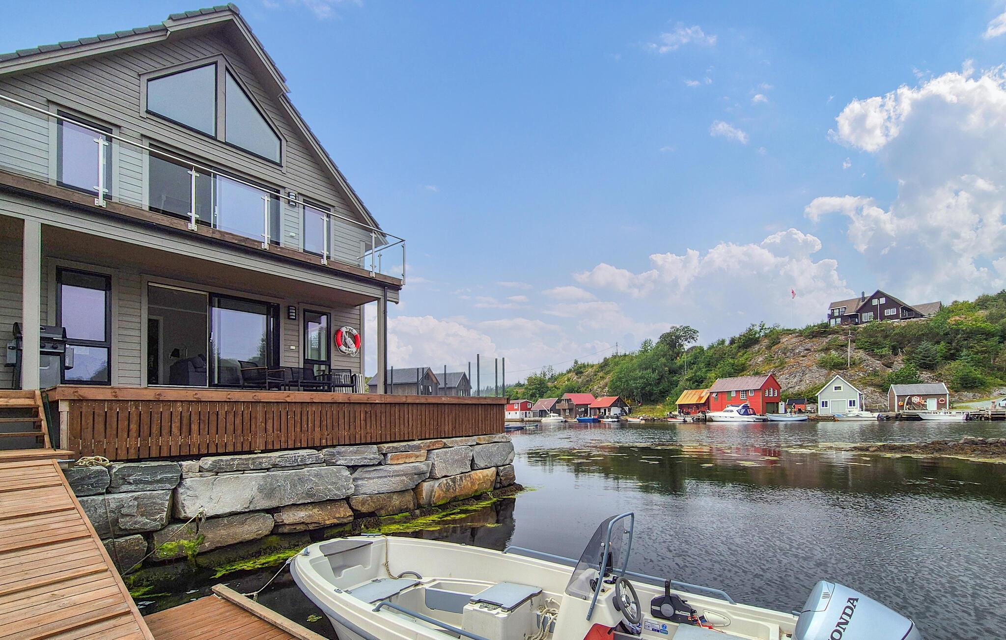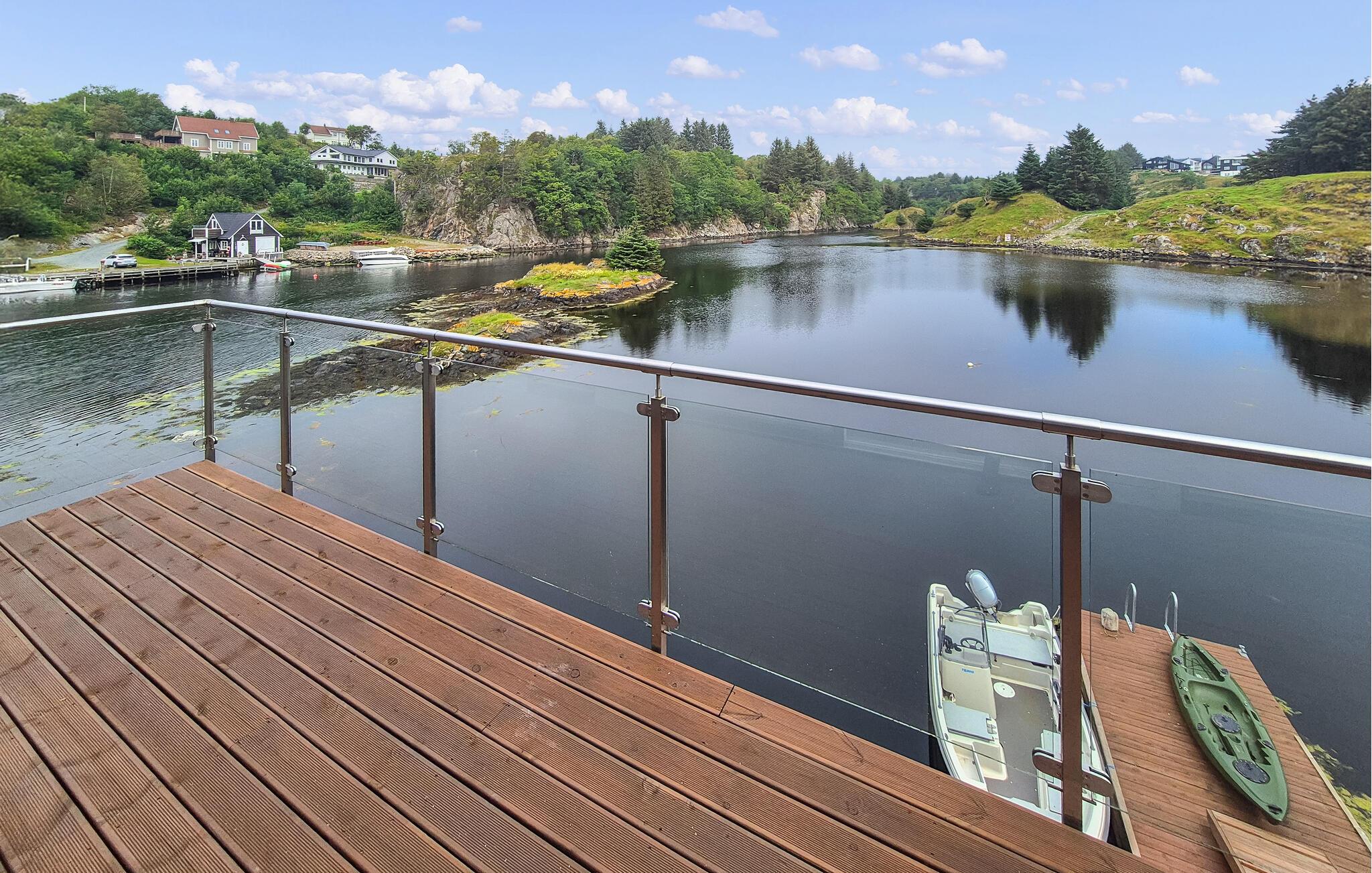Nyd afslappende dage ved havet, tag en kajaksejlads i den beskyttede bugt eller prøv lykken med fiskeri på en bådtur. Udforsk det nærliggende centrum af Bremnes med dets butikker, caféer og restauranter. Tag en tur til den charmerende by Stord, som ligger en kort køretur væk. Byerne Bergen, Haugesund og Stavanger med deres interessante seværdigheder er også ideelle til varierede dagsture.