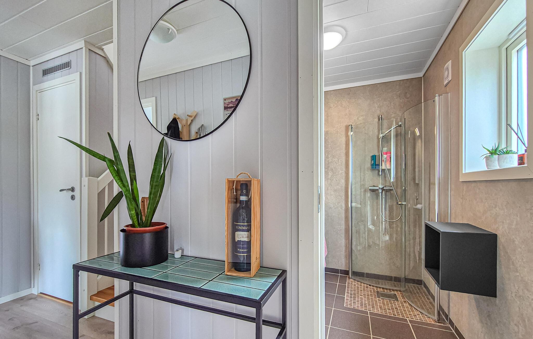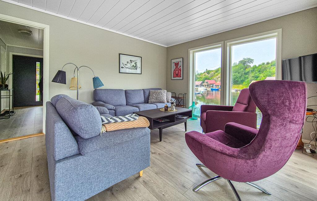 Dette hus byder jer velkommen med en atmosfære, der både er afslappende og forfriskende. gulv til loft-vinduer tilbyder en fantastisk udsigt over vandet, komfortable sofaer og lænestole lægger op til hyggestunder, og gennemtænkte detaljer tilføjer et personligt præg. Slap af her med en kop te, mens I læser jeres feriebøger eller mens I laver mad sammen i det moderne køkken.