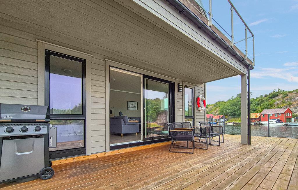 Sid på træterrassen, som ligger direkte ved kysten, når som helst på dagen: om morgenen med en duftende kaffe, om eftermiddagen til en snak eller om aftenen, mens solen langsomt synker ned over fjorden. De, der har lyst, kan bade i bugten direkte fra kajen. Ved dagens slutning kan I lade en saftig bøf eller friskfanget fisk syde på grillen og nyde et hyggeligt måltid med venner.