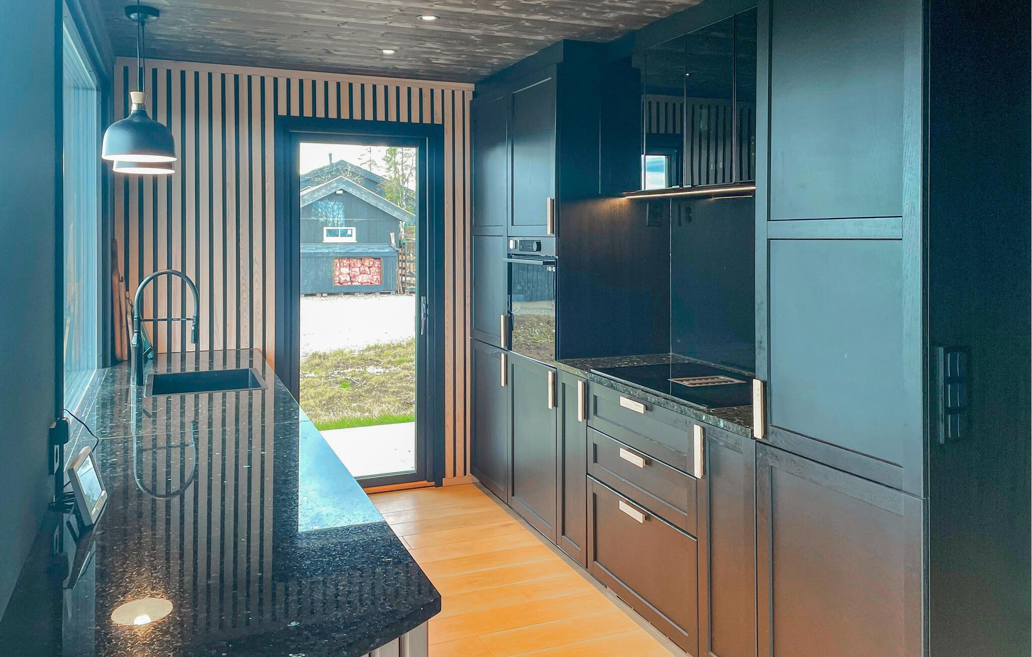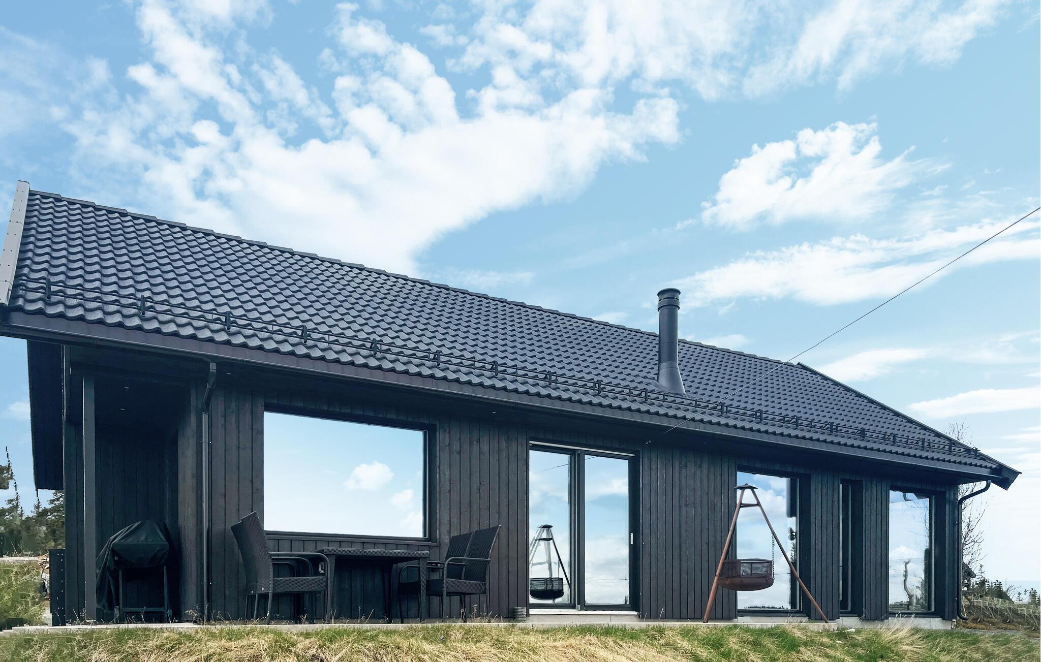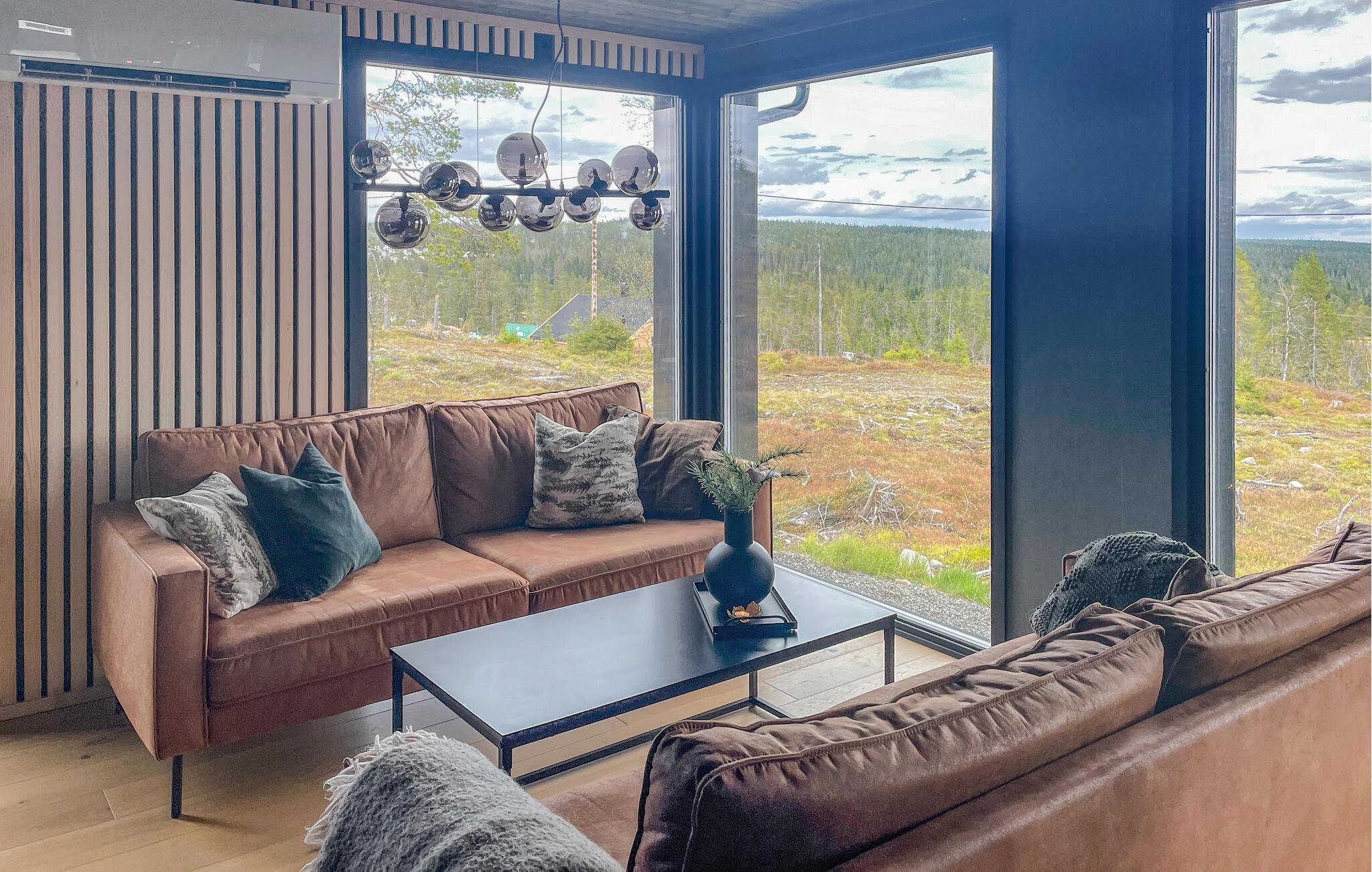Oplev en afslappende ferie i jeres smagfuldt designede feriehus, der smelter harmonisk sammen med landskabet. Her finder I rolige omgivelser med nem adgang til udendørsaktiviteter. Træd ind i husets åbne, eksklusive interiør. Slap af i de komfortable sofaer i den lyse opholdsstue og nyd den store natur gennem de store panoramavinduer. Nyd måltider sammen i den stilfulde spisestue med pejs eller lav mad i det moderne køkken med elegant design og apparater af høj kvalitet. Det gennemtænkte rumkoncept skaber en behagelig opholdsatmosfære med rene linjer og varme materialer.