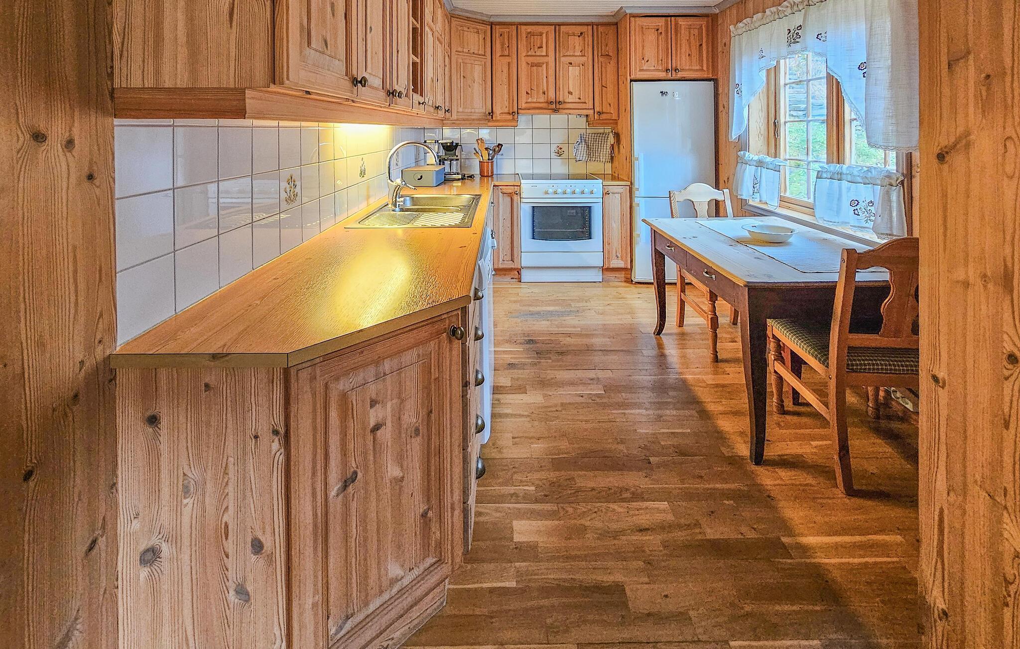 Nyd jeres ferie i dette traditionelle træhus omgivet af bjerge, skov og vand. Jeres hyggelige feriehus kombinerer charmen fra norsk arkitektur med en følelse af komfort og tryghed. Her finder I det ideelle sted at nyde den friske luft, det betagende landskab og den autentiske Telemark-livsstil. Oplev husets rustikke karakter i den komfortable opholdsstue. Slap af i den behagelige sofa, læs en bog, eller nyd udsigten fra de store vinduer. Interiøret har lyse træpaneler, traditionelle møbler og gennemtænkte detaljer, der skaber en varm atmosfære. Spis i den rummelige spisestue med antikke skabe og stilfulde lamper, eller tilbered jeres måltider i det smukke trækøkken – et ideelt sted at tilbringe tid sammen. Gå udenfor og nyd roen i haven. Lad blikket vandre over bjergene og skovene, der indrammer dalen. Nyd jeres morgenkaffe udenfor, eller start en vandretur lige fra hoveddøren. Udforsk Dalen, hjertet af Telemark. Tag en tur til den nærliggende Bandak-sø. Tag en tur med den historiske M/S Henrik Ibsen, bygget i 1907, langs Telemarkskanalen, oplev sluserne tæt på, eller cykl langs vandvejene. Tag en vandretur til de historiske Rui-Plassen-søer, og nyd den spektakulære udsigt over dalen.