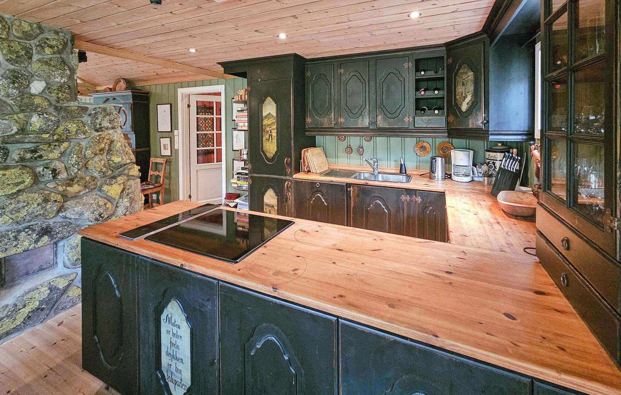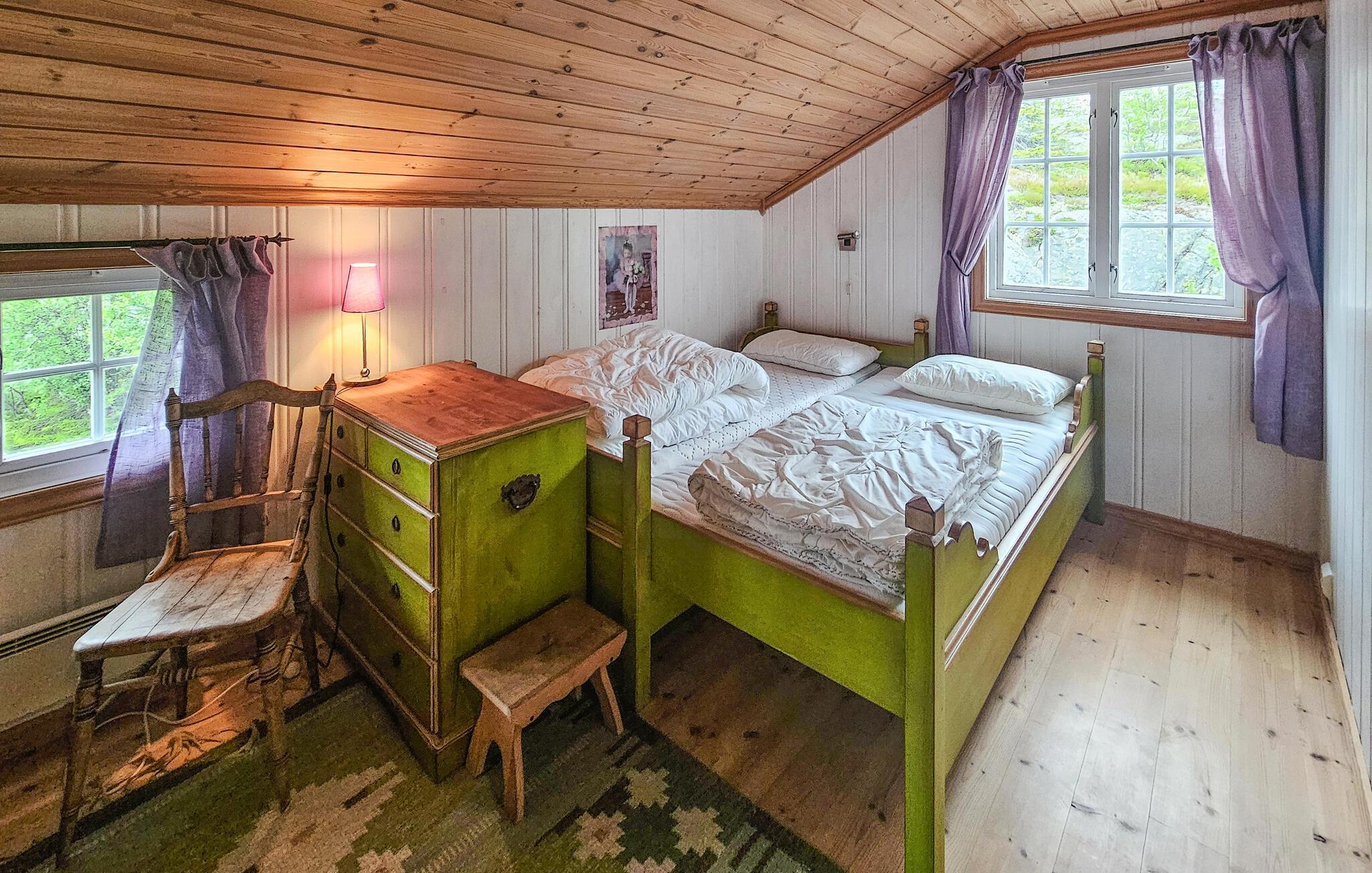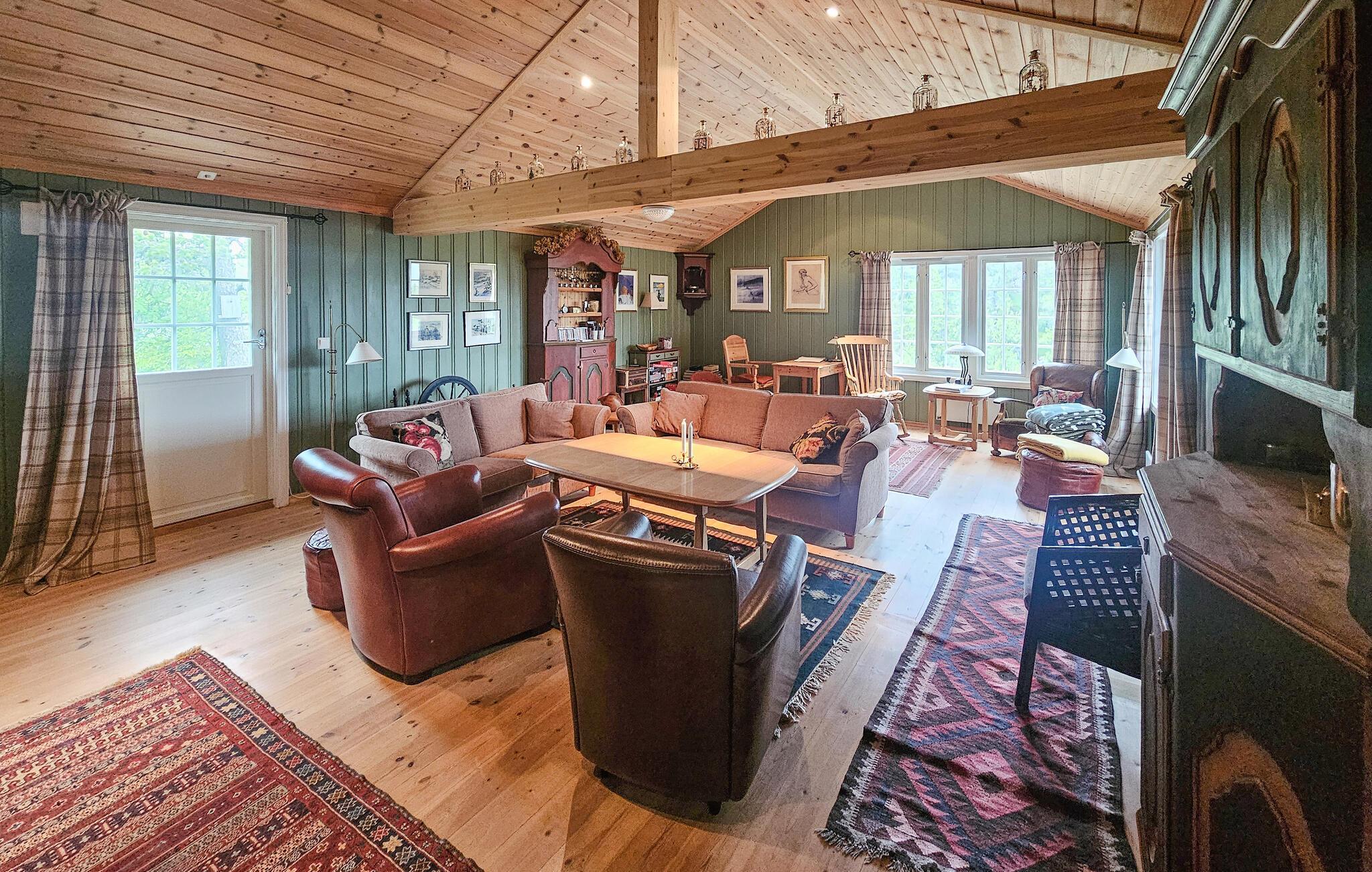 Velkommen til dette rummelige og hyggelige feriehus, hvor I kan nyde dejlige dage omgivet af betagende natur, selv med en større familie eller en gruppe venner. Glæd jer til muntre snakke, mens I laver mad, og harmoniske spilleaftener i de blødt oplyste værelser. Forkæl jer selv med afslappende øjeblikke i saunaen, mens andre tænder pejsen, læser en bog eller streamer en film.
