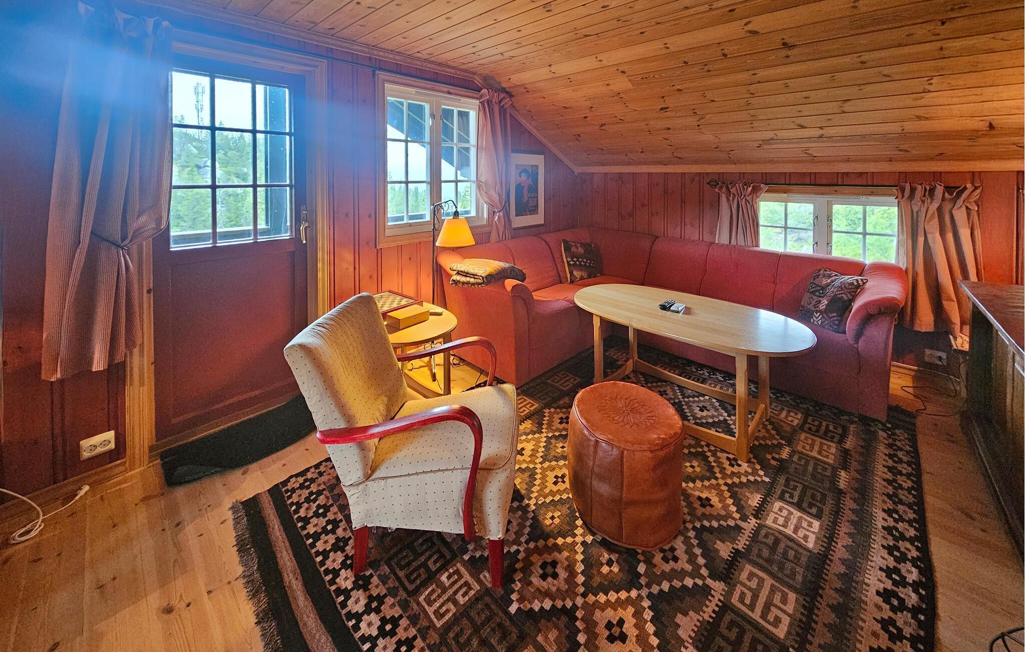 Tag på vandretur gennem de idylliske Eggedal Vestfjell-fjelde, bad i klare bjergsøer eller nyd roen i vildmarken på en kanotur på den nærliggende Numedalslågen. Tag en dagstur til Norefjell Ski- og Fritidsområde, hvor I kan mountainbike om sommeren eller stå på ski om vinteren. Udforsk charmerende Nesbyen og prøv traditionelle specialiteter i en hyggelig restaurant.