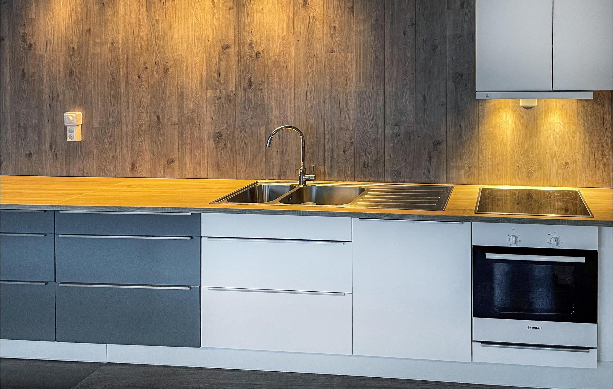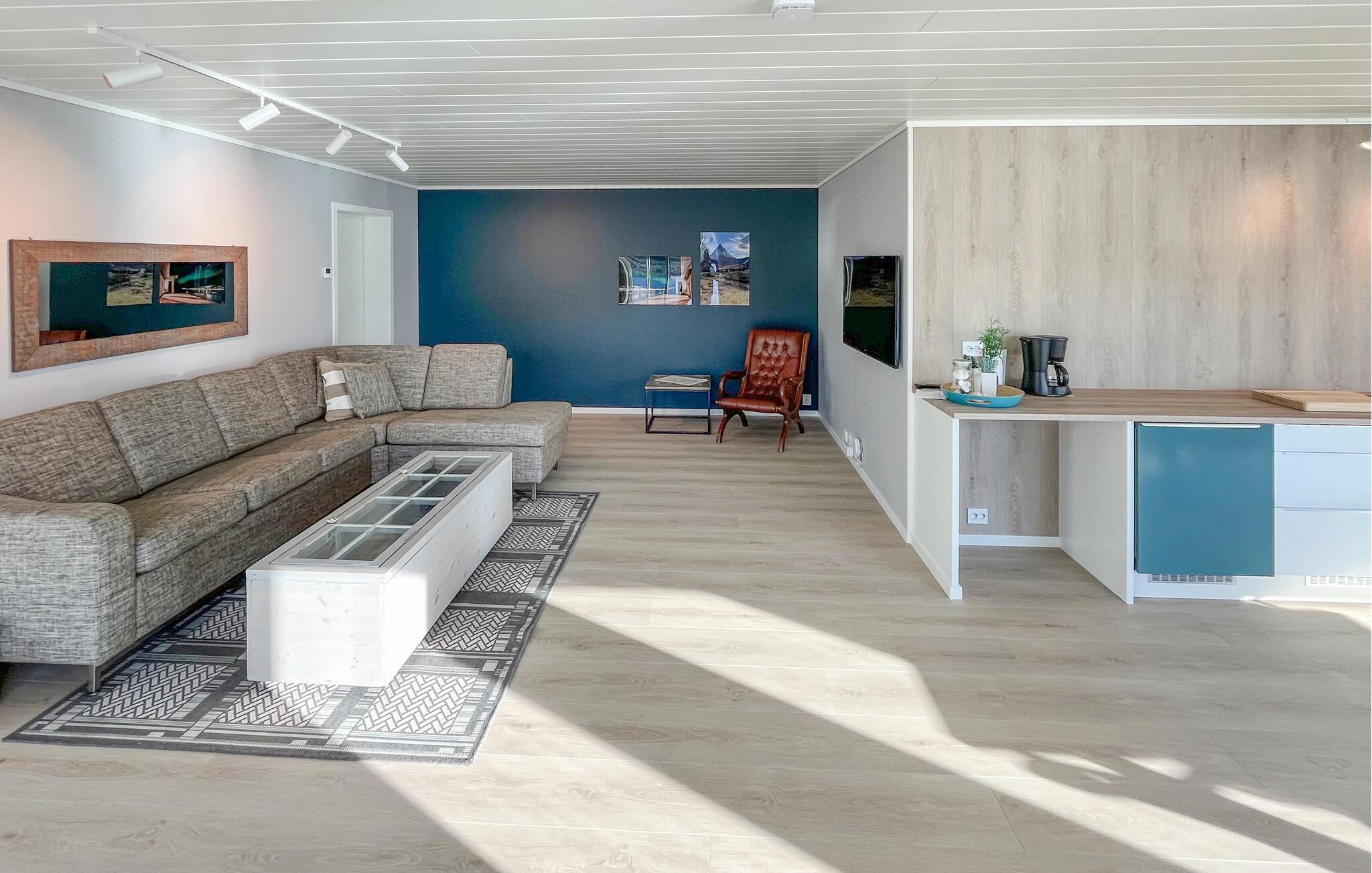 Velkommen til denne moderne ferielejlighed lige ud til Eresfjorden, der tilbyder jer et stilfuldt hjem, mens I udforsker den betagende natur på en afslappende og aktiv ferie. Store panoramavinduer giver det smagfulde interiør masser af naturskønt dagslys og giver jer en fortryllende udsigt over den unikke natur, mens I laver mad, spiser og slapper af på sofaen – en udsigt, I vil huske med glæde.