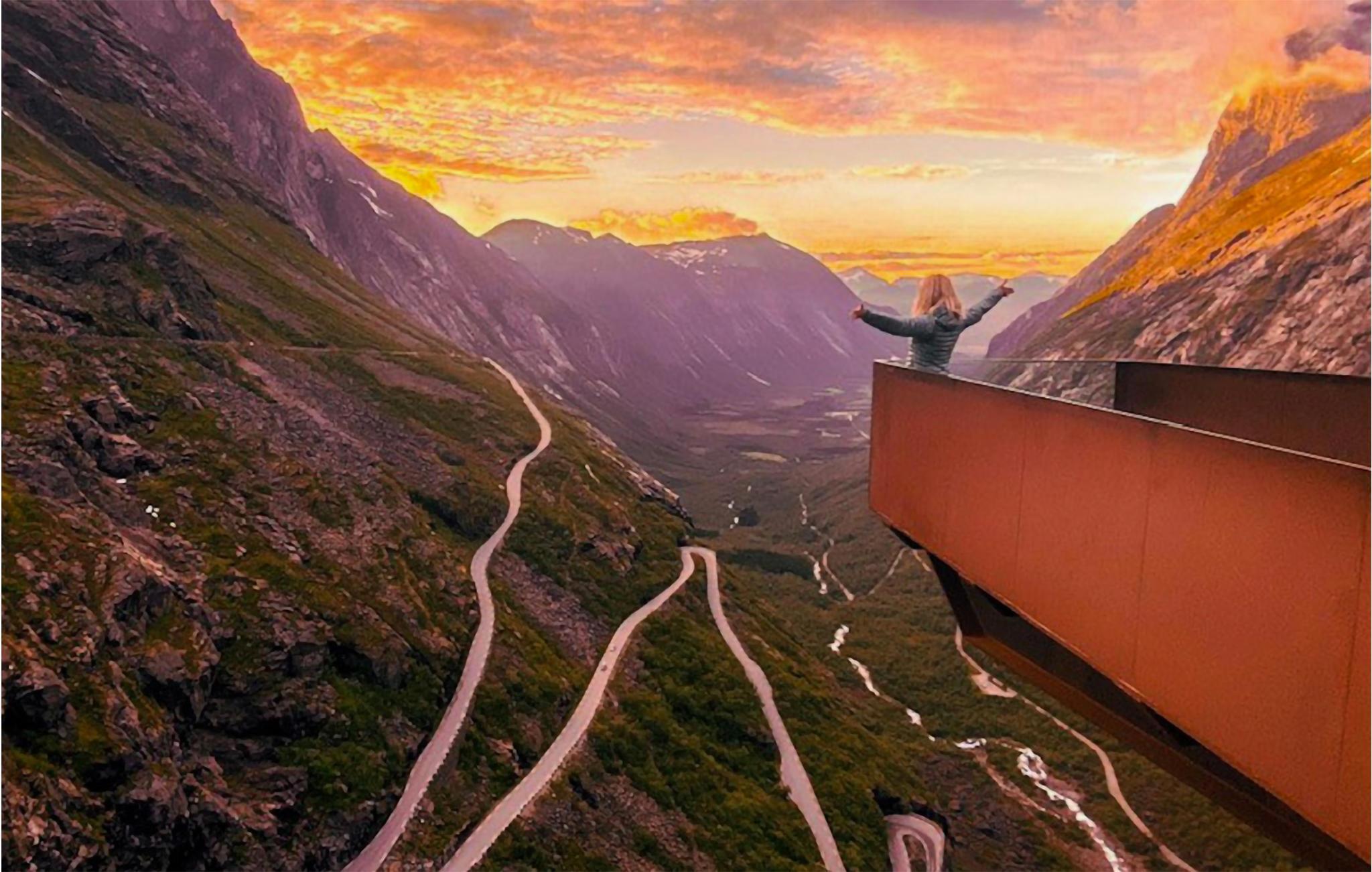 Udforsk den spektakulære Trollstigen og beundr udsigten over det imponerende Trollveggen-klippemassiv i Reinheimen Nationalpark. Bestig Romsdalshornet, besøg det imponerende Trollkirka-grottesystem nær Fræna med det underjordiske vandfald eller tag på cykeltur langs den imponerende Atlanterhavsvej.