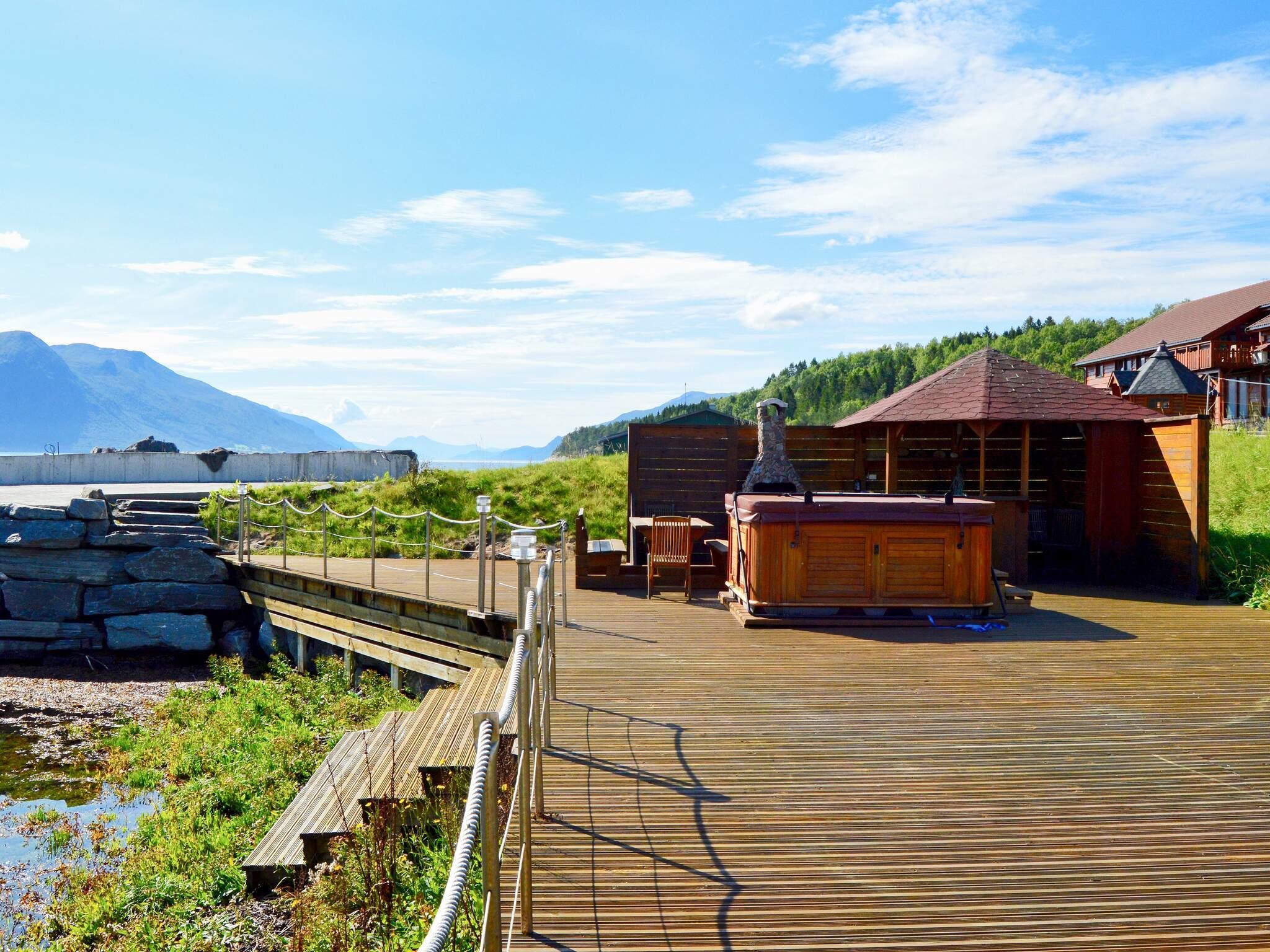 Utenfor er det 4.000 m² fellesareal til ballspill og område med sandkasse og lekeapparater for småbarn. 80 m til felles 200 m² terrasse med badestrand, grill og grillhytte. På forespørsel kan grillhytte og boblebad leies. Felles utendørs 50 kvm svømmebasseng, åpent daglig kl. 12-18.00, i tiden 20.6-5.9. Temperatur 20-26 grader, væravhengig. Eidsvåg, 3 km, med alle servicetilbud. God lakseelv, Eira, 22 km. Ørretvannet Målsvatnet, 9 km. 5-10 min. med båt til de beste fiskeplassene. Fisketilberedningsplass i eget bygg, ca. 70 m unna.