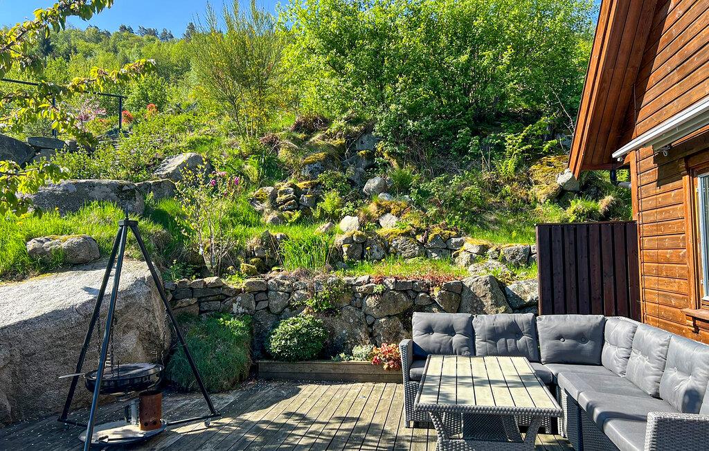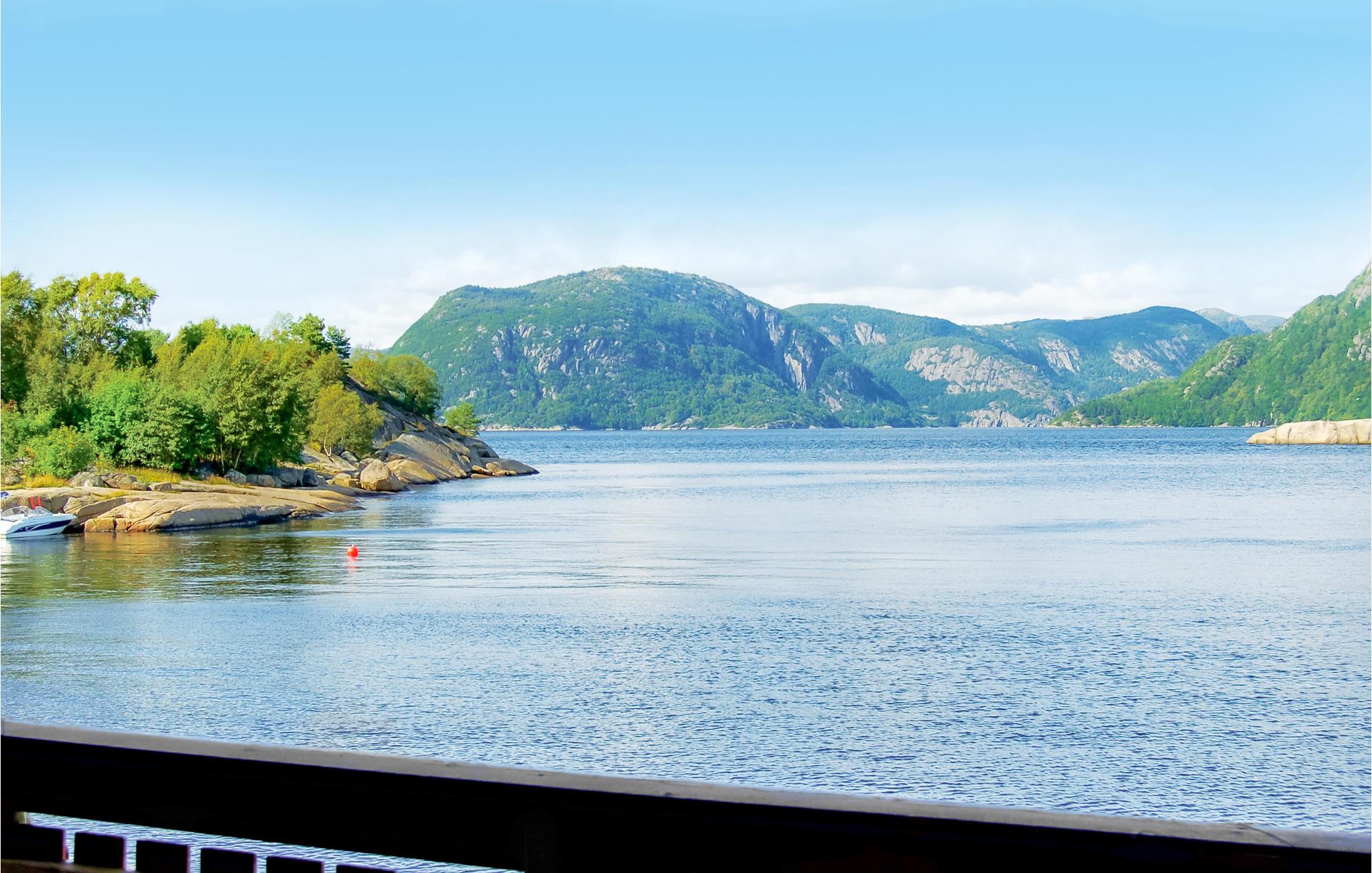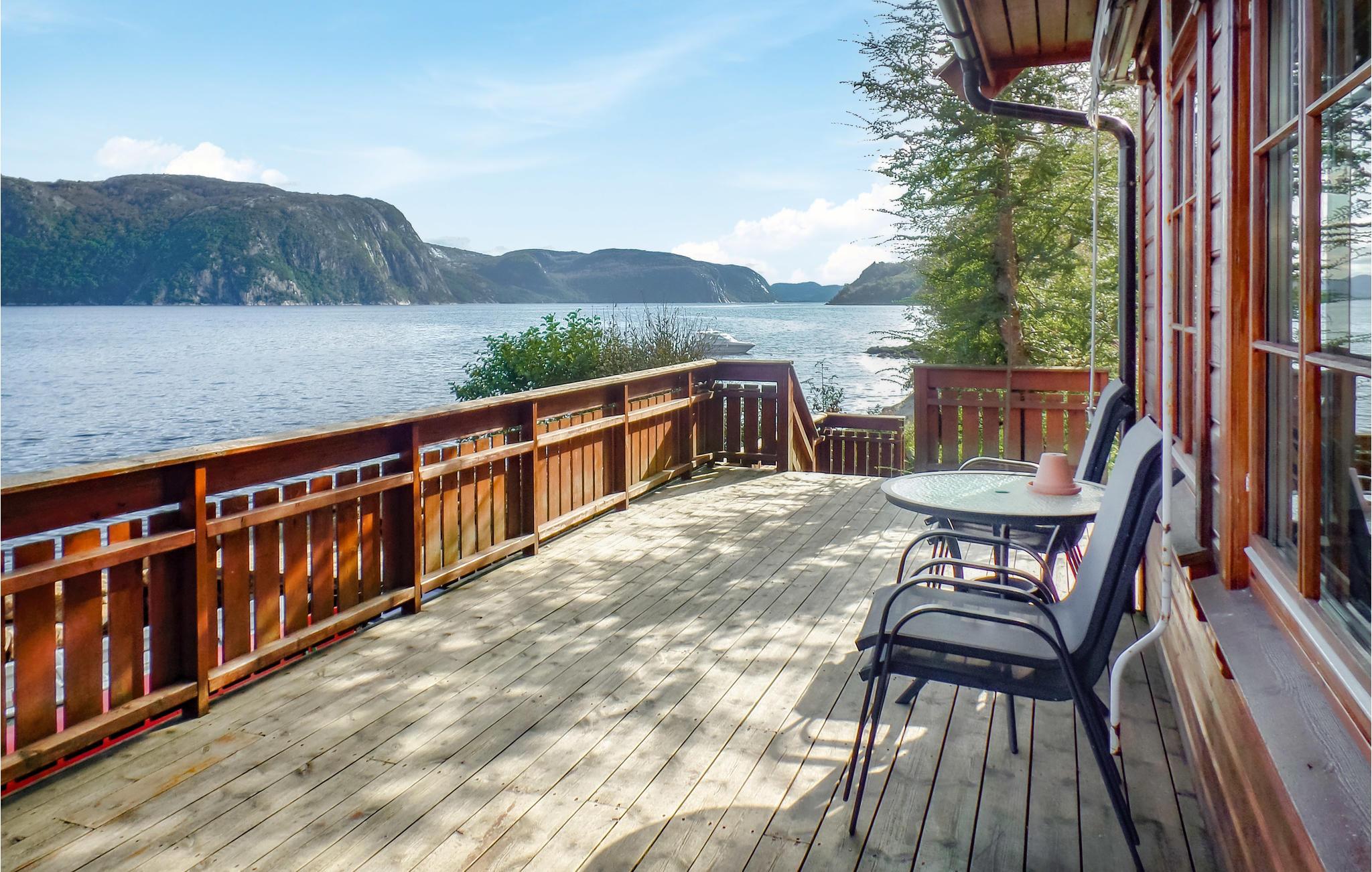 Det ligger helt ned til vandkanten ikke langt fra Farsund. Her kan I fiske fra terrassen eller kajen og bade på den lille private badeplads lige ved huset. Feriehuset ligger i fredelige omgivelser i et område med mange attraktioner samt gode udflugts- og fiskemuligheder. Der er en sælkoloni lige uden for feriehuset.