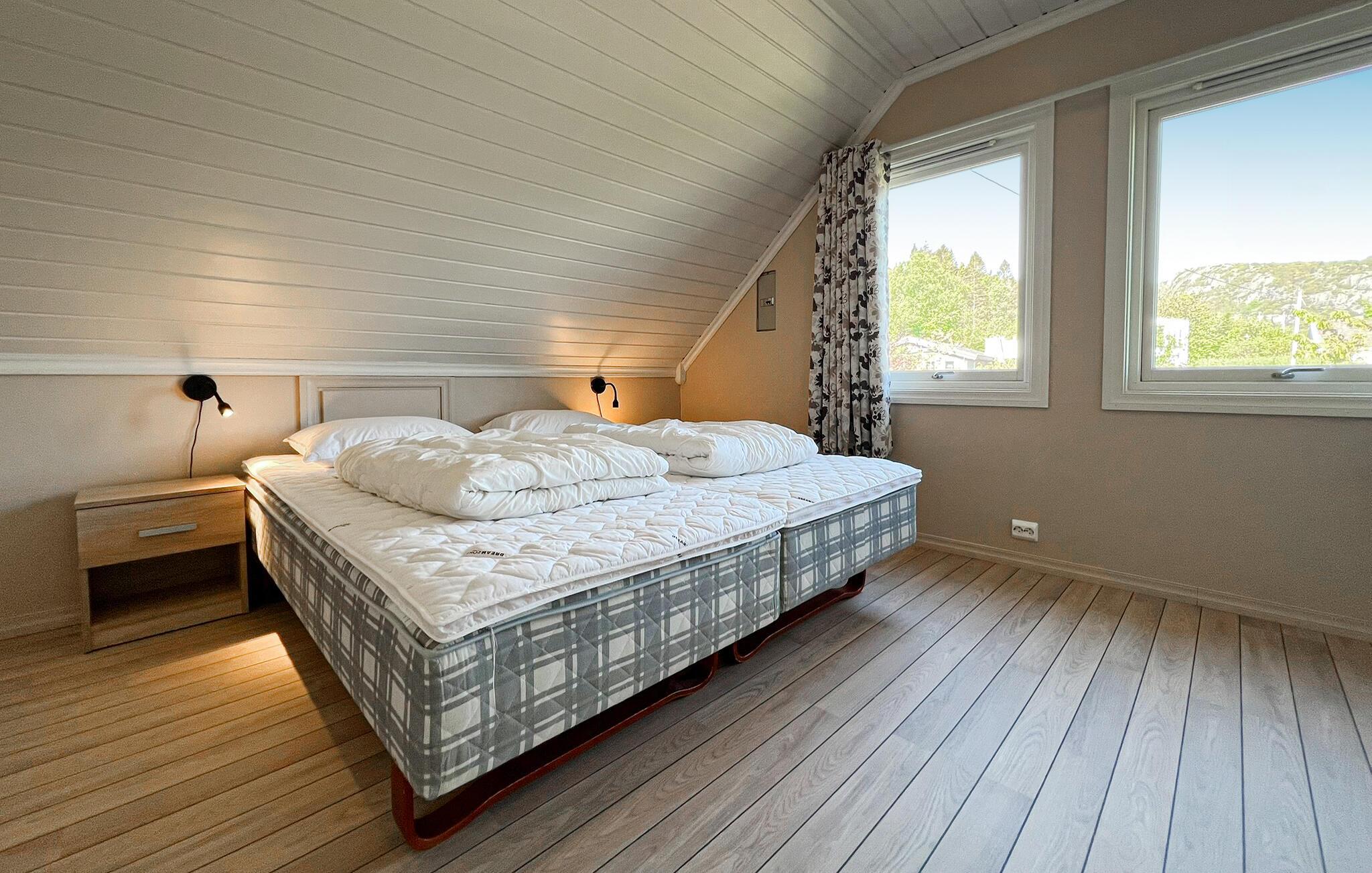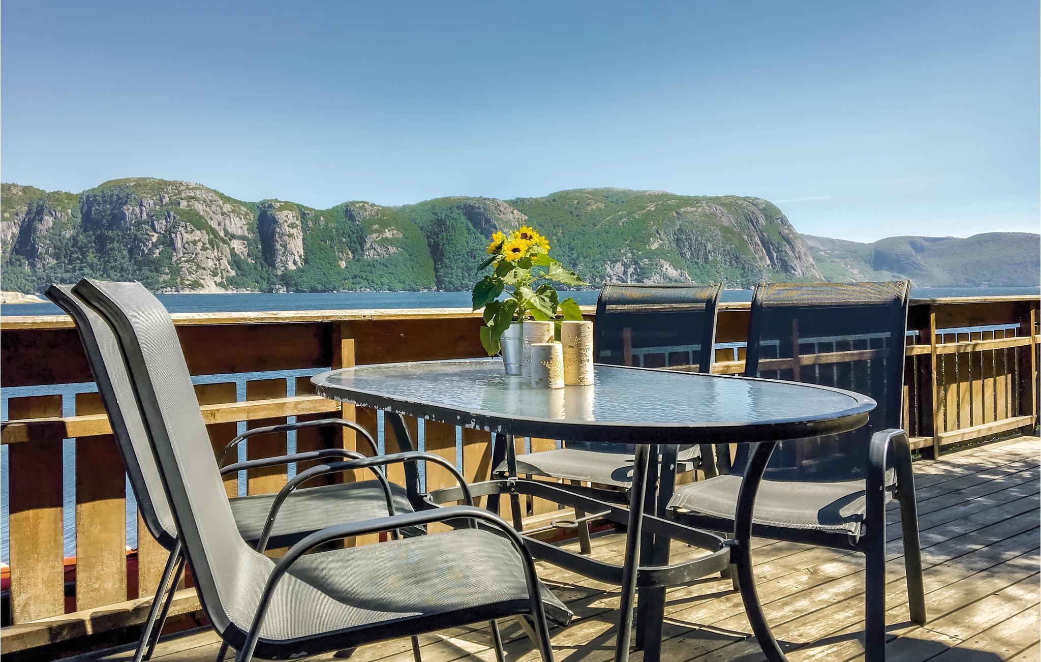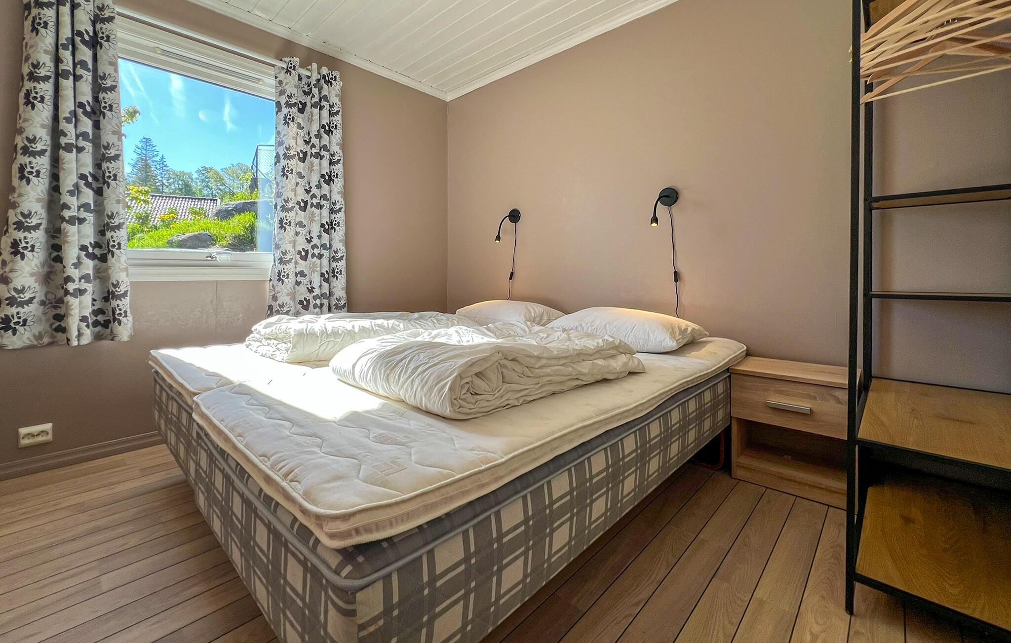 Det ligger helt ned til vandkanten ikke langt fra Farsund. Her kan I fiske fra terrassen eller kajen og bade på den lille private badeplads lige ved huset. Feriehuset ligger i fredelige omgivelser i et område med mange attraktioner samt gode udflugts- og fiskemuligheder. Der er en sælkoloni lige uden for feriehuset.