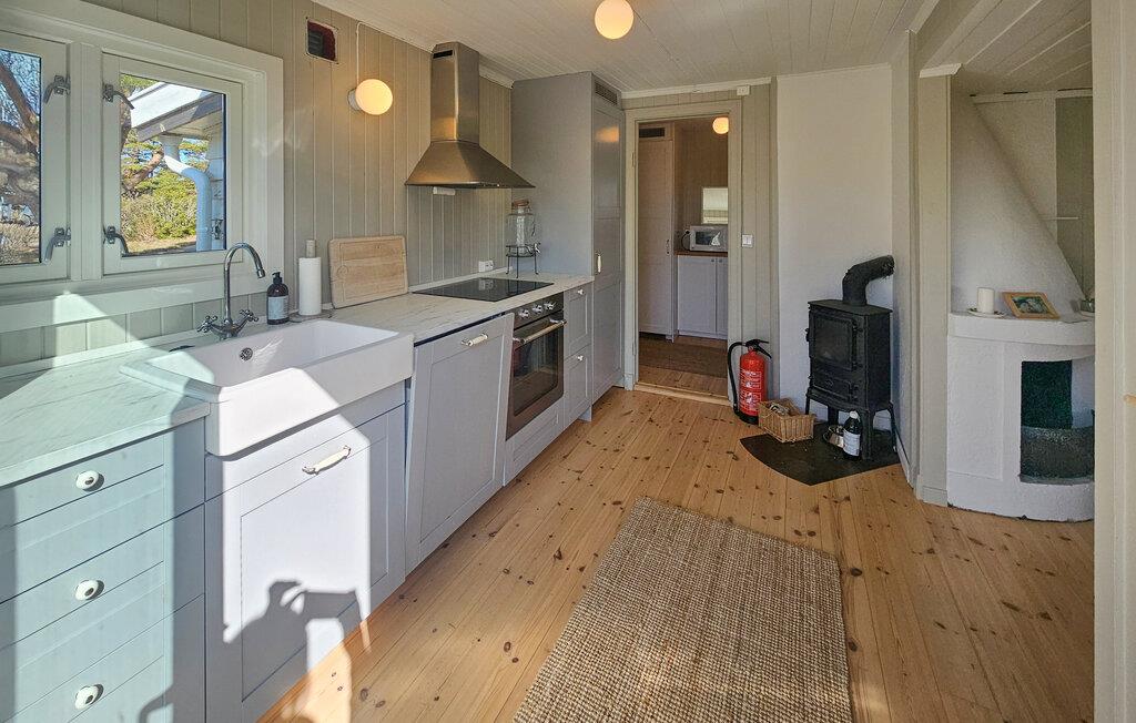 Dette hyggelige feriehus ligger nær kysten og byder jer velkommen med lyse interiører og stilfulde møbler, der vil få jer til at føle jer hjemme fra første øjeblik. Her finder I masser af plads til at nyde hyggelige madlavningsaftener, fælles måltider, både indendørs og udendørs, og hyggelige filmaftener, selv med en større gruppe.