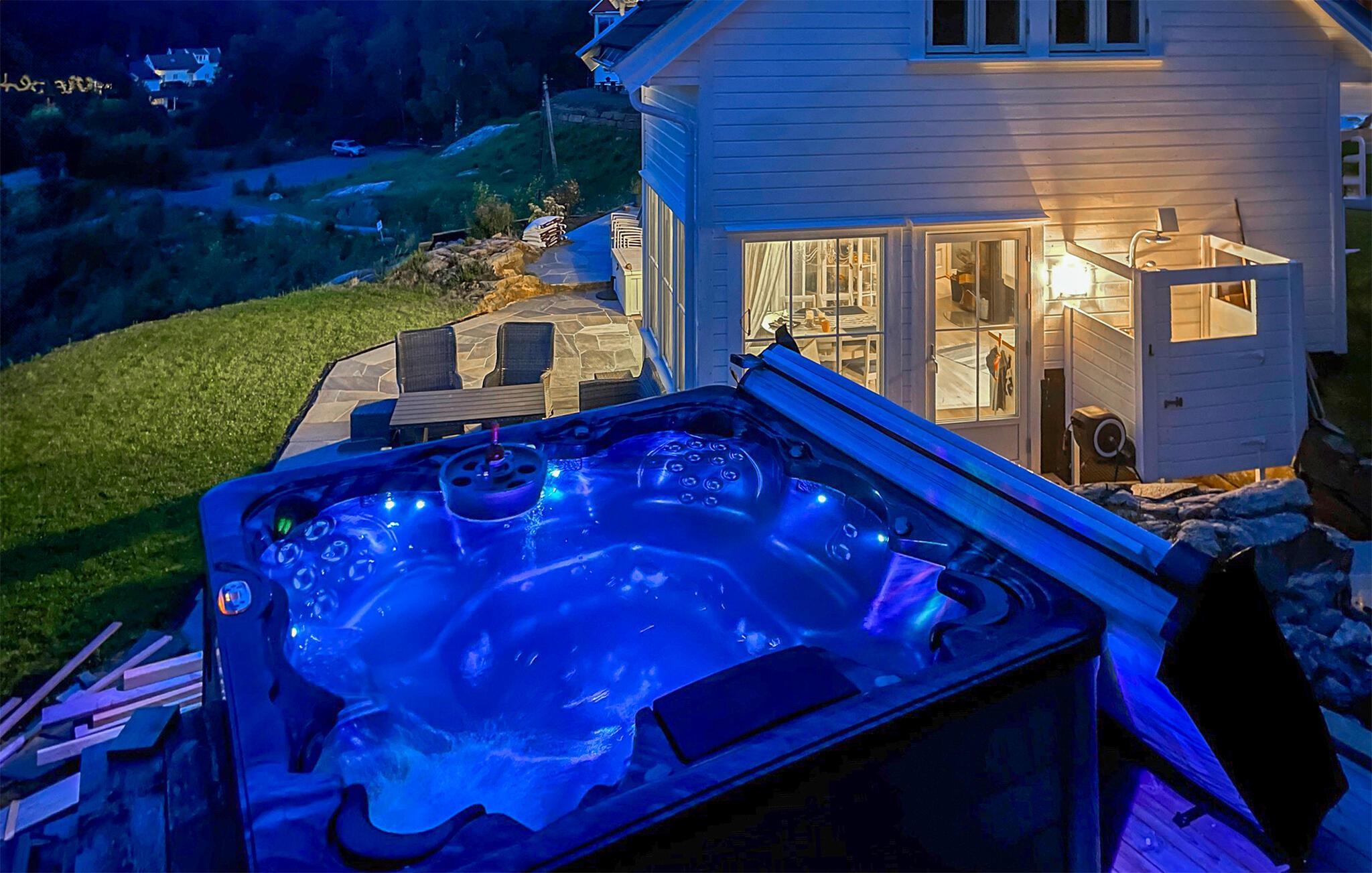 I kan slappe af ude i haven nyde den friske havluft. I kan endda hoppe i spabadet og nyde udsigten. Bagefter kan I skylle jer i udebuseren og fortsætte den hyggelige aften i det bløde hjørne af terrassen med et glas vin i hånden. Måske I skal lægge en plan for næste dages seværdigheder.