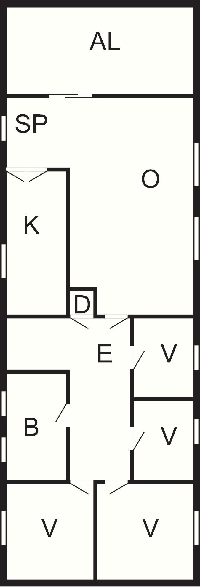4 Soveværelser: (2S)+(1DS+1S)+(1DS)+(1S)