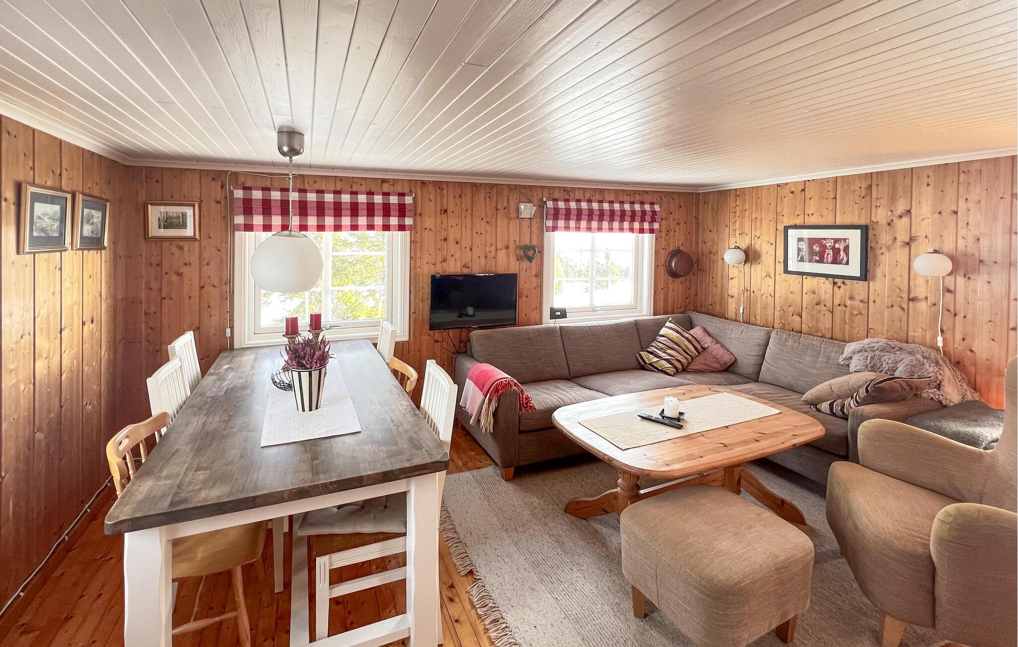 Velkommen til dette velindrettede hus, der tilbyder jer en pause tæt på naturen, langt væk fra hverdagen. Lav mad i det hyggelige køkken og tag plads ved det indbydende spisebord. Lyt til brændeovnens knitren, mens I læser, eller hold en spilleaften med familien.