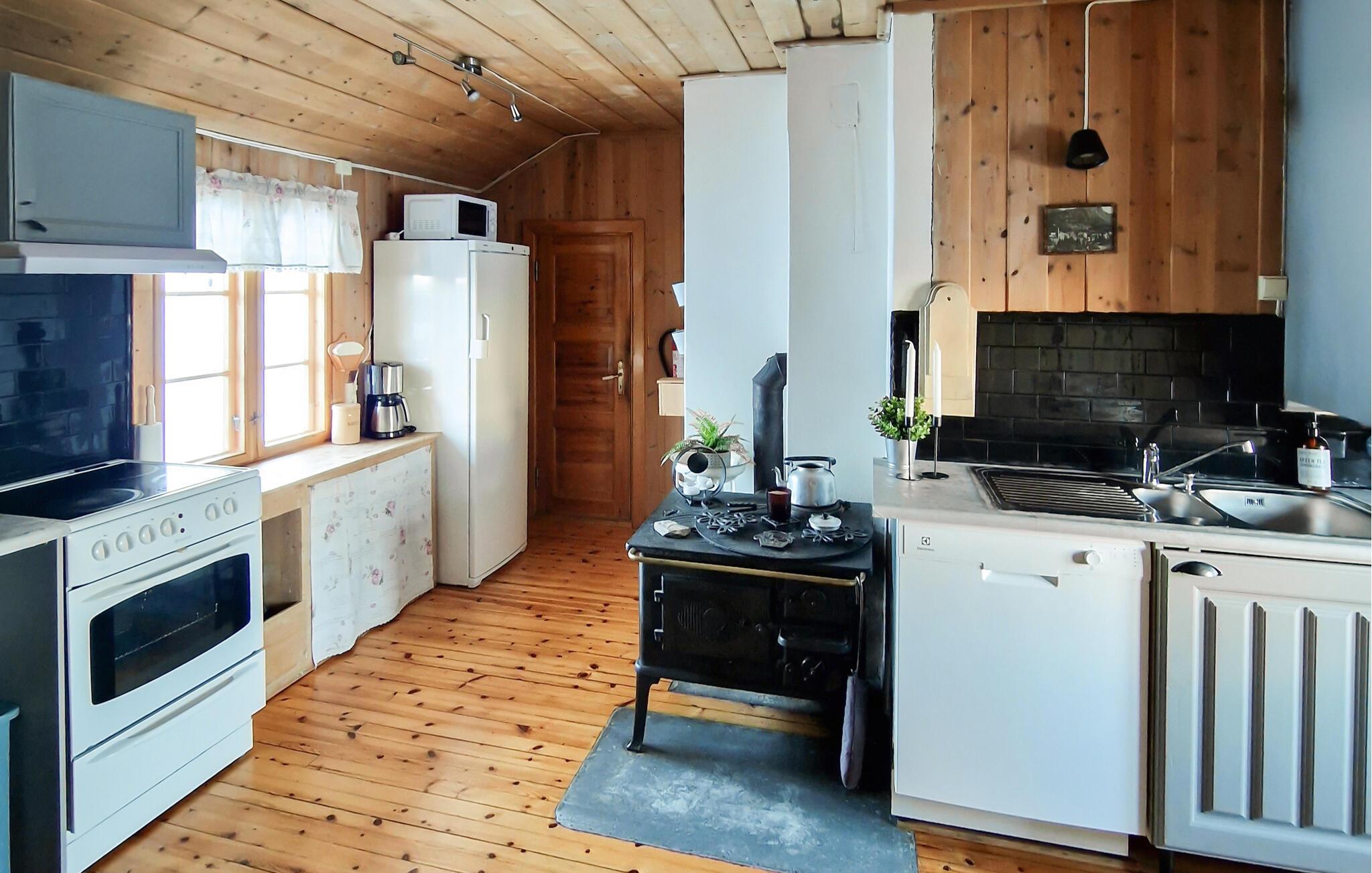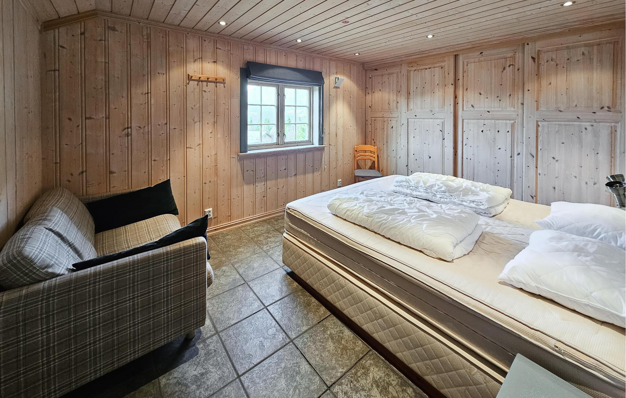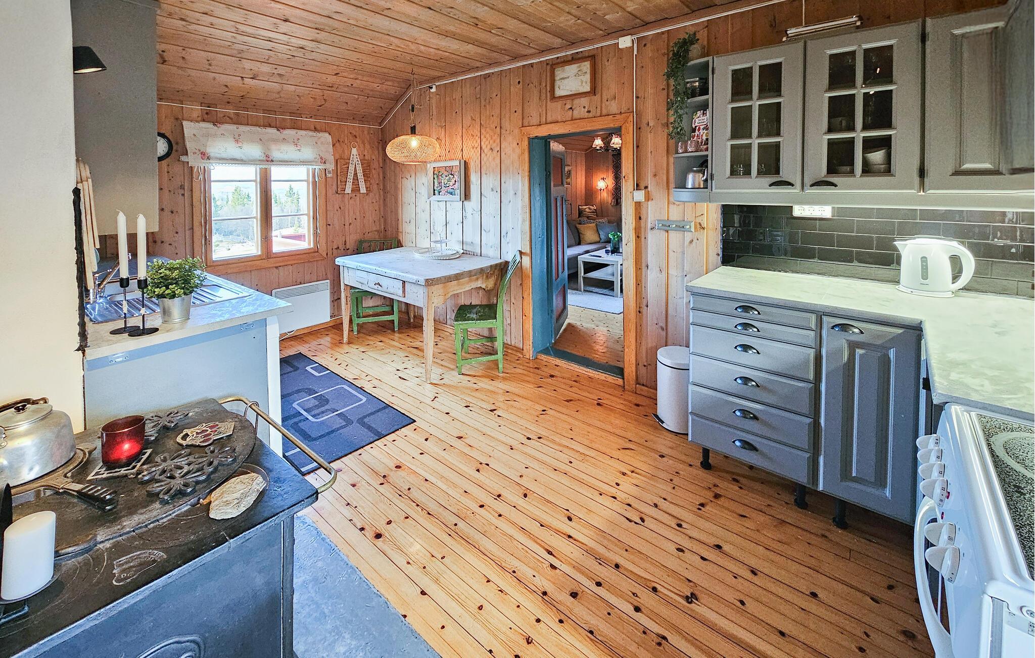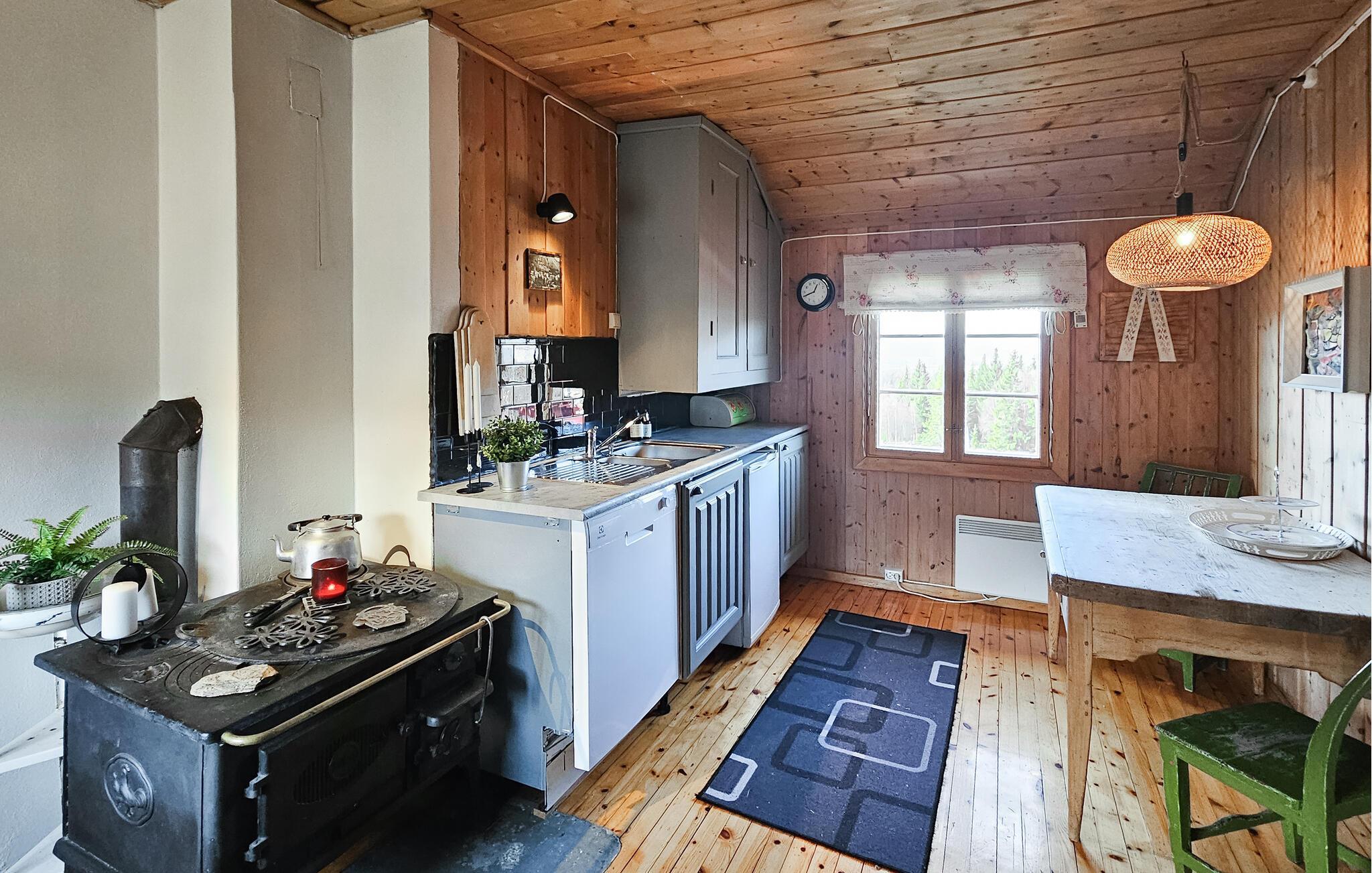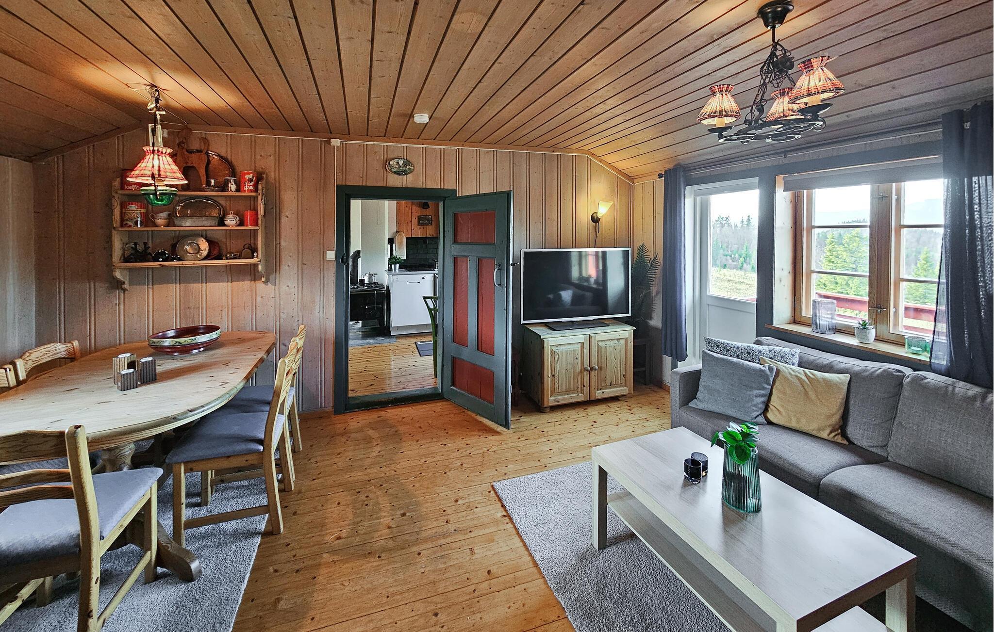 Dette hyggelige feriehus kombinerer skandinavisk tradition med rustik hygge. Træpanelerne og brændeovnen skaber en varm atmosfære, der er perfekt til hyggelige stunder med familie eller venner. Den åbne opholdsstue og det veludstyrede køkken lægger op til afslappende aftener, mens de store vinduer giver jer mulighed for at beundre den smukke natur. På terrassen kan I nyde den friske bjergluft og finde ro.
