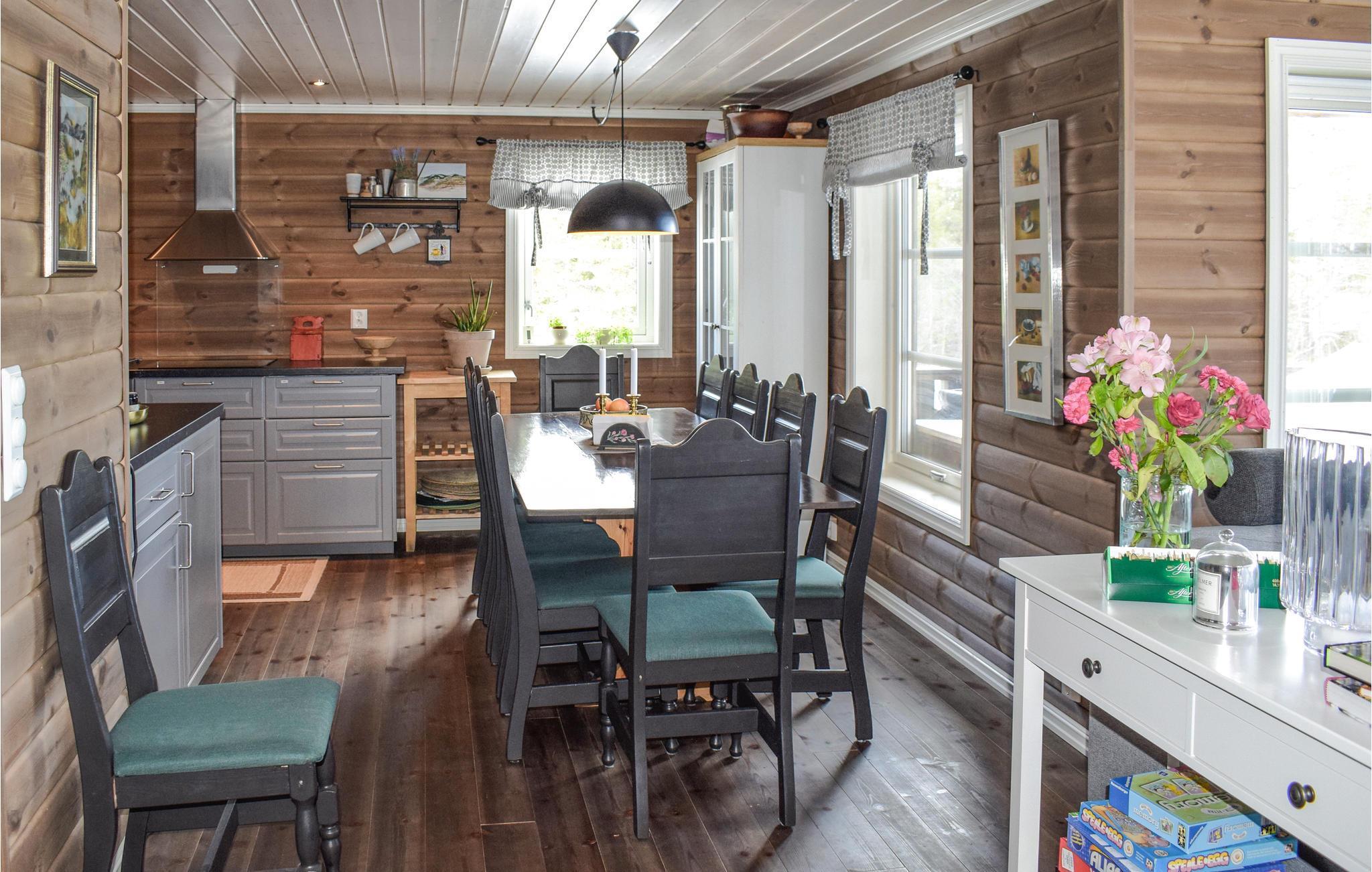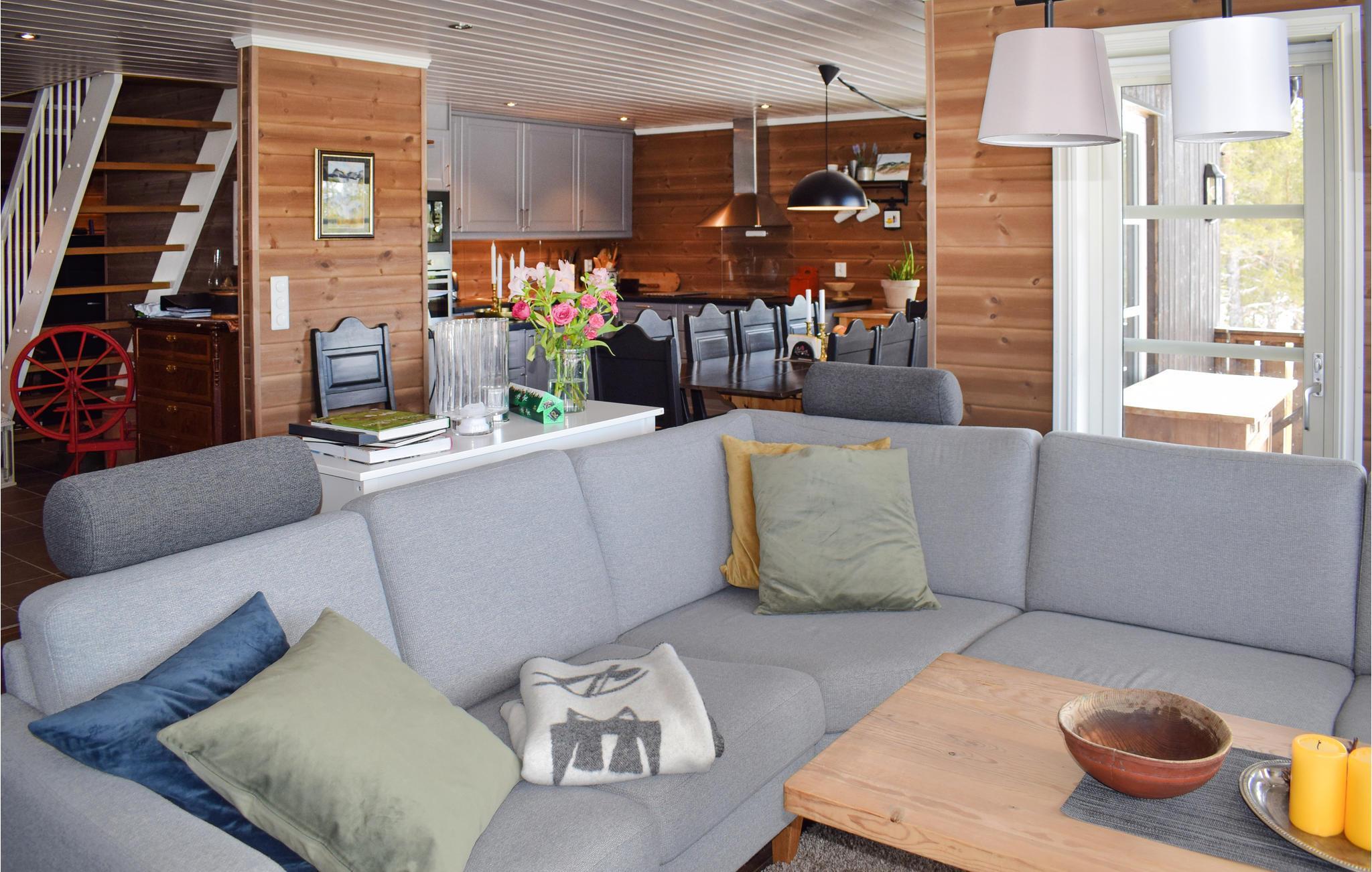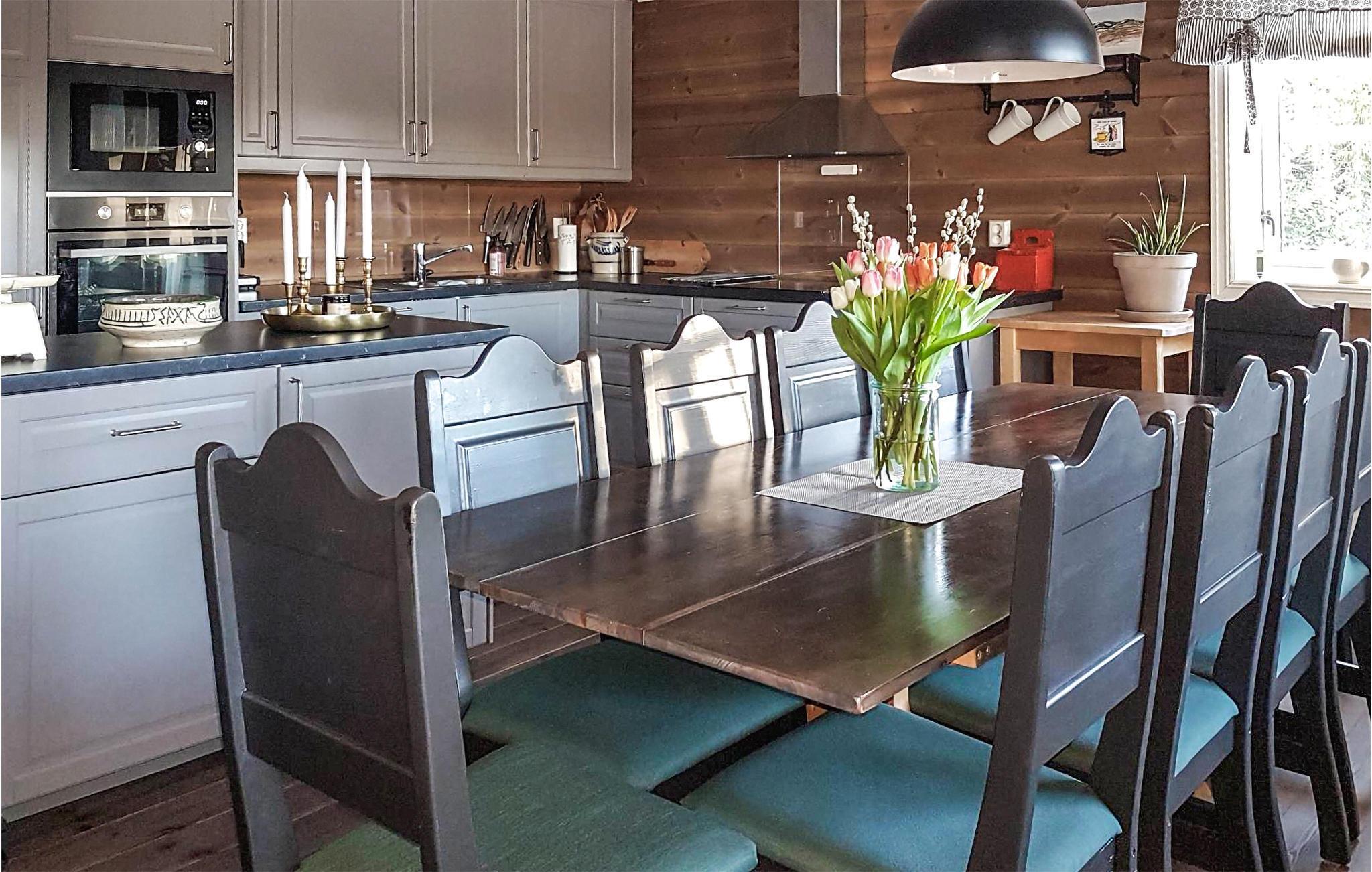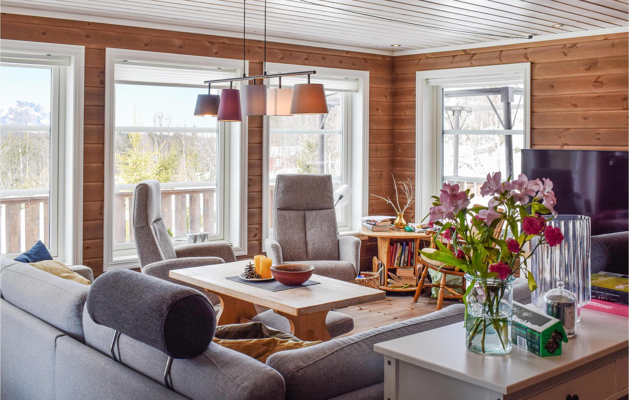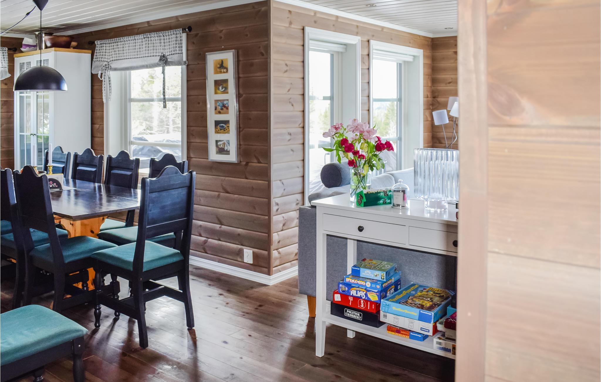 Slap af i en smagfuld atmosfære og nyd en vidunderlig udsigt over bjerget, der rejser sig majestætisk bag søen, og et miljø, der byder på de bedste muligheder for spektakulære naturoplevelser og udendørsaktiviteter for hele familien. Her spiser man sammen med udsigt til haven. Om aftenen, efter en beroligende sauna-session, kan I finde jer tilpas i et af de komfortable siddepladser og sofahjørner, spille spil ved spisebordet eller slappe af i sofaen, heppe på i pejsen og sidde sammen i lang tid. til flammernes knitren i den hyggelige varme.