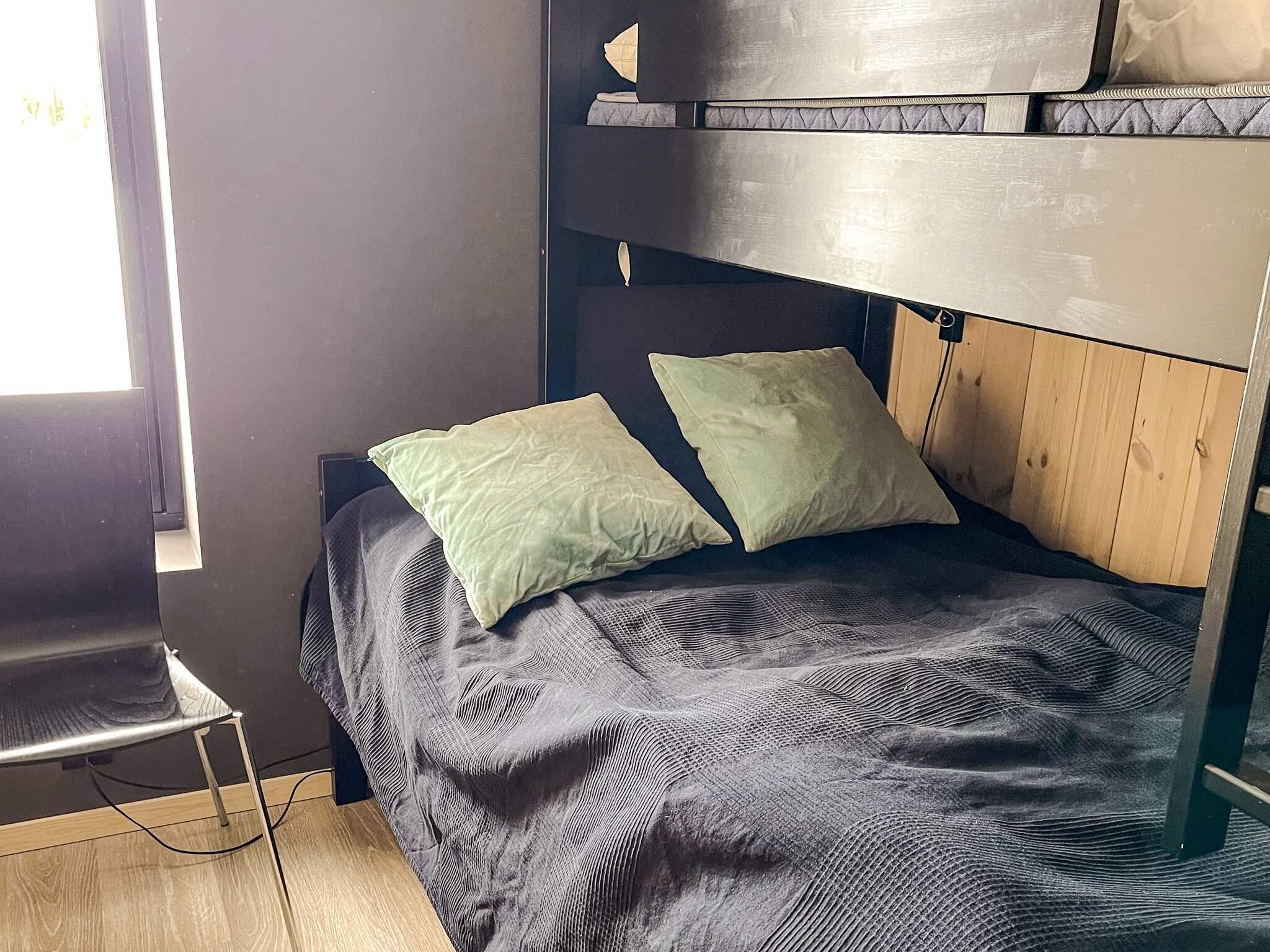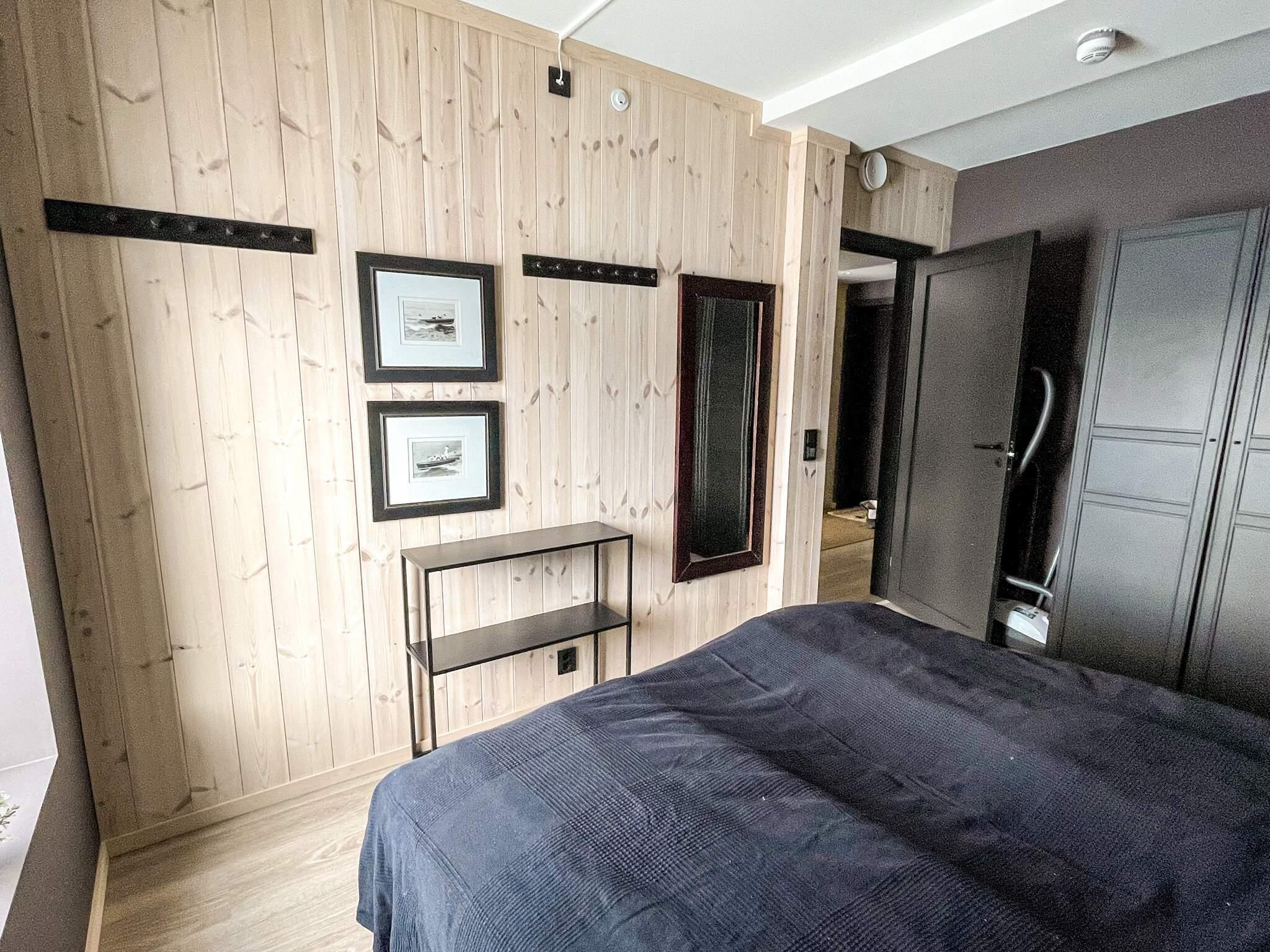 Leiligheten er innredet med to soverom, ett med dobbeltseng og ett med dobbeltseng og en enkeltseng. Det er åpen stue/kjøkkenløsning. Deilig bad med vaskemaskin. Sengetøy og håndklær er inkludert i leien.