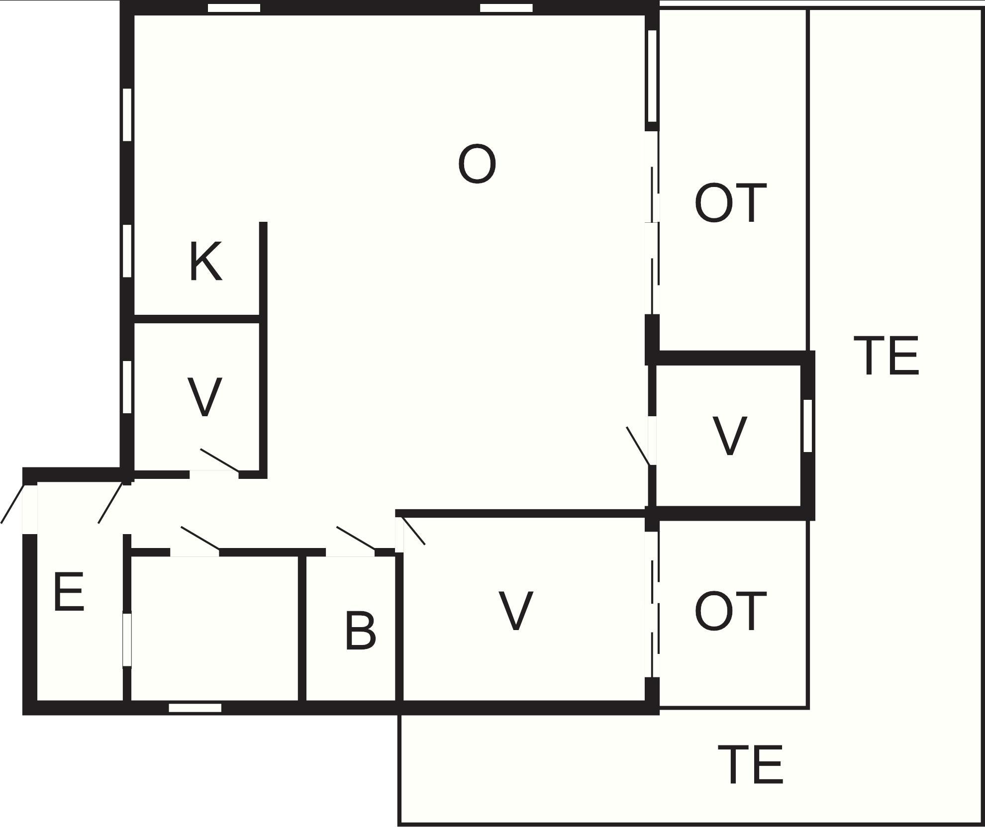 Feriehus på en etasje med åpen løsning mellom stue og kjøkken. På den romslige stuen er det en murt peisovn. Stuen og det ene soverommet har store glassdører som kan åpnes ut mot terrassen. TV med norske og internasjonale TV-kanaler via RiksTV. Internett kun til surfing. Feriehuset har en stor terrasse og naturtomt.