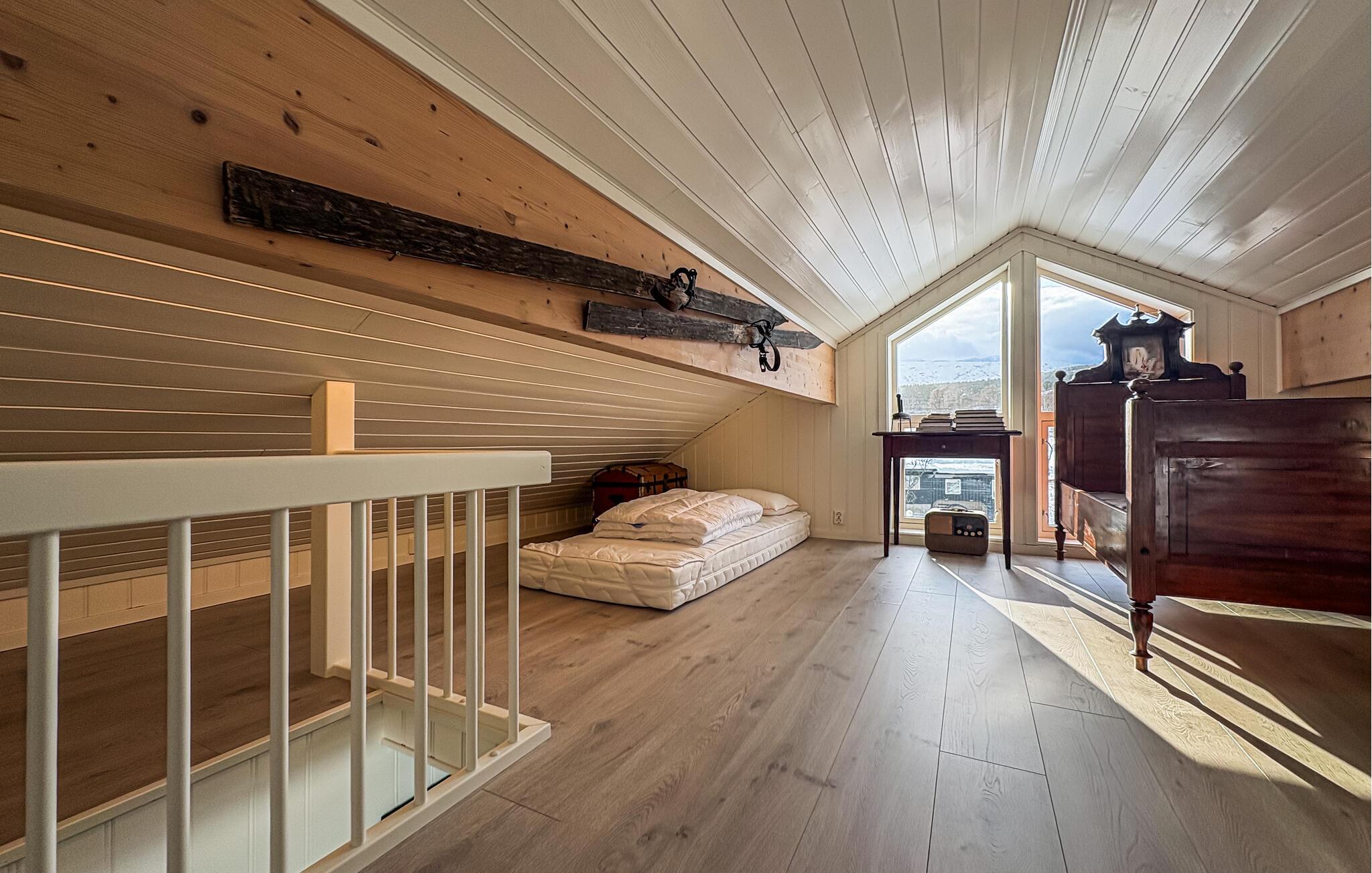 Den rummelige træterrasse strækker sig langs siden af ??huset og tilbyder flere siddepladser, hvor I kan nyde solen og den panoramiske udsigt. Sid udenfor med en kop kaffe, nyd freden og roen, tag en dyb indånding, og Sæt hverdagen på pause.