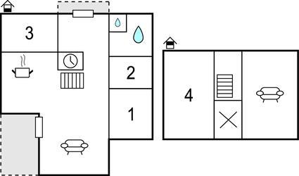 Opholdsstue - 2 Sovepladser. (Enkeltseng(e)).