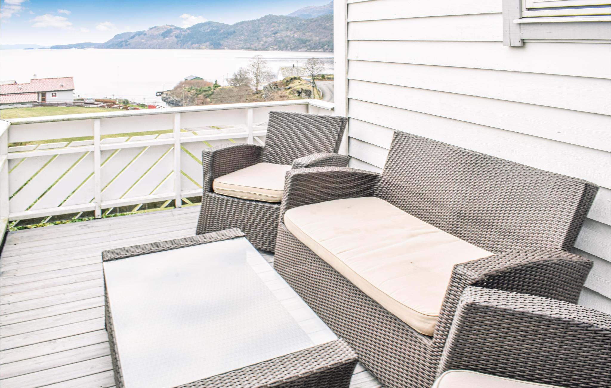 Fra huset er det 200 meter til vandet og fjorden, hvor I finder flere gode svømmepladser. En større legeplads kan nås til fods. Et smukt vandreområde begynder lige på ejendommen. En kort køretur fører jer til foden af ??Fusa-bjergene, hvor godt afmærkede vandrestier fører ind i bjergene. Bådsæsonen løber fra 1. april til 30. oktober, og fantastiske Bergen ligger en times kørsel fra huset.