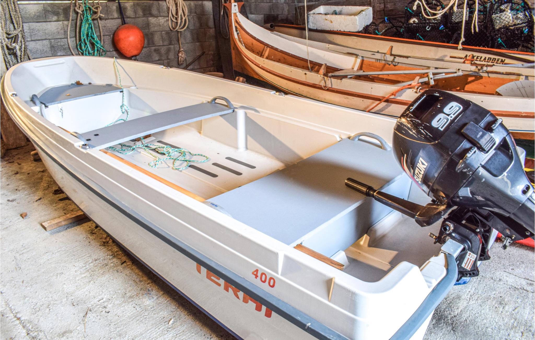 Båd og motor8 hk, 14 fod