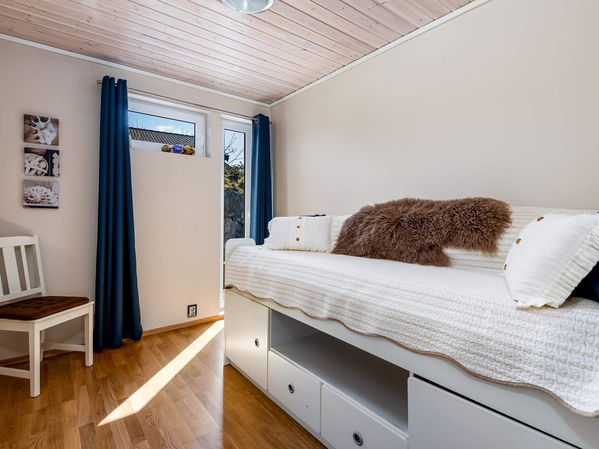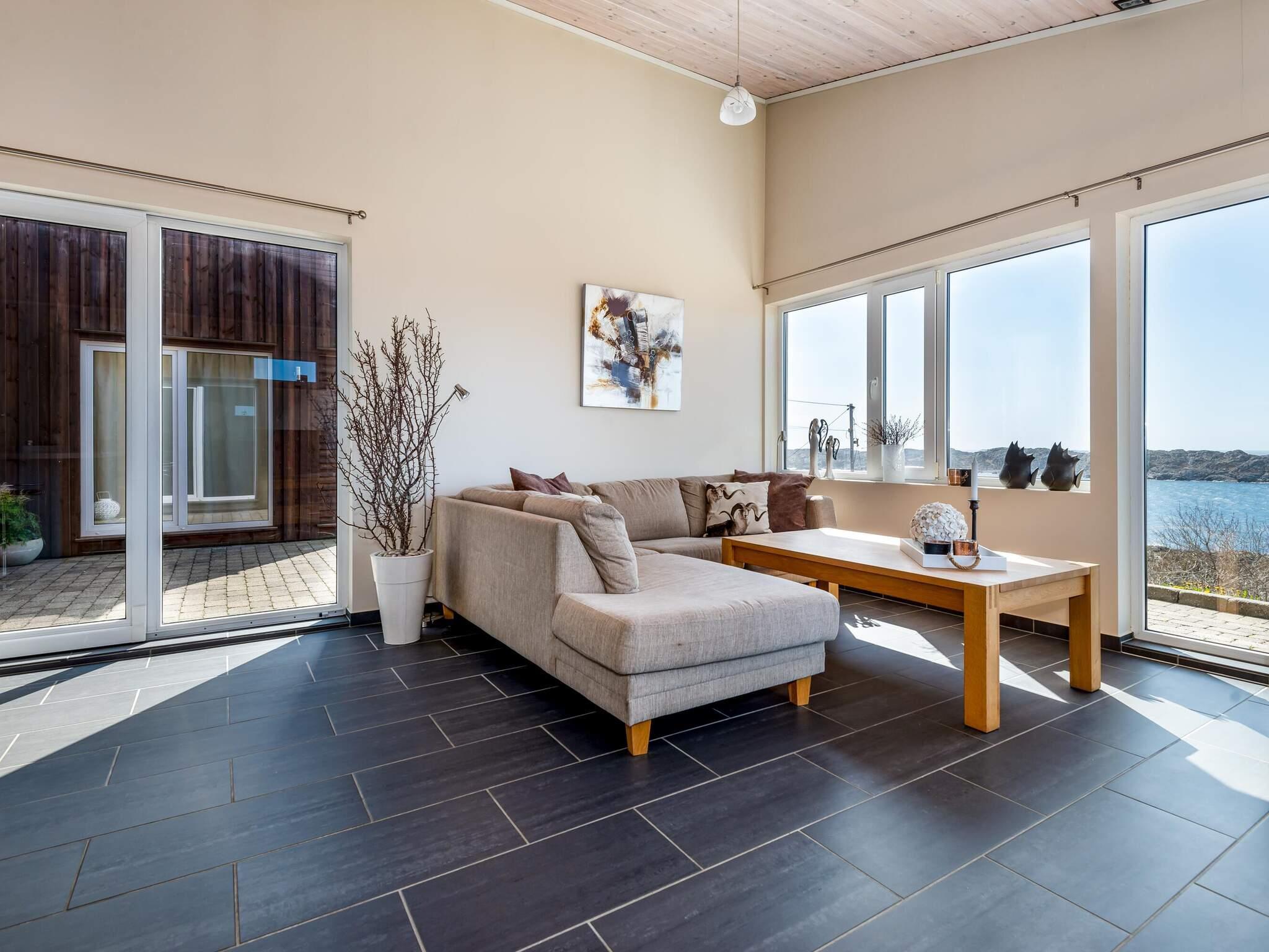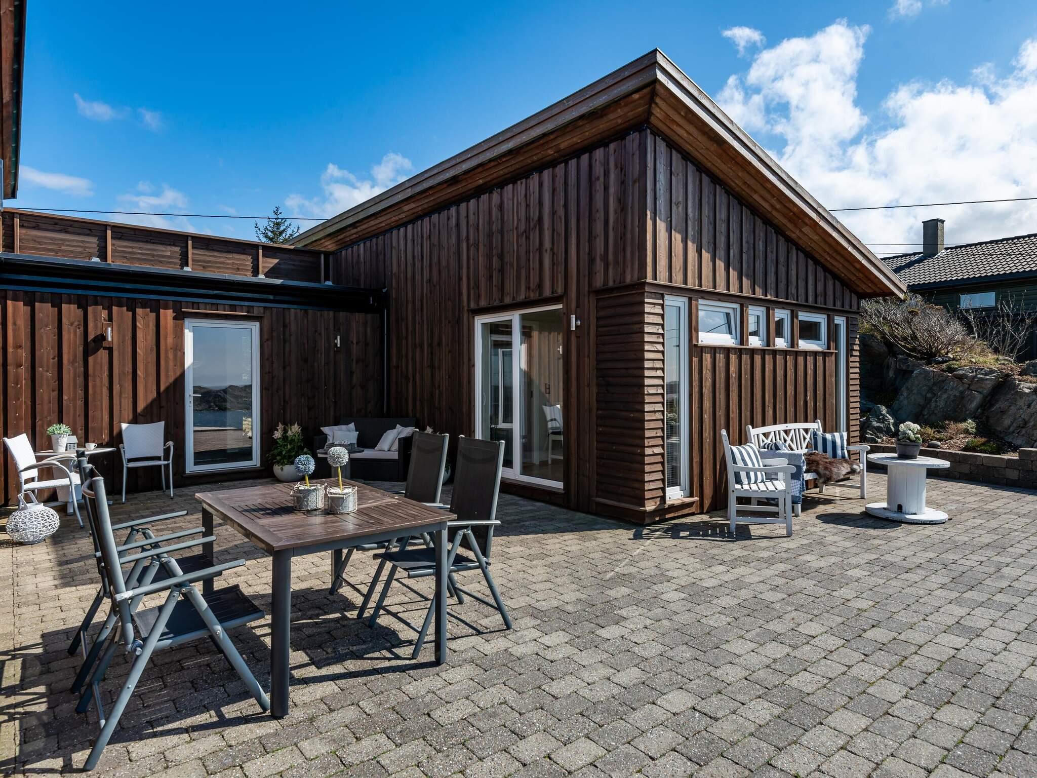 Lyst og flott feriehus med stillhet og ro. Gjennom de store glassflatene har du alltid fantastisk utsikt over havet. En stor terrasse går rundt hele huset, så du vil alltid kunne finne enn lun plass. Huset har et velutstyrt kjøkken og smakfull innredning. Det er 3 soverom og en hems med to madrasser. Bratt trapp opp til hemsen, her må man være forsiktig.