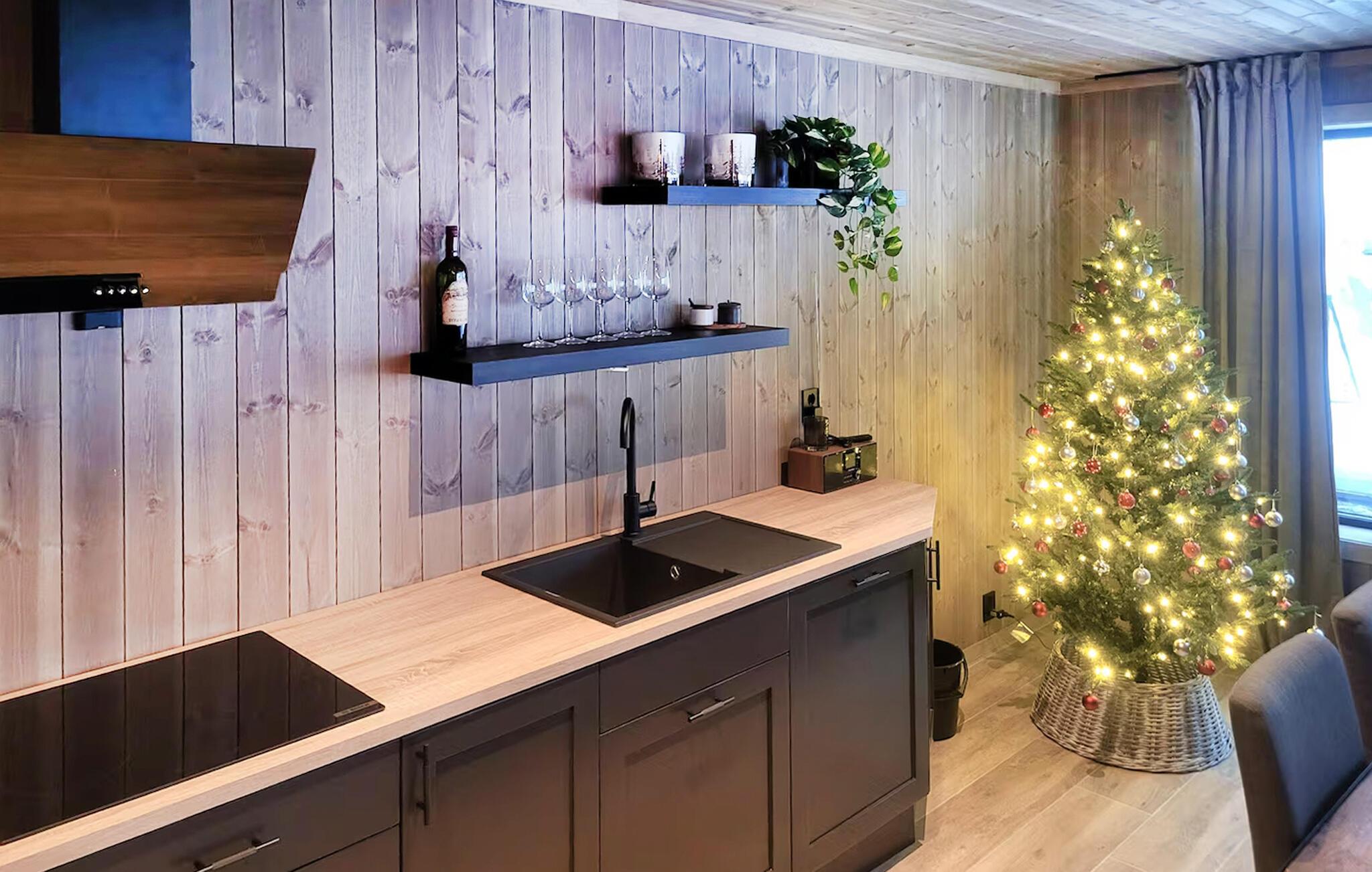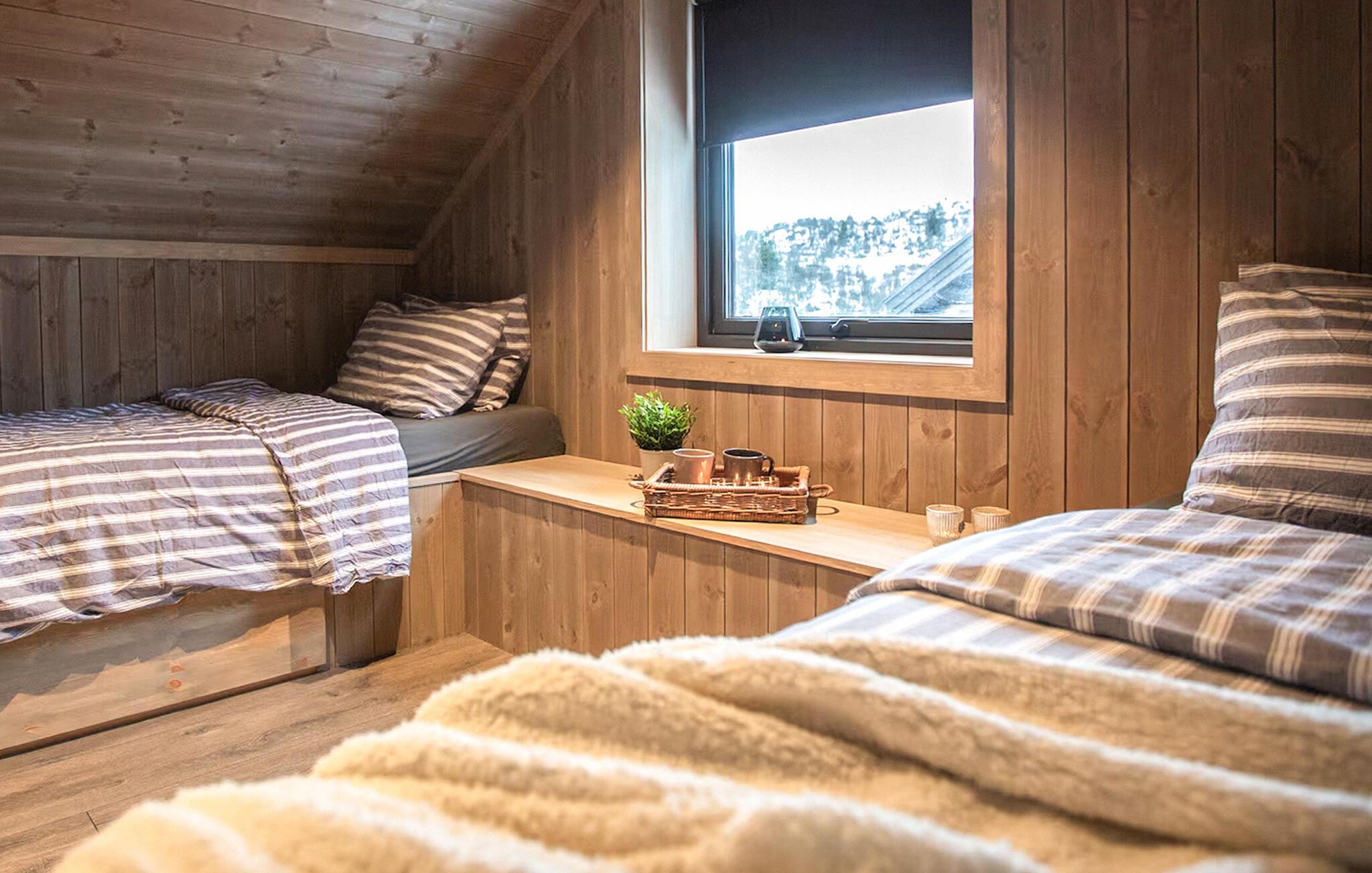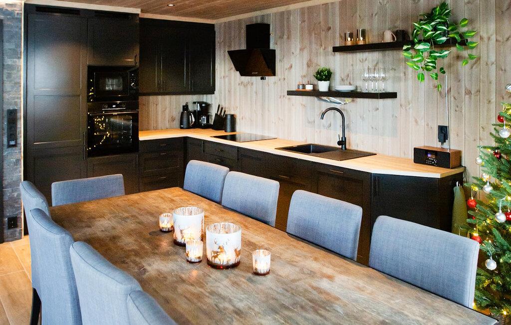 Dette rummelige og hyggelige feriehus ved foden af ??Hardangervidda-plateauet er perfekt til større familier eller vennegrupper. Her kan I tilberede solide måltider sammen og planlægge jeres eventyr over hyggelige måltider, alt imens I nyder den storslåede udsigt over bjergene gennem de store vinduer. Efter en lang dag kan I slappe af i den rummelige sofa, streame en film eller slappe af med en spilleaften.