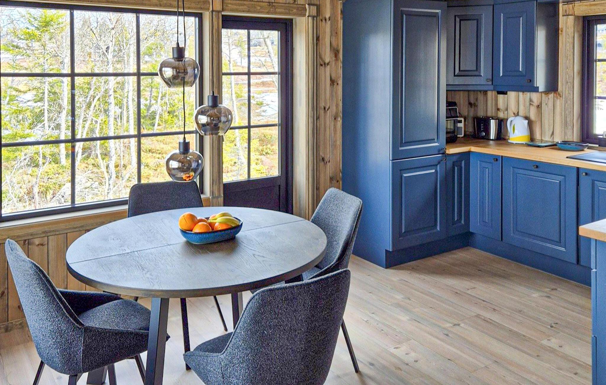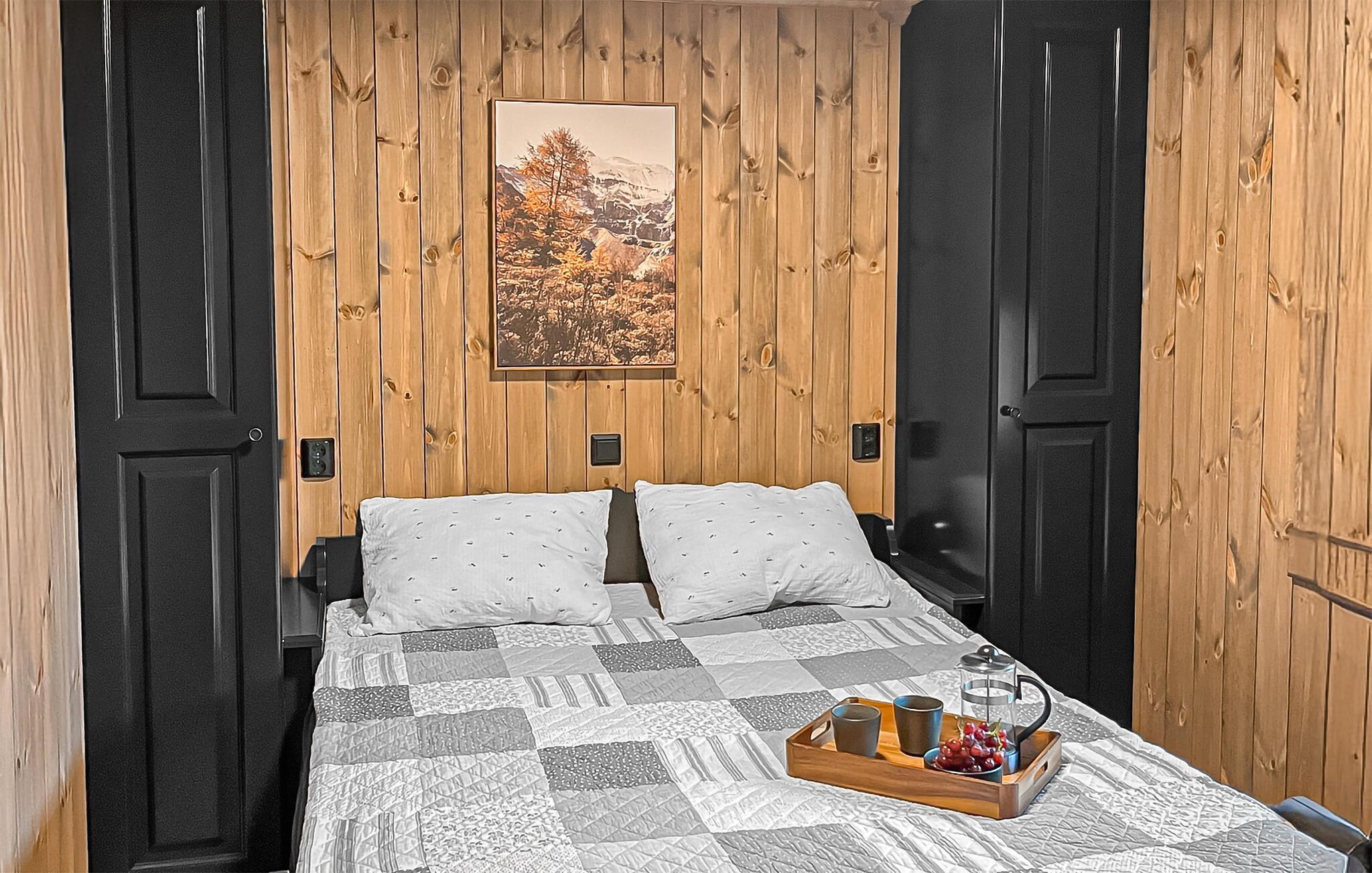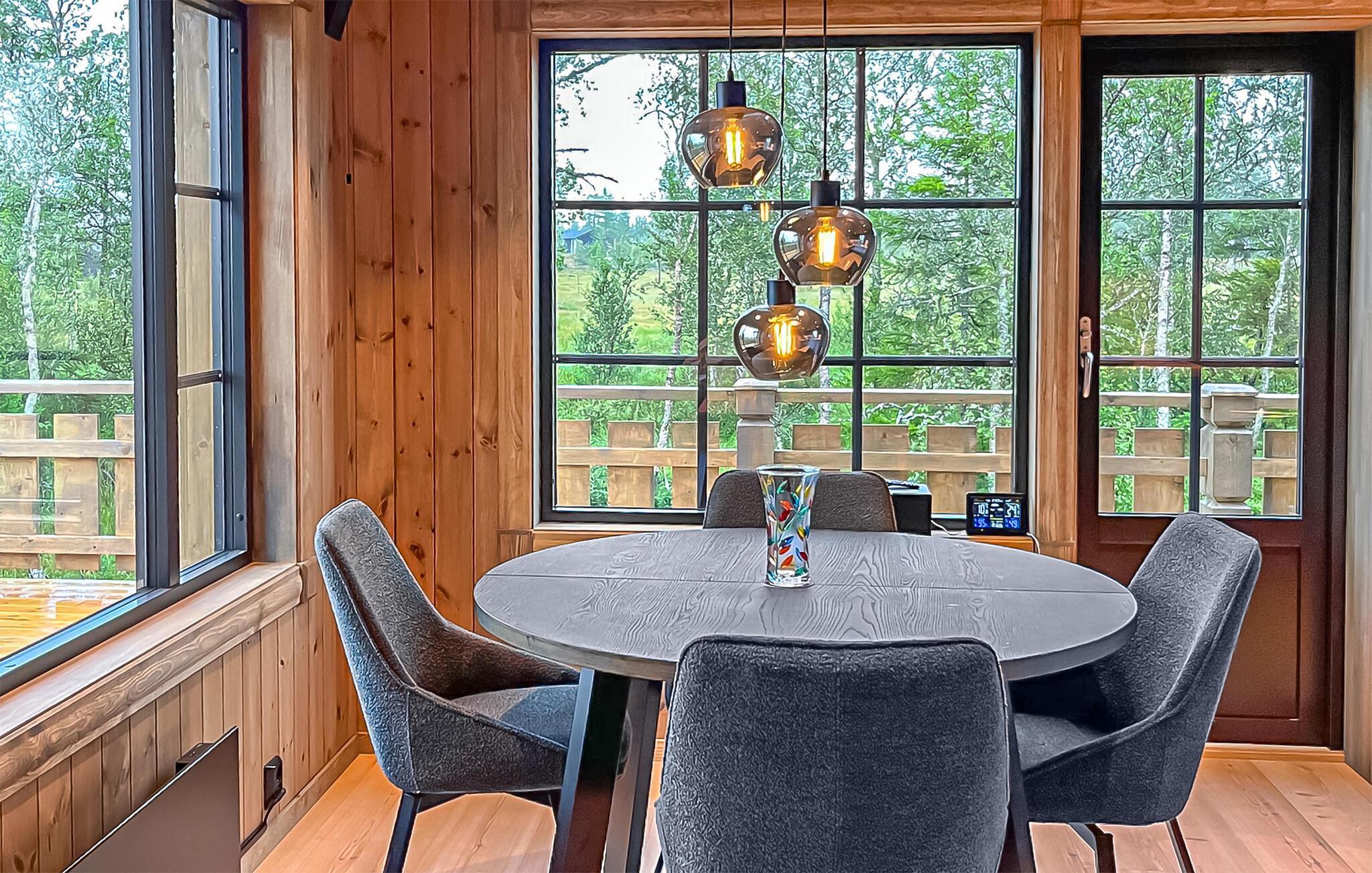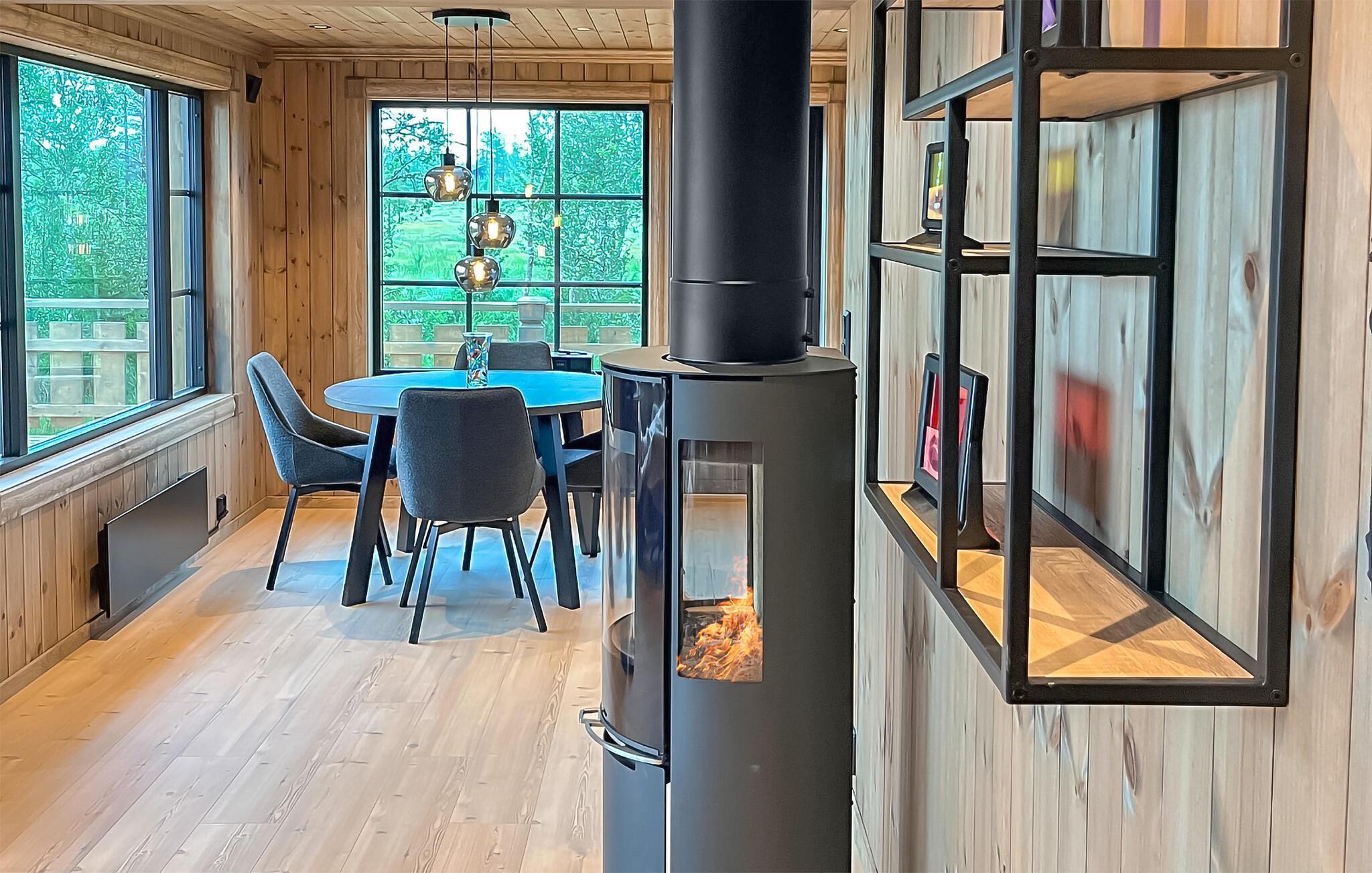 Nyd en naturelsk ferie i et stilfuldt feriehus med udsigt over de mægtige bjerge. Jeres moderne træhus ligger i Engerdalens vidder og tilbyder jer en særlig nærhed til naturen året rundt. Udnyt områdets mange muligheder for fiskeri, vandreture, kanosejlads eller skiløb. Tilbring afslappende timer i den hyggelige opholdsstue med en stor sofa, moderne lænestole og brede panoramavinduer. Lad udsigten feje over skovene og bjergene, eller krøl jer sammen foran fjernsynet. Det åbne køkken er et sandt blikfang og giver jer mulighed for at lave mad sammen. Nyd jeres måltider ved det runde spisebord, og varm jer ved pejsen efter en vinterudflugt. Træd ud i de omkringliggende naturområder, og oplev skovens ro. Se lysets spil i landskabet, og indånd den friske bjergluft. Vandrestier starter lige uden for døren, og om vinteren inviterer langrendsløjperne jer til at nyde naturen. Tag på udflugter til Femundsmarka Nationalpark, et paradis for vandrere og lystfiskere med dens mange søer og vandløb. Prøv lykken med trollingfiskeri på Femund- eller Isteren-søerne, eller oplev den rige natur langs Femundselva. Om vinteren venter velholdte langrendsløjper og familievenligt skiløb på det nærliggende Sølen Alpincenter. Alternativt ligger det store skisportssted Trysil kun en kort afstand derfra.
