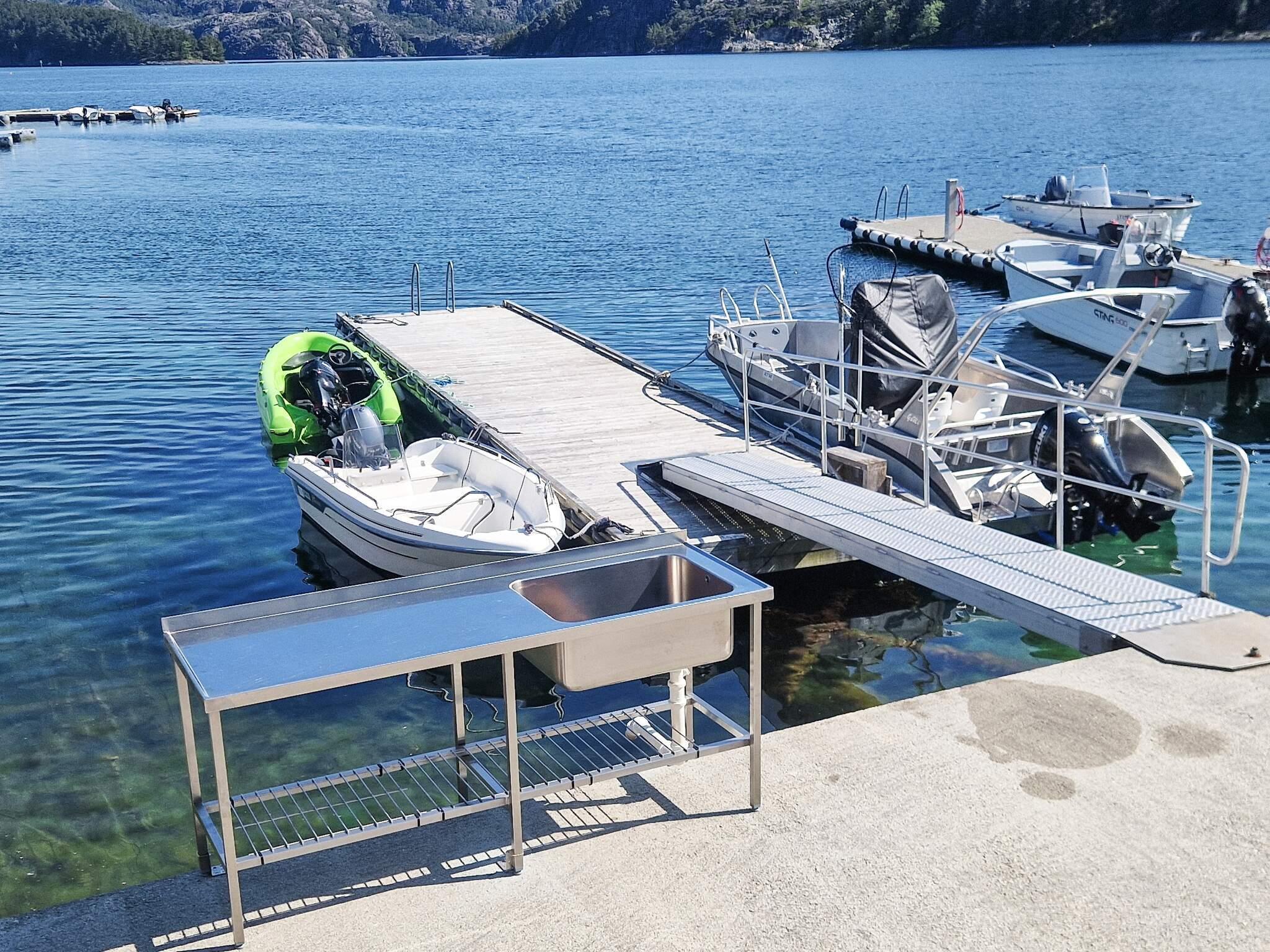 Huset har tyske TV-kanaler og høyhastighetsinternett. Stuen i andre etasje har praktfull utsikt over fjorden og er perfekt for avslapning i kveldstimene. Felleskaien er utstyrt med fileteringsbord og sitteplasser. På gårdsplassen er det kun plass til én bil. Kun 100 meter unna er det en dagligvarebutikk og bensinstasjon for båtdrivstoff.