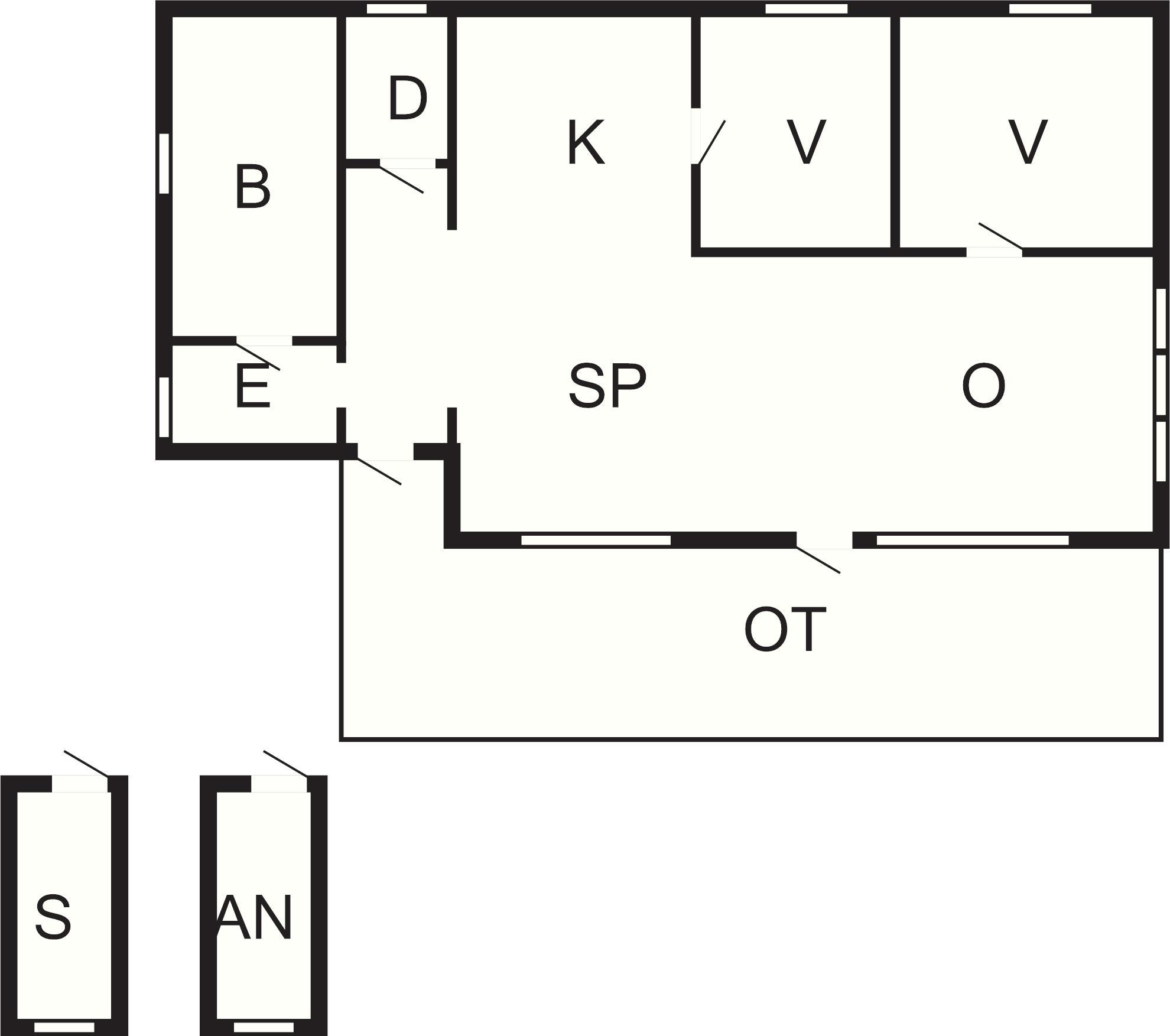 2 Soveværelser: (1DS)+(2K)