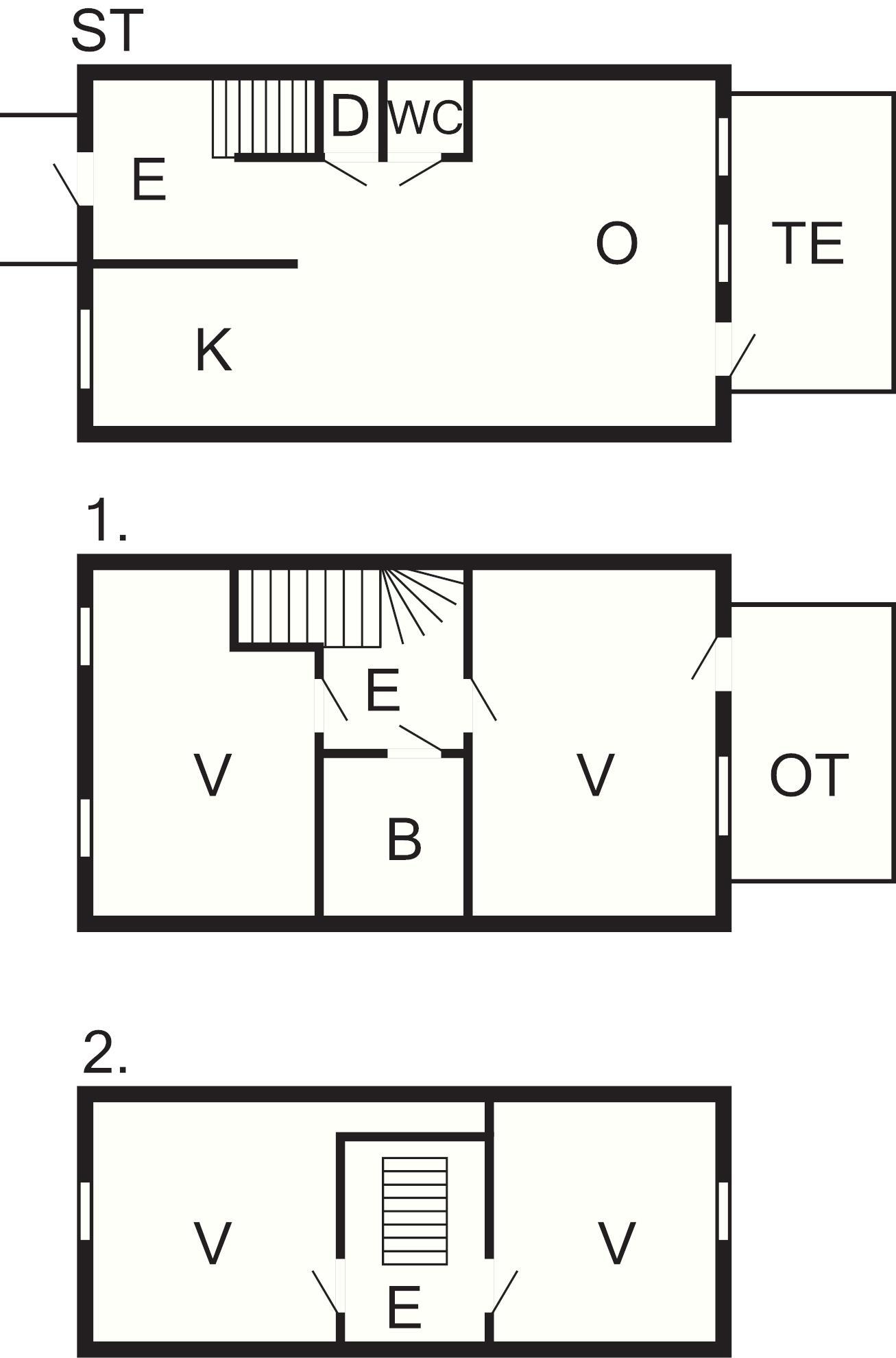 Rorbua har åpen løsning mellom kjøkkenet og stua. Internett: 500/500Mbits, på deling mellom 3 rorbuer. En bratt trapp fører opp til soverommene i toppetasjen. Sammensettbare enkeltsenger på 2 av de 4 soverommene.