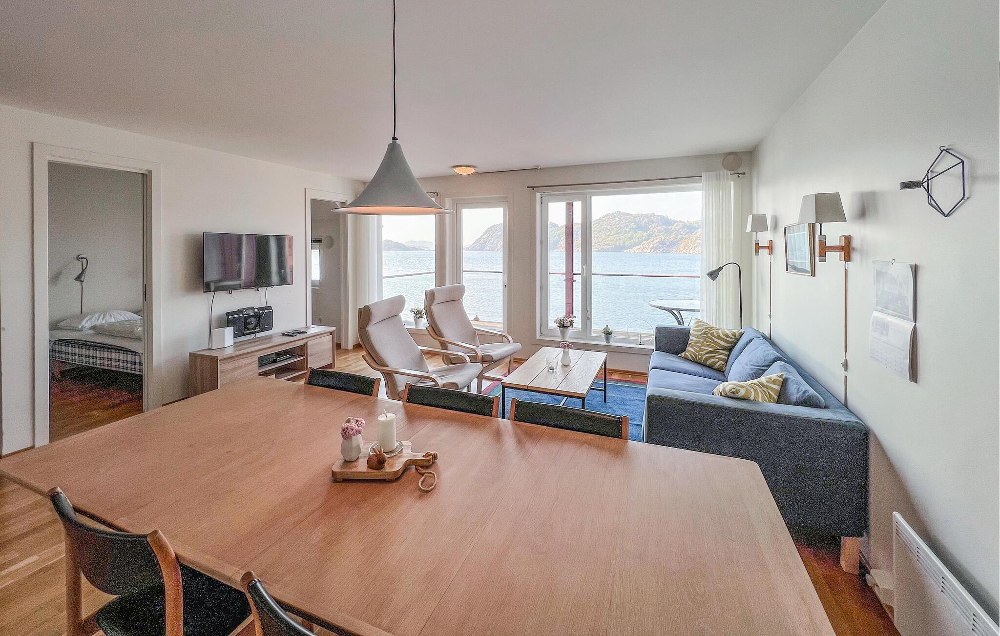 Denne smukke ferielejlighed i Korshamn imponerer med sin fantastiske beliggenhed og den betagende udsigt over vandet. Den lyse og hyggelige indretning skaber en behagelig atmosfære, mens udsigten over fjorden og havet gør hvert øjeblik til en særlig oplevelse. Lav mad sammen, spil ved spisebordet, eller find ro på de to etager i lejligheden. Uanset om I ønsker at slappe af eller planlægger en aktiv ferie, er denne lejlighed det perfekte udgangspunkt for en idyllisk ferie i Sydnorge.