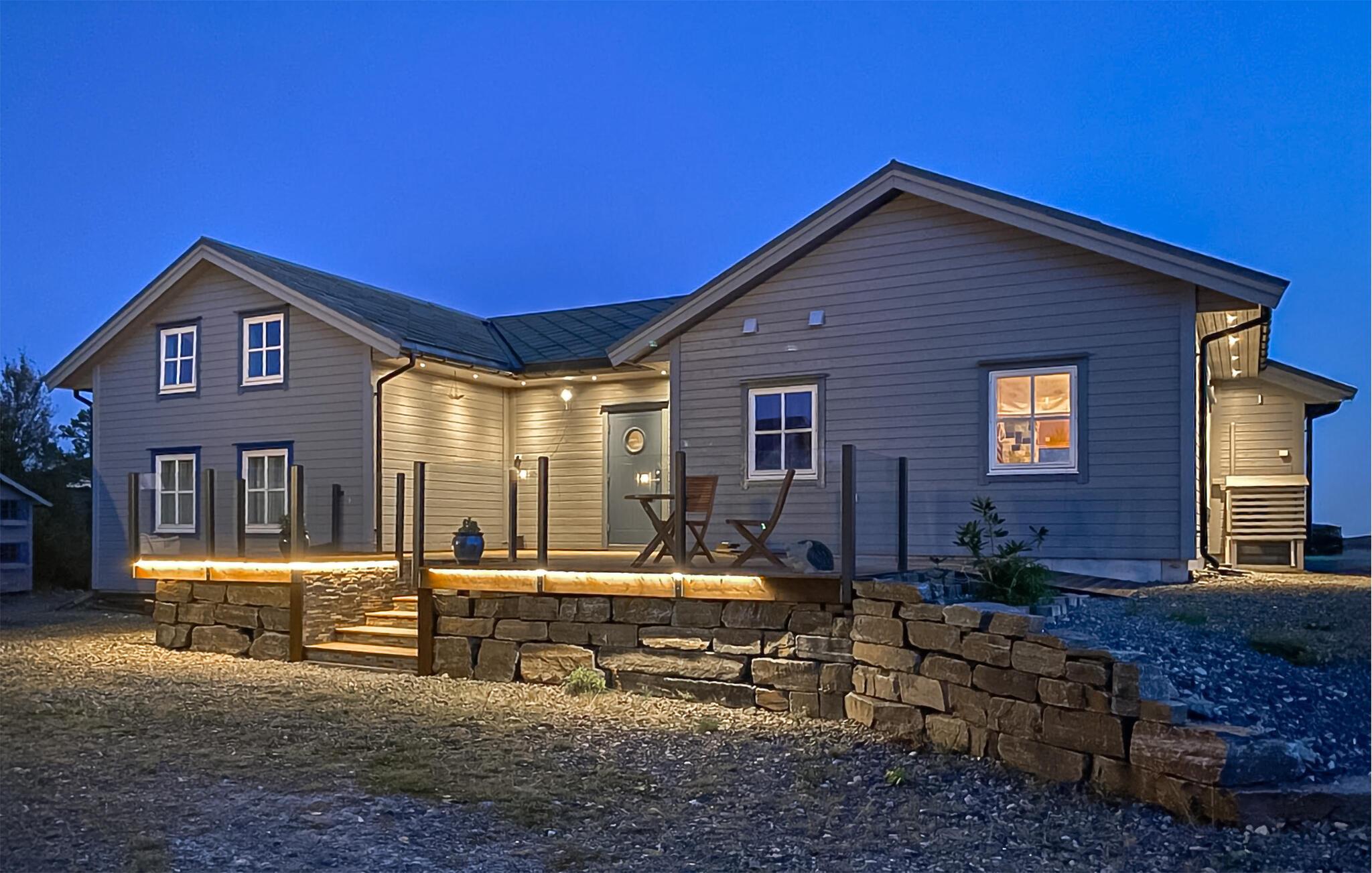 På jeres store terrasse kan I nyde den sensationelle panoramaudsigt, mens I slapper af i spabadet. Server lækre grillretter eller kig på stjernerne i de stemningsfulde timer ved bålstedet.