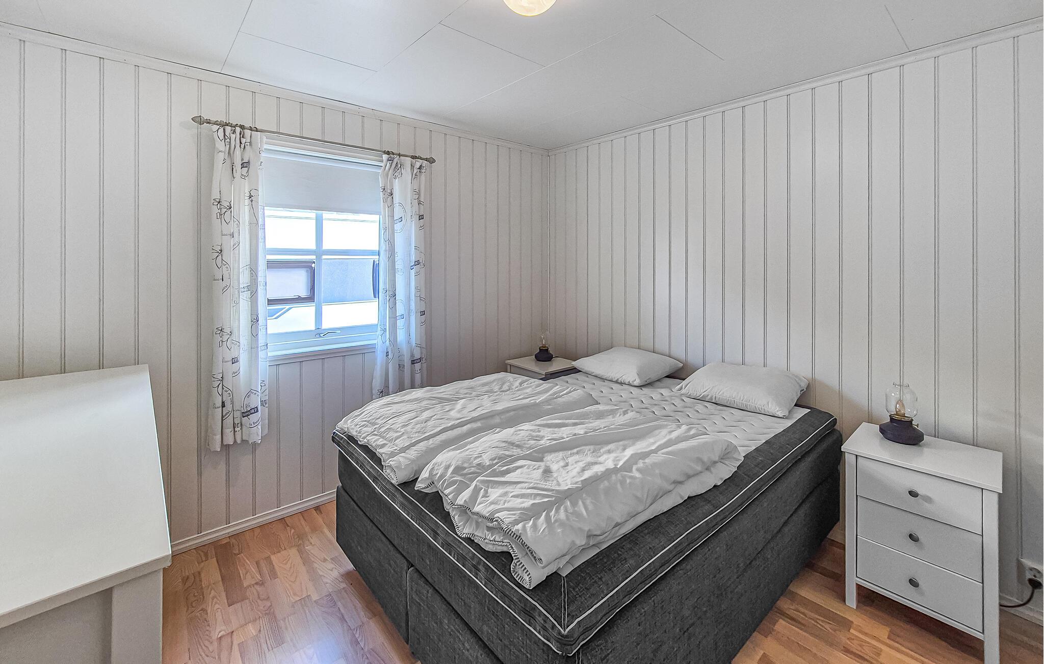 Dette rummelige og komfortabelt møblerede feriehus tilbyder masser af plads til en afslappende ferie med den udvidede familie eller en gruppe venner. Store vinduer giver udsigt over de maleriske omgivelser og masser af naturligt lys. Lav mad sammen, planlæg jeres aktiviteter over hyggelige måltider og nyd pejsen. Hold spilleaftener eller stream en spændende film.