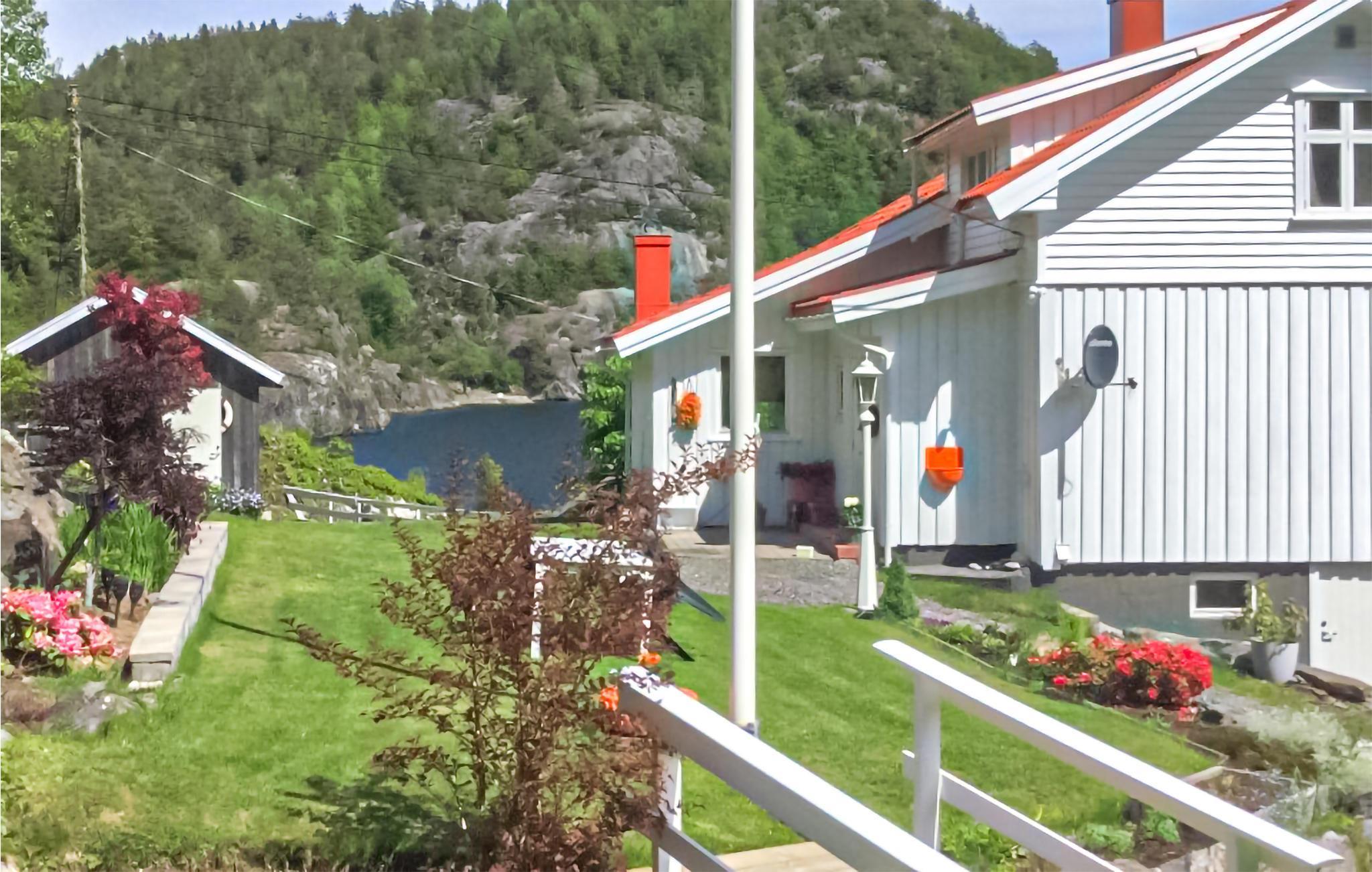 Dette skønne feriehus vil blive i jeres hukommelse, lang tid efter ferien er forbi, for ikke alene er beliggenheden fantastisk, men huset har også i sig selv en helt særlig stemning, som næsten ikke kan toppes. Der er lagt op til nogle fantastiske dage med familien, hvor I kan hygge jer med at lave mad, slappe af eller spille spil. Den store solterrasse giver jer en dejlig ramme om dagens måltider, men man kan også blot sig herud og nyde udsigten til fjorden. Haven ligger på en skråning, men samtidig er der god plads til, at jeres børn kan lege.