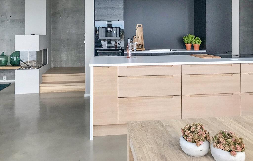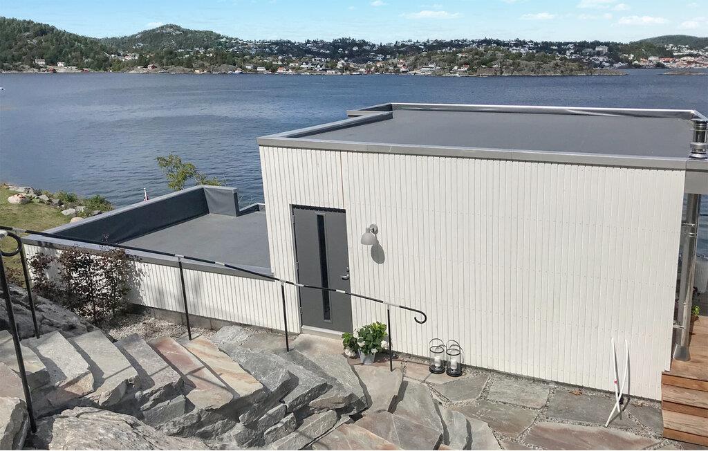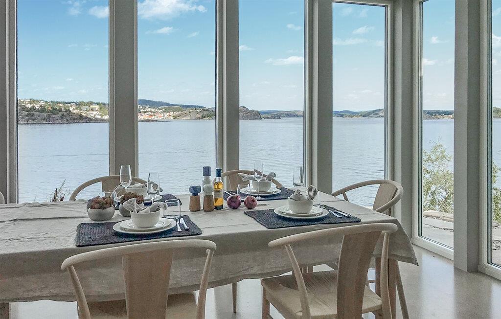 En boligoplevelse lang ud over det sædvanlige er, hvad der venter for hele familien i dette vidunderlige hus ved Kragerø. I bor lige ned til vandet, og med de store panoramavinduer får I nærmest følelsen af at have vandet under jer på en utrolig dejlig måde. Interiøret prydes af gode indretningsløsninger, materialer af høj kvalitet og et komfortabelt møblement, der gør det nemt at slappe af med det samme, I ankommer. Nyd en drink i de blode stole med udsigt til vandet, tænd biopejsen og lad amatørkokkene kræse om livretterne i det fantastiske køkken fremtrylle lækre retter, som I kan nyde ved spisebordet med havet som baggrund.