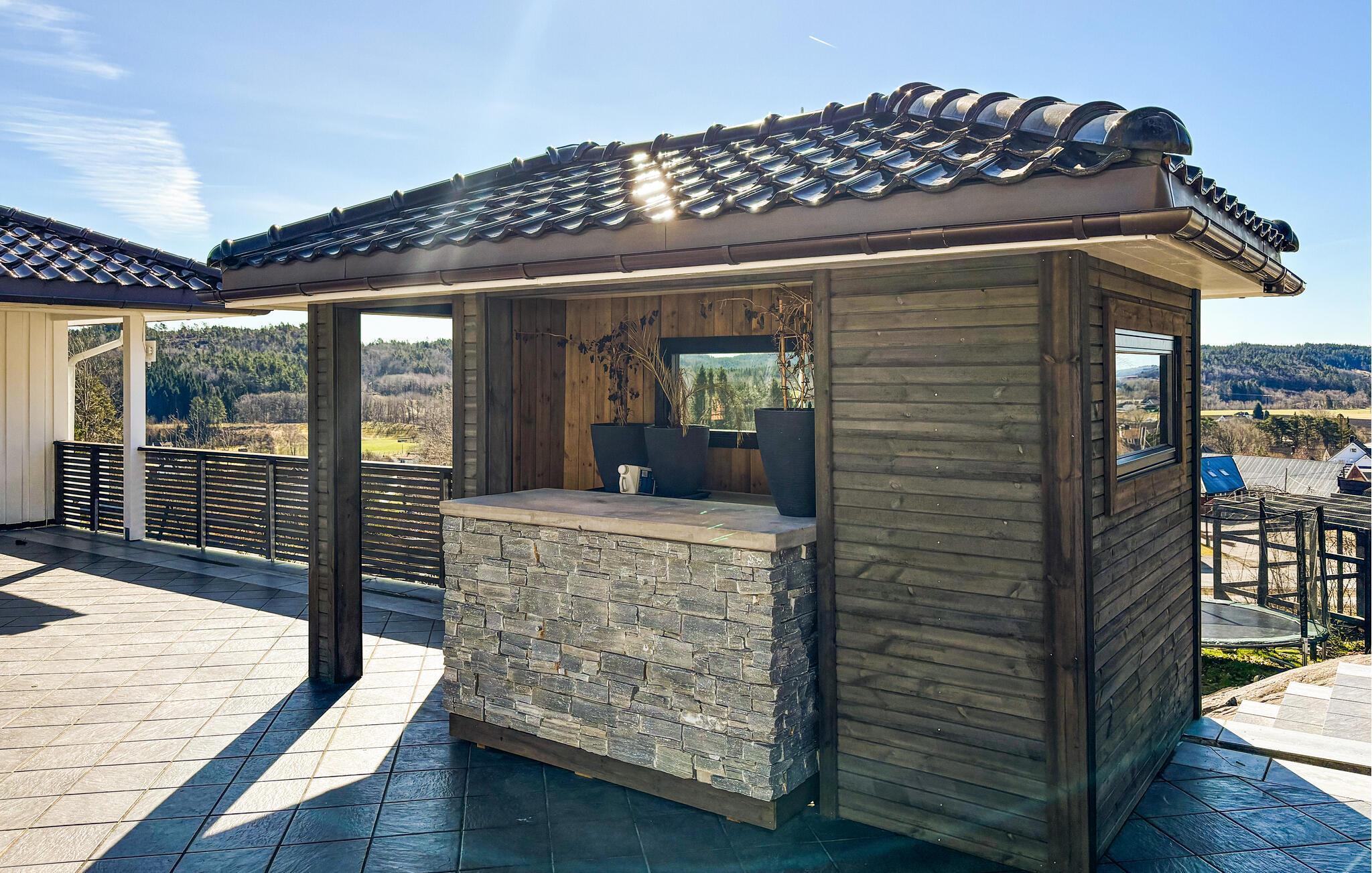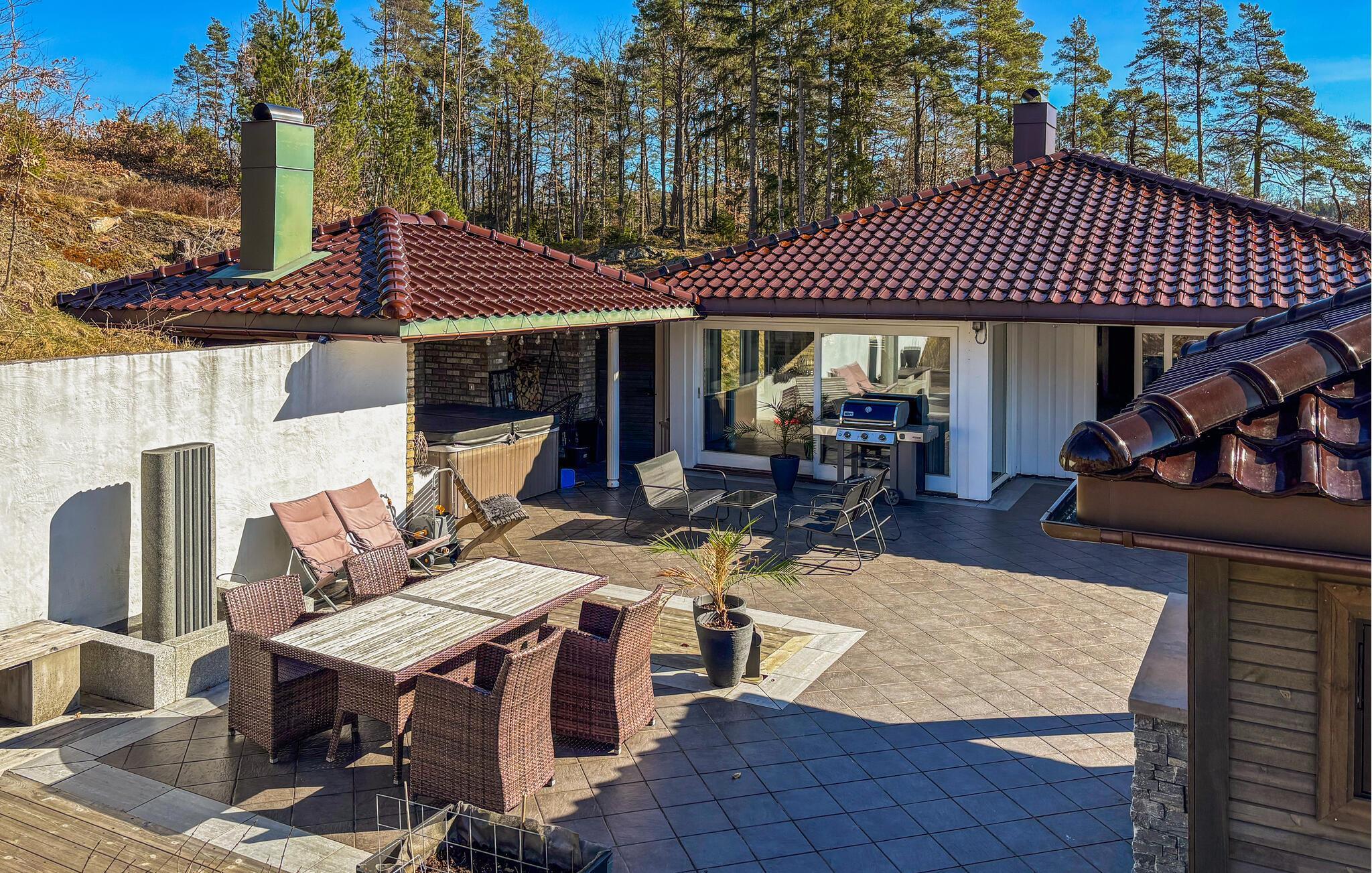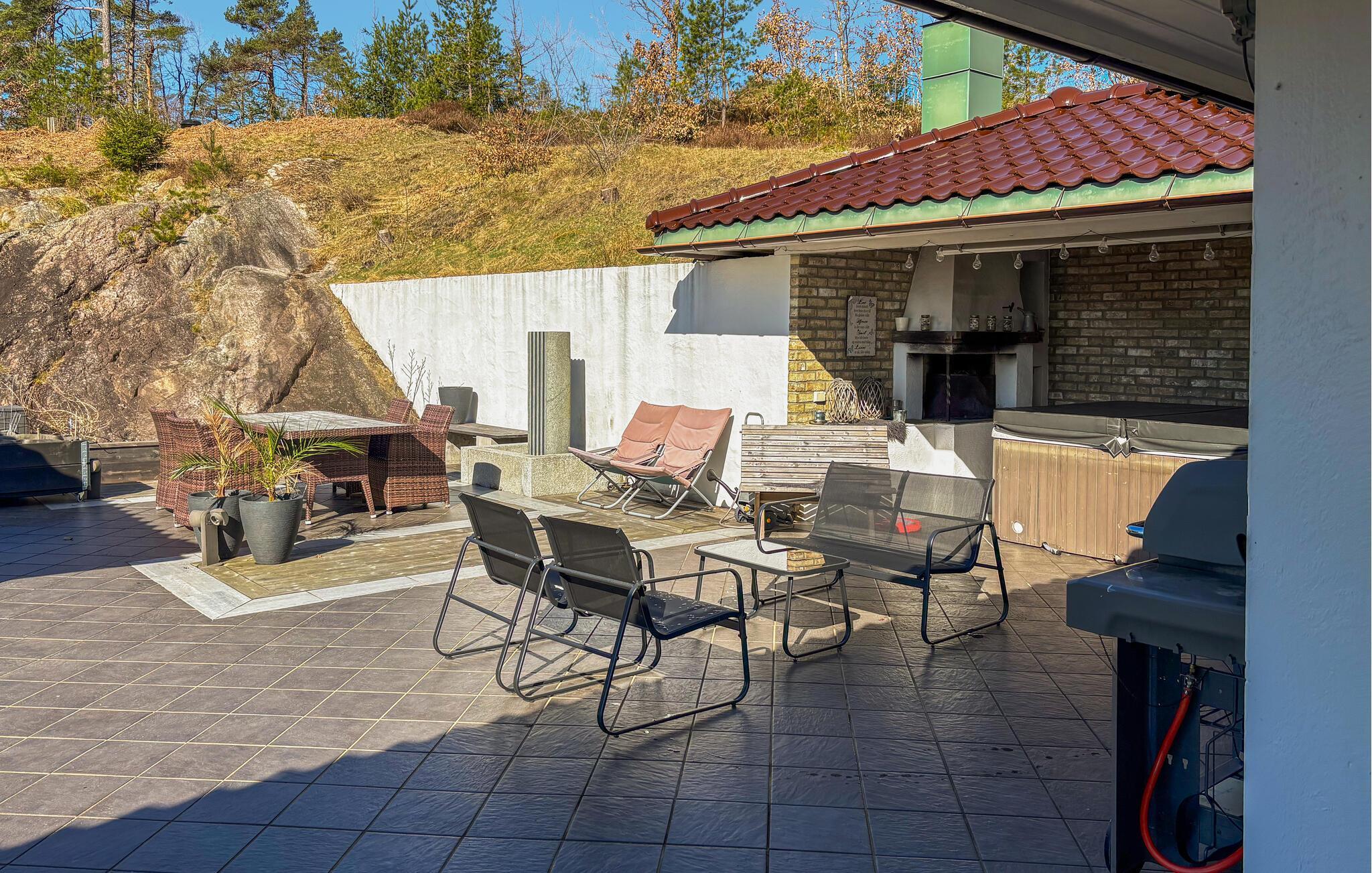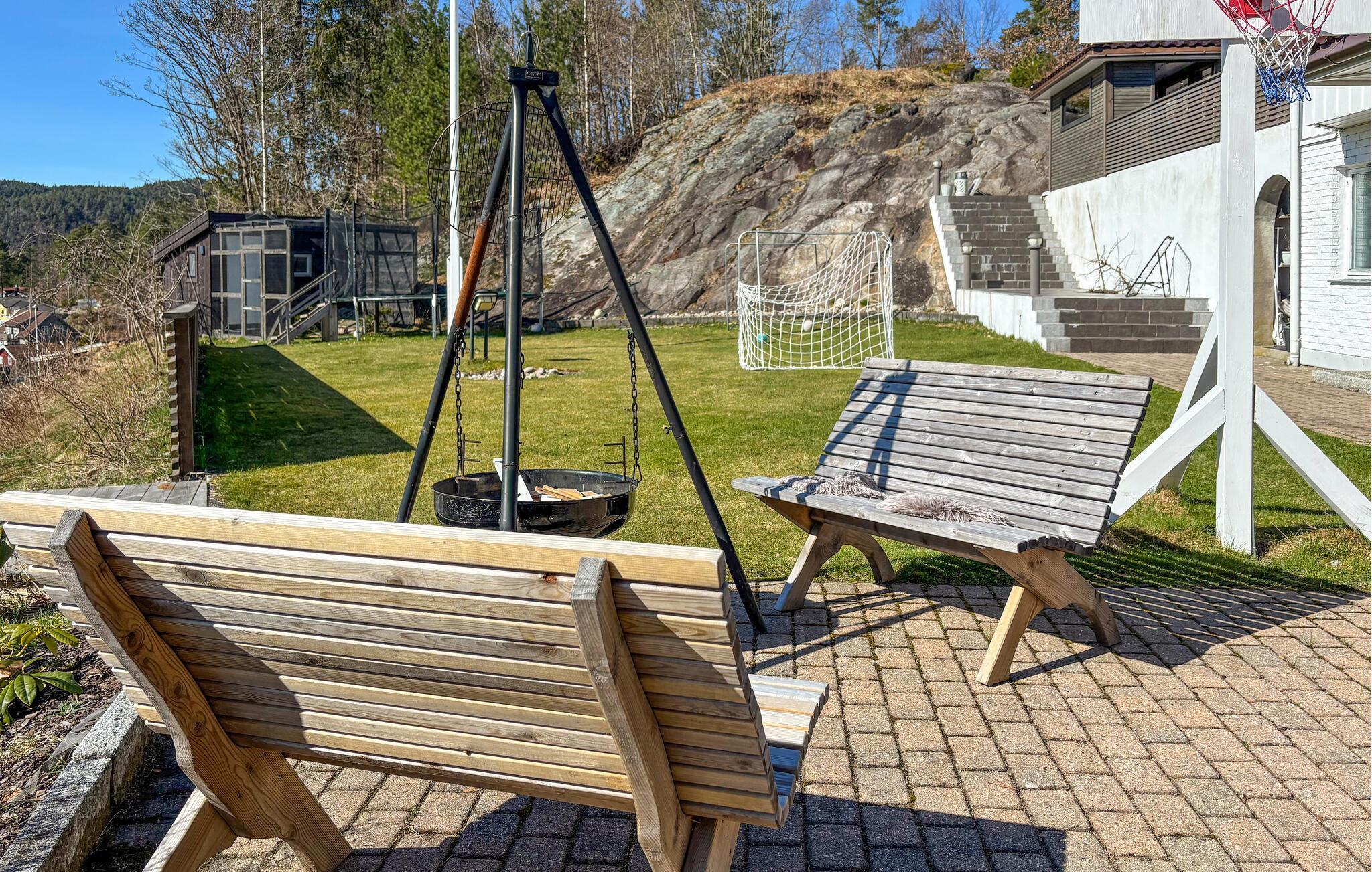 Tilbring tid i det overdækkede udendørsområde med overdækket lounge og grillplads. Slap af på den store terrasse eller ved bålpladsen bag huset. Der er en trampolin i haven til børnene. Med lidt held kommer huskatten også forbi og besøger den af ??og til. Se aktiviteten i dalen, mens I sidder på bænkene og nyder udsigten helt til havet, eller slap af i det udendørs spabad.