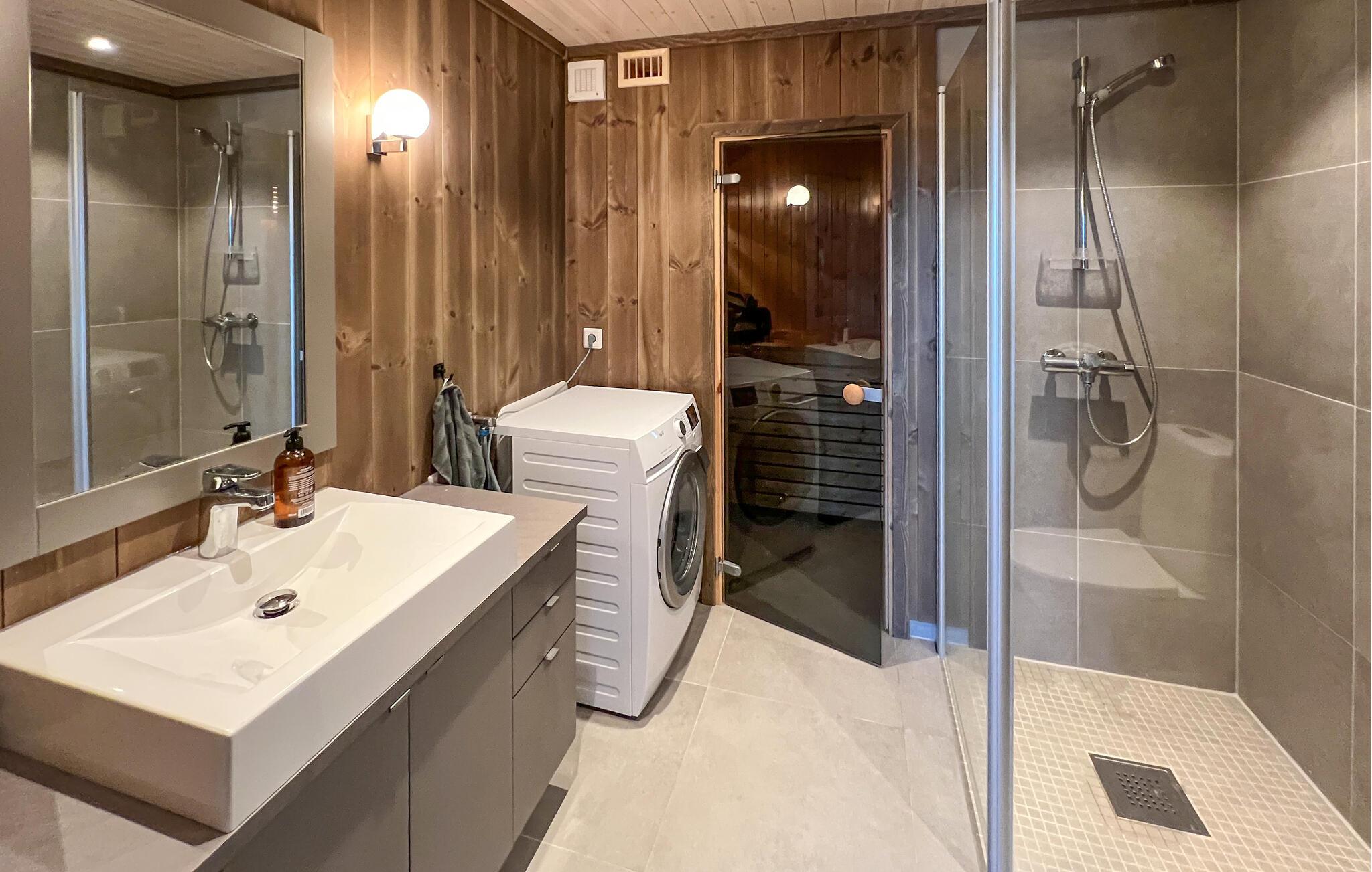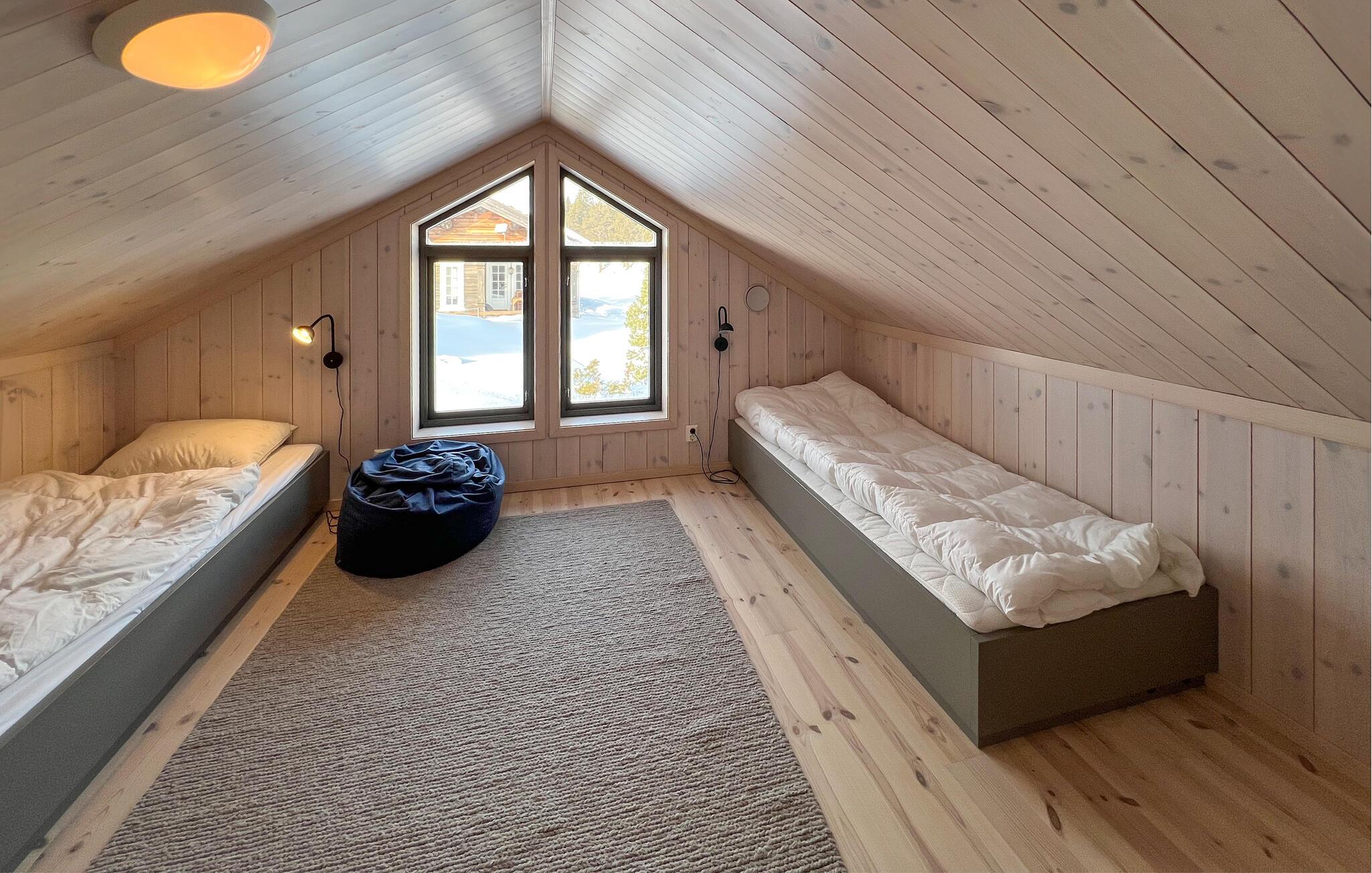 Nyd freden og skønheden i den norske natur i jeres stilfulde hytte nær adskillige maleriske søer, om sommeren eller vinteren. Træd ind og bliv fortryllet af den åbne opholdsstue med højt til loftet og store vinduespartier, som giver en rummelig fornemmelse og en fantastisk udsigt over det omkringliggende bjerglandskab. Find jer godt til rette i det hyggelige sofaområde, læs en bog i den varme eftermiddagssol eller nyd den hyggelige varme fra brændeovnen på kolde dage. Den tilstødende spiseplads med et stort træbord lægger op til at nyde hyggelige måltider, mens det moderne køkken er ideelt til at tilberede kulinariske delikatesser.