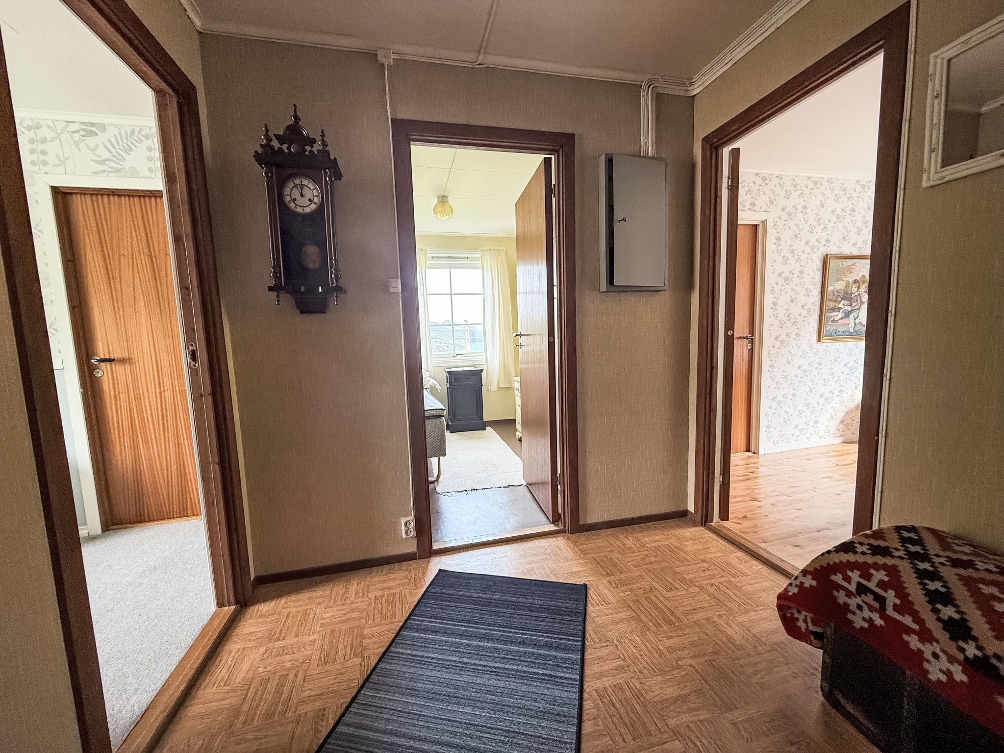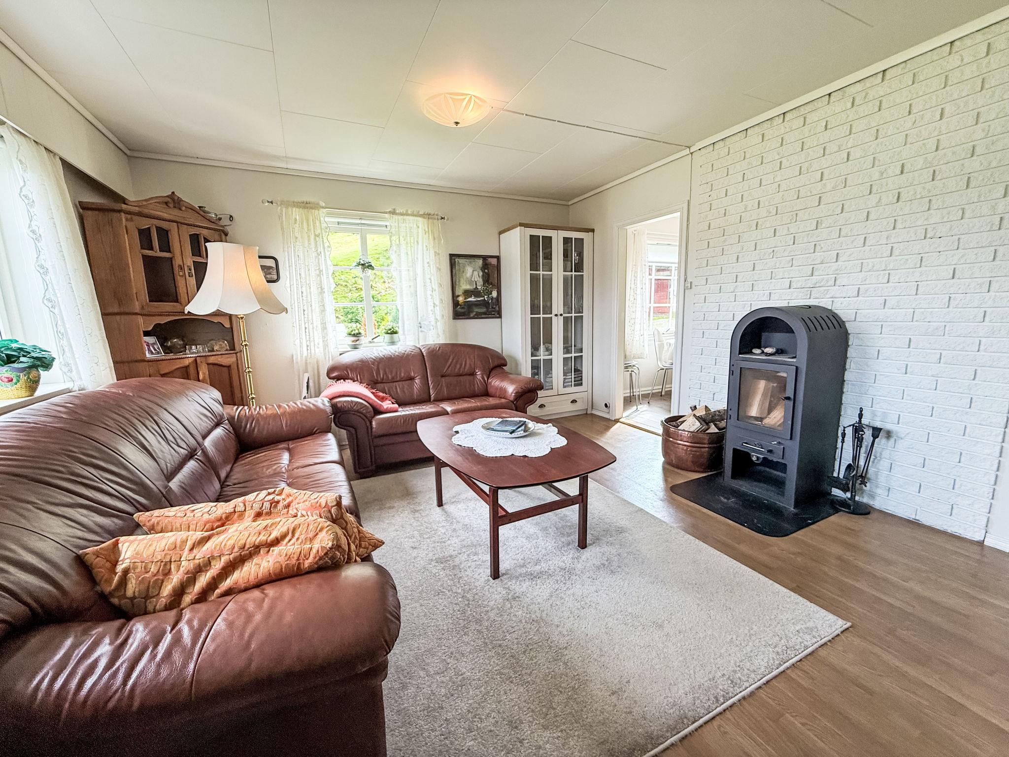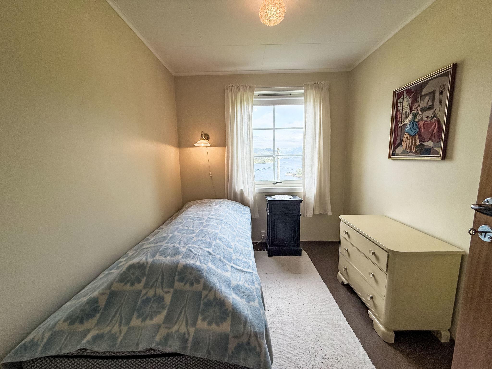 "Kvamsvika", 5-room house 100 m2 on 2 levels. Partly renovated in 2017, simple furnishings: living room with Scandinavian wood stove, satellite TV and international TV channels. 1 room with 1 bed (120 cm, length 200 cm). Open kitchen (4 hot plates, oven, dishwasher, toaster, kettle, microwave, freezer, electric coffee machine) with dining table. Shower/WC. Upper floor: 1 room with 1 double bed (200 cm, length 200 cm). 1 room with 1 bed (120 cm, length 200 cm). 1 room with 1 bed (90 cm, length 200 cm). Electric heating, underfloor heating. Terrace 30 m2. Terrace furniture, barbecue. View of the river. Facilities: washing machine, iron, baby cot. Internet (WiFi, free). Please note: non-smoking house. Smoke alarm, fire extinguisher. Freezer approx. 300 l. 924531169