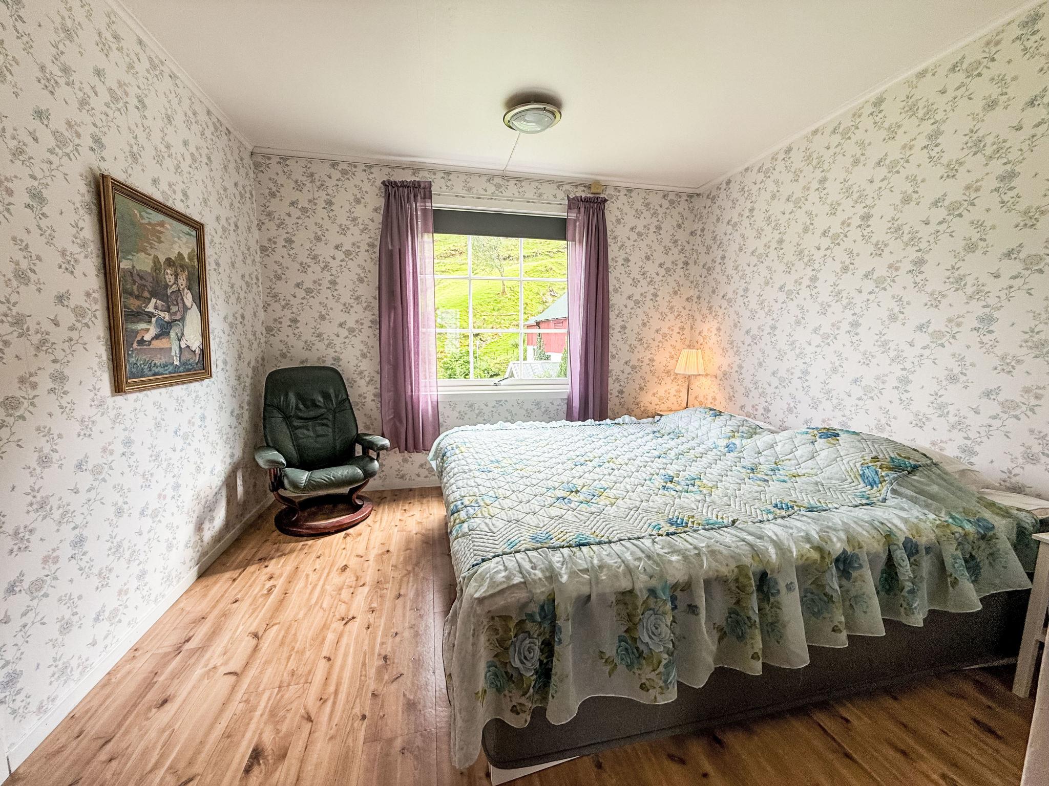 Beautiful house "Kvamsvika", 41 m a.s.l.. 1 km from the centre of Kvammen, 31 km from the centre of Førde, 34 km from the centre of Askvoll, in a quiet position, 150 m from the fijord. For shared use: property with meadow. Fish-processing table. Motor boat (on order), parking on the premises. Shop 1 km, bus stop "Hellevang" 9.5 km, railway station "Dale" 190 km, ferry "Bergen" 202 km. Fishing possibilities 150 m. Please note: the owner lives on the same property. Owner lives in separate semi-detached house. Room with table for fish gutting with running water available.