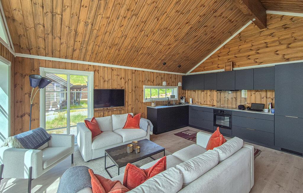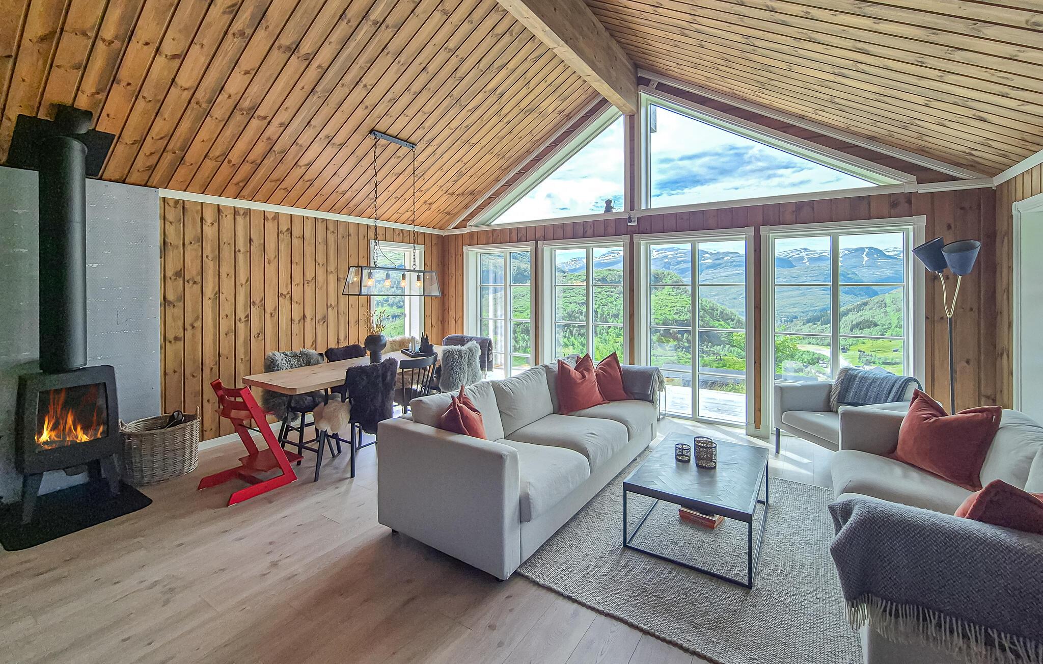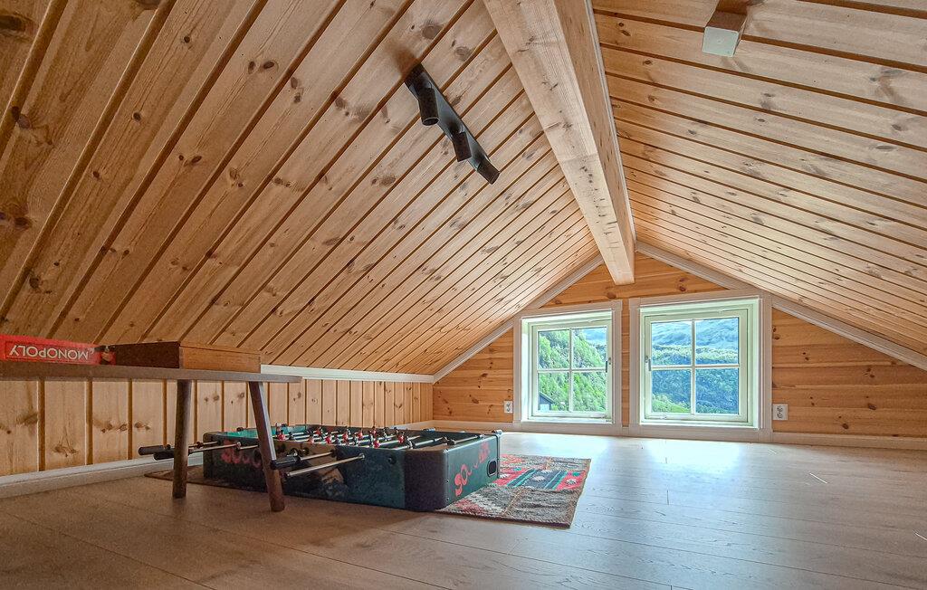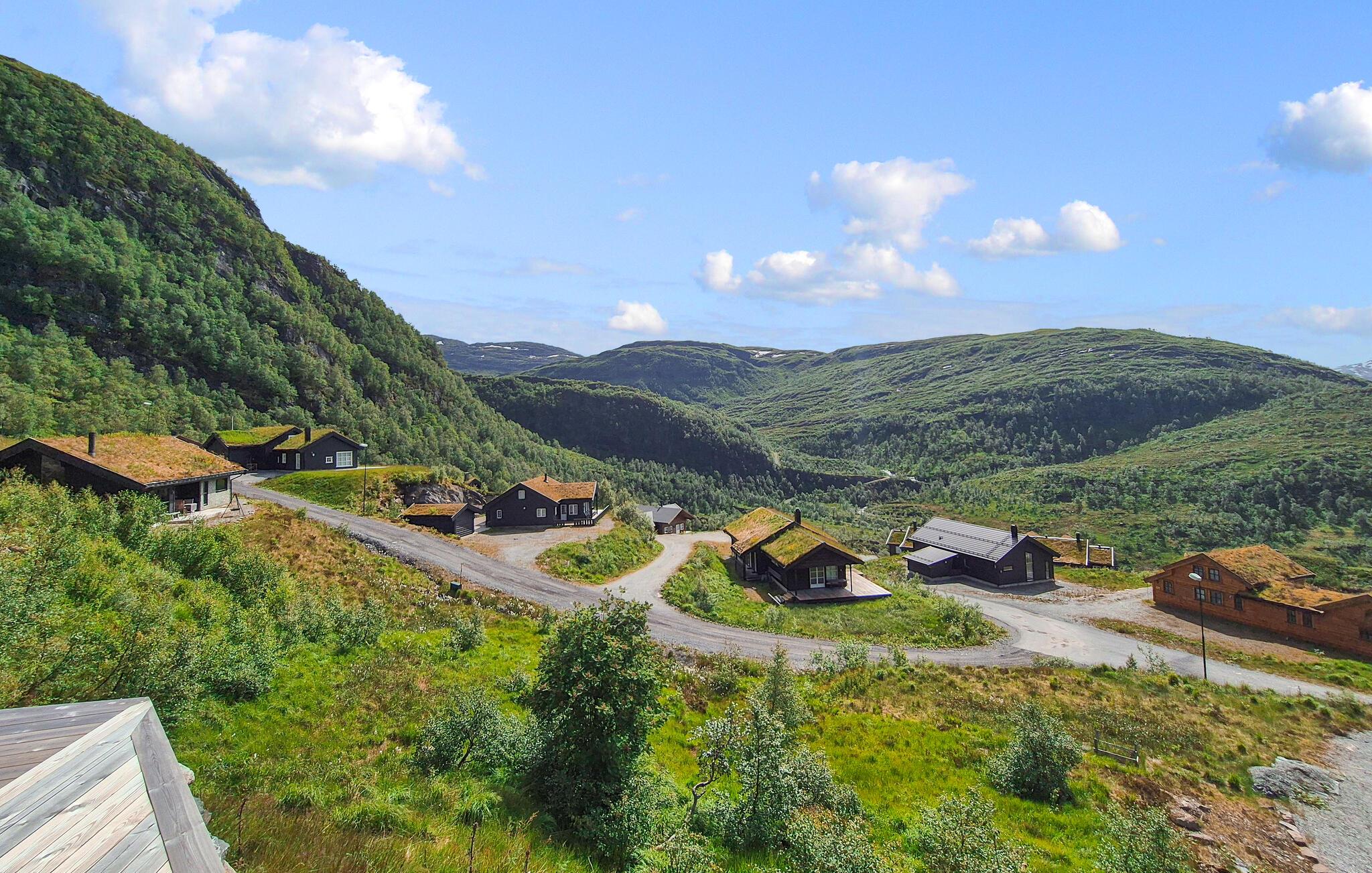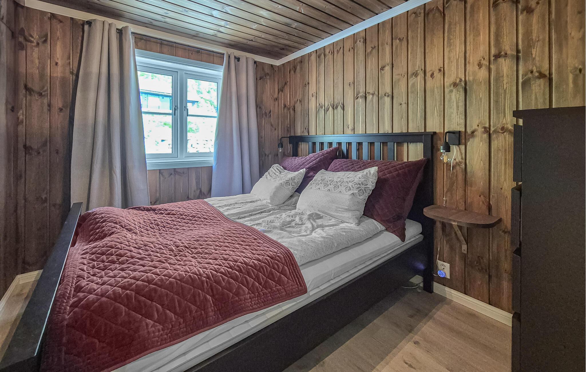 Lad jer fortrylle af den fantastiske udsigt over bjergene i dette feriehus. Det indbydende hus byder velkommen midt i et smukt landskab og er det ideelle sted for en familieferie med aktiviteter i naturen. Når I vågner, lad jeres blik vandre over de maleriske bjerge og gør jer virkelig godt tilpas i de moderne møblerede værelser. Om aftenen inviterer sofaen til at nyde en filmaften eller få en god snak i en venlig atmosfære ved pejsen. Træd ud på terrassen og nyd solen mod en magisk kulisse. Nyd naturen på en vandretur, området byder på adskillige vandrestier, der fører gennem betagende landskaber. Prøv lykken med at fiske i bjergsøerne, Hardangerfjorden er kun en kort køretur væk. Besøg Steinsdalsfossen-vandfaldet, Norheimsund med sin smukke sandstrand eller det lokale historiecenter og Fyksesund ved Hardangerfjorden. Glæd jer til en afvekslende ferie i dette komfortable feriehus.
